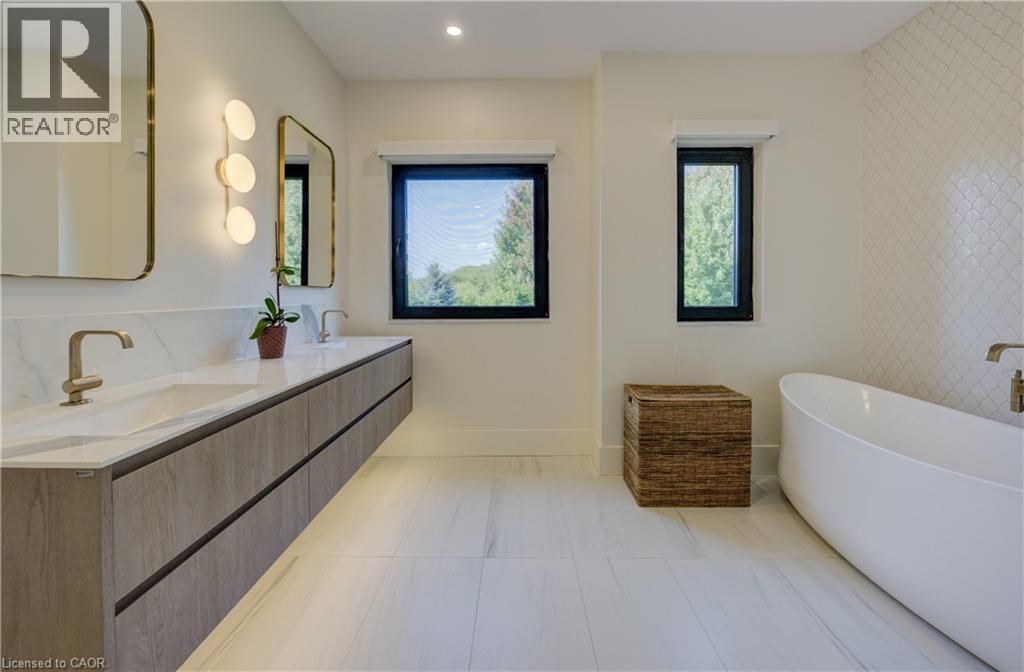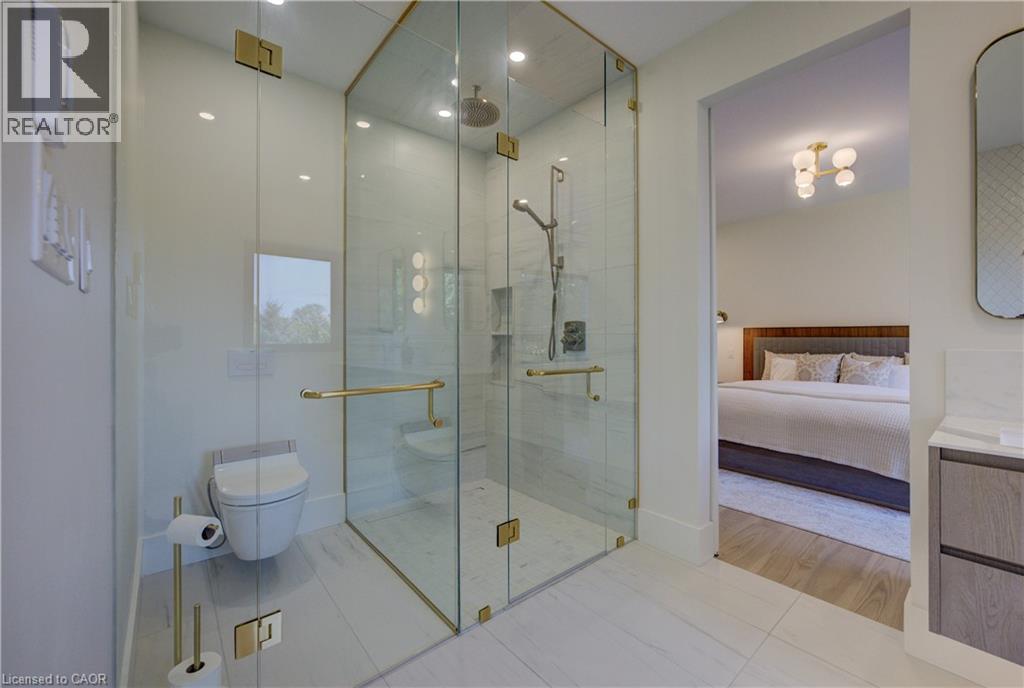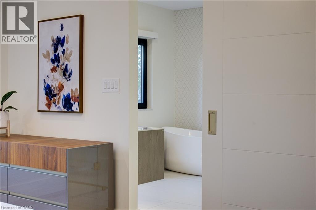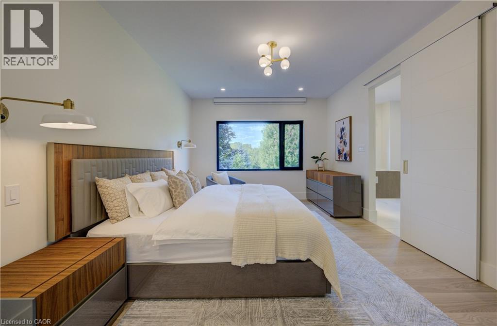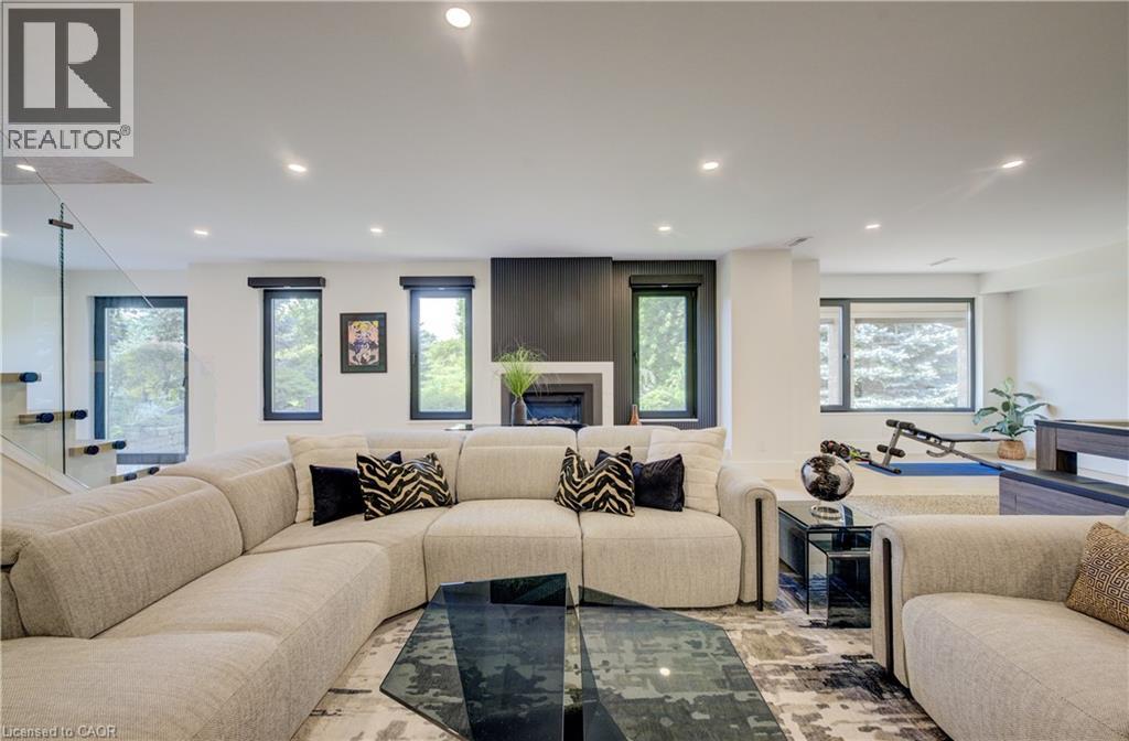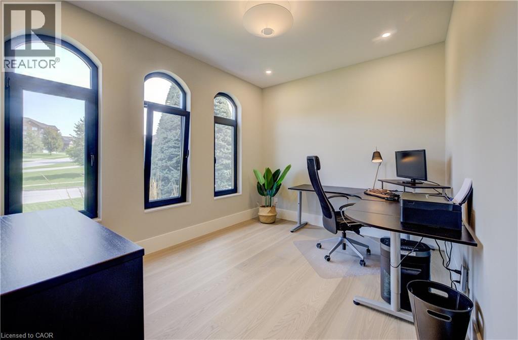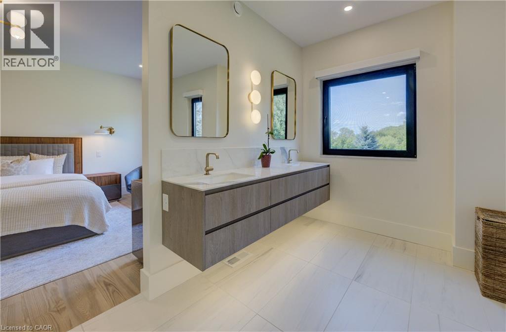 Experience the height of refined living at 118 River Run Road in Drayton—an extraordinary residence where modern European design, premium craftsmanship, and serene natural surroundings come together in perfect harmony. Backing directly onto lush green space with no rear neighbours, this luxurious home offers the ultimate private retreat, complete with a professionally landscaped backyard oasis and a stunning custom pond that invites peaceful mornings and elegant outdoor entertaining. Inside, every detail has been meticulously curated—from the hand-stained white oak staircase and glass railings to the rich European White Ash flooring and soaring 9’ interior doors. The designer kitchen is a true centerpiece, featuring Italian-made Scavolini cabinetry, waterfall-edge Silestone quartz, and a full suite of seamlessly integrated Gaggenau appliances. Light-filled living spaces are accented by contemporary lighting, smooth ceilings, and satin brass Emtek hardware throughout. Retreat to the spa-inspired bathrooms with heated floors, wall-mounted Duravit toilets, and ultra-luxurious finishes from Brizo, Graff, and Laminam. The lower level walk-out basement is equally impressive, with triple-pane tilt-and-turn windows, a radiant gas fireplace, built-in designer bar, and custom closets ideal for guests or extended stays. This is a home where comfort meets convenience—complete with new HVAC systems 2024, integrated smart features, motorized Hunter Douglas blinds, and interior access stairs from the garage to basement. Whether you're hosting, relaxing, or simply enjoying the view, this property offers an elevated lifestyle defined by beauty, comfort, and lasting quality. A rare offering for those who seek more than just a home—this is luxury living, reimagined. (id:64974)