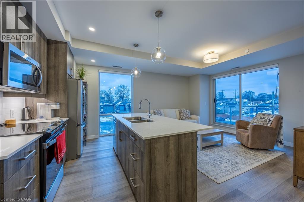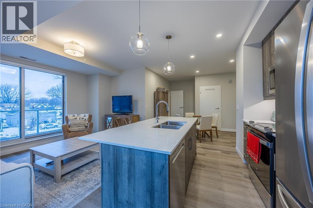 Welcome to 118 West Street, Unit 201 — a bright and beautifully appointed condo offering an easy, low-maintenance lifestyle in the heart of Port Colborne. Located in the sought-after South Port Condos, directly across from the Welland Canal at the mouth of Lake Erie, this two-bedroom, two-bathroom suite is ideal for first-time buyers, downsizers, or anyone looking to enjoy walkable living near the water. This 977 sq. ft. second-floor residence is filled with natural light and thoughtfully designed for comfort and efficiency. The open-concept layout features stainless-steel appliances, in-suite laundry, and a well-planned living and dining area that maximizes space while remaining functional and inviting. Step out onto your private balcony — a perfect spot for morning coffee or fresh air after a day exploring the community. The suite includes two parking spaces and a storage locker, adding everyday convenience. Residents also enjoy access to excellent building amenities, including an exercise room, a party room with a community BBQ area, and a welcoming access to the café located on the main floor — a favourite place to relax and watch cruise ships pass by along the canal. Just steps to scenic walking trails, summer events like Canal Days, and the shops and restaurants of charming downtown Port Colborne, this location truly shines. With easy access to Welland (20 minutes), St. Catharines (30 minutes), and the Peace Bridge (40 minutes), this condo offers carefree living in a vibrant waterfront community. Book your showing today. (id:64974)