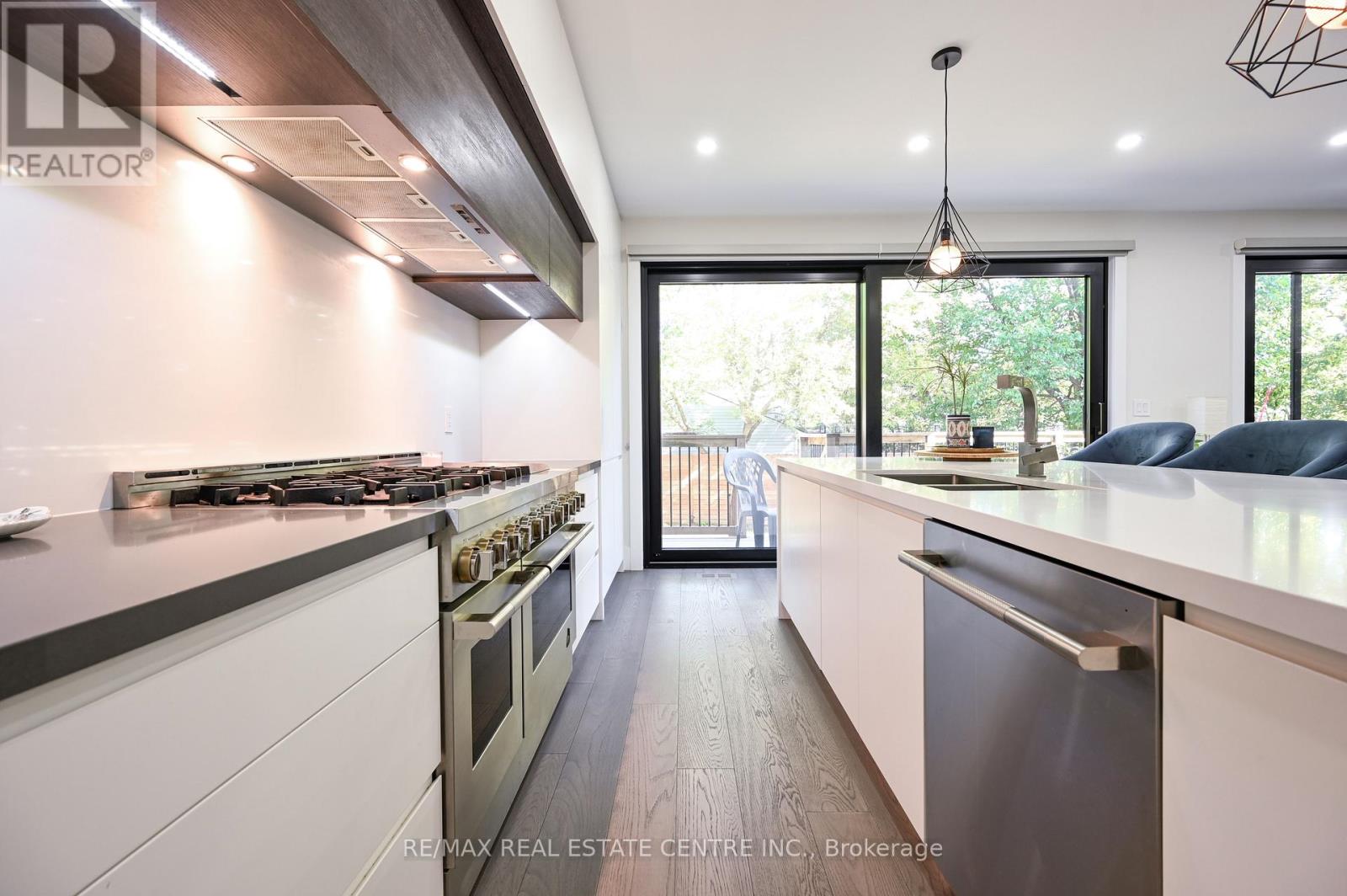 Welcome to this Stunning Custom-Built modern home in Mississauga's highly sought after Lakeview community. Designed with elegance and functionality in mind, this residence offers over 3500 sq feet of Finished Living space with soaring ceilings, floor to ceiling windows and high end finished throw-out. If you dream of living near the water but are not ready to give up all the conveniences of the city, look no further. Beaming w/Natural light throw-out with massive Full Panel windows everywhere and huge skylight above the marvelous glass railing. Boasting high ceilings Top to Bottom. The main level features an open concept layout with a chef inspired kitchen boasting quartz countertops, premium stainless-steel appliances and a spacious island seamlessly flowing into the great room with a statement fireplace and walk out to a private backyard deck. Upstairs the primary suite is a true retreat with a luxurious spa like ensuite and his and her walk-in closets. Three additional bedrooms, each with their own ensuite, provide comfort and privacy for the whole family. The huge finished lower level includes two additional bedrooms, two full baths, above grade windows and two separate entrances, perfect for an in-law suite, guest quarters or entertainment space. Set on a 50 by 110 lot with a double garage and parking for up to six cars, this property combines modern design with everyday practicality. Located in vibrant Lakeview, you are just minutes from Lake Ontario, Waterfront trails, top rated schools, parks, shopping, transit and major highways. (id:64974)
