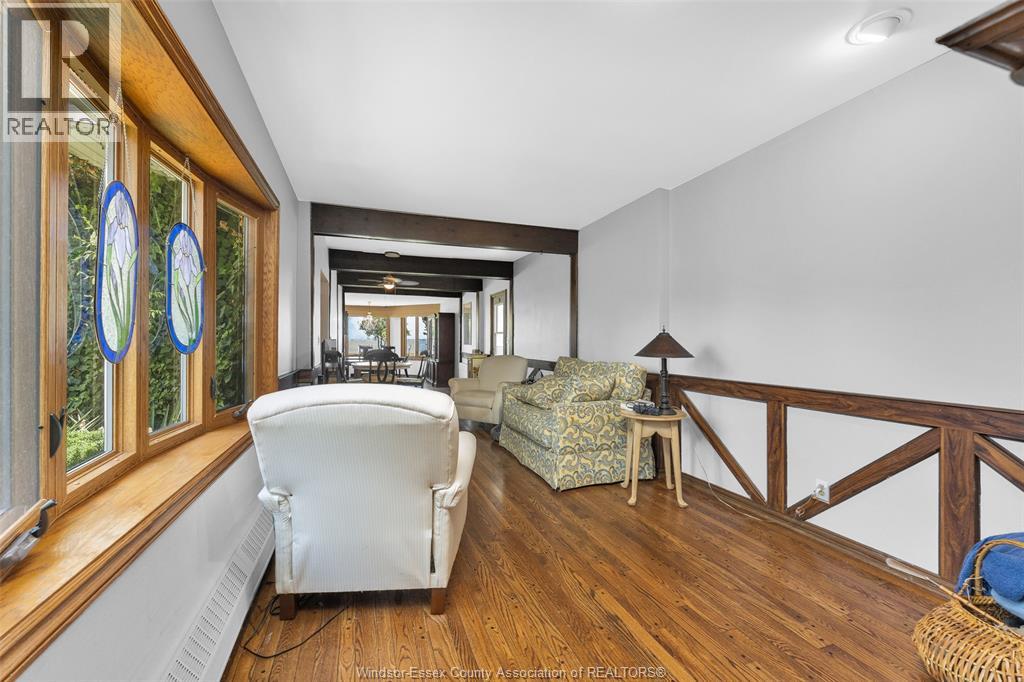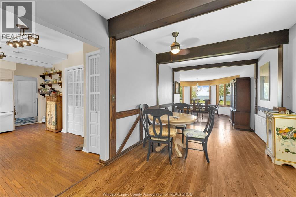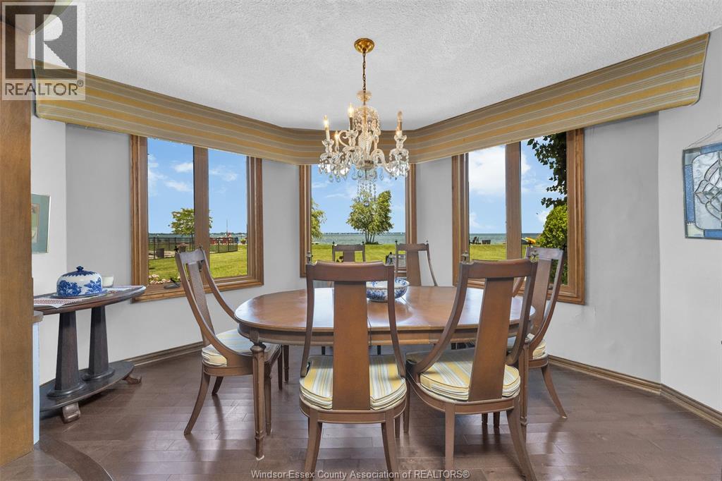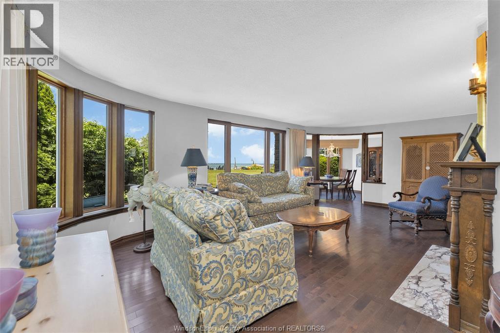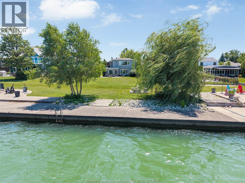 Breathing taking Waterfront views and lovely waterfront sunsets await you in this tranquil setting in east Riverside. This beautiful 3 bedroom one and a half bath 2 story home is nestled into this 461 ft deep lot in the perfect place to give you peace and quiet and incredible views of Lake St. Clair. This home opens up to a friendly foyer with the 2 pc bath, to your right you see traditional styled kitchen, straight ahead you will find the lovely formal living room with the wow views and connected to the dining room with more panoramic water views, then off to the cozy family room with gas fireplace, main floor laundry. Upstairs you will find a very large primary bedroom with more stunning waterfront views 2 more bedrooms and a cool retro 4 pc bathroom. Updates over the years approx. central air 2017, combo heating/hot water boiler 2022, main floor windows and outside doors and most upstairs windows, concrete breakwall 2005. Concrete crawl space. (id:64974)