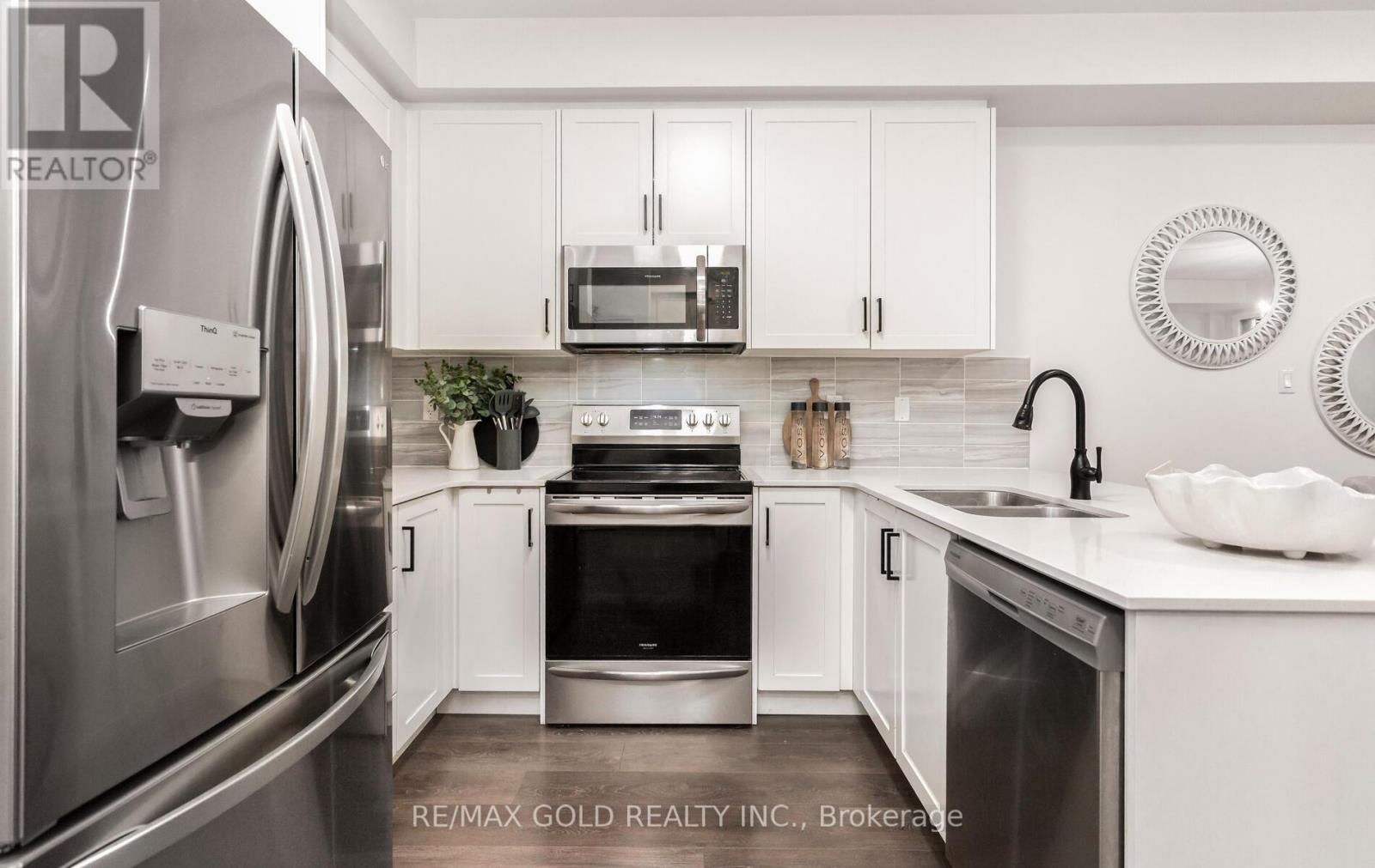 Beautiful freehold townhome in Milton's highly sought-after Ford neighbourhood, built by Great Gulf. This bright, open-concept home features 9 ft ceilings and modern finishes throughout, creating a clean and airy feel from the moment you walk in.The stylish kitchen is equipped with stainless steel appliances and flows seamlessly into spacious living and dining areas-perfect for everyday living and entertaining.Offering 3 well-sized bedrooms, including a primary retreat with its own ensuite and private balcony access. Carpet-free throughout with 3 bathrooms and the added convenience of direct garage access.Ideally located close to top-rated schools, parks, scenic trails, transit, and Milton District Hospital. A perfect opportunity for families, first-time buyers, or investors looking for a move-in-ready home in a prime location. (id:64974)