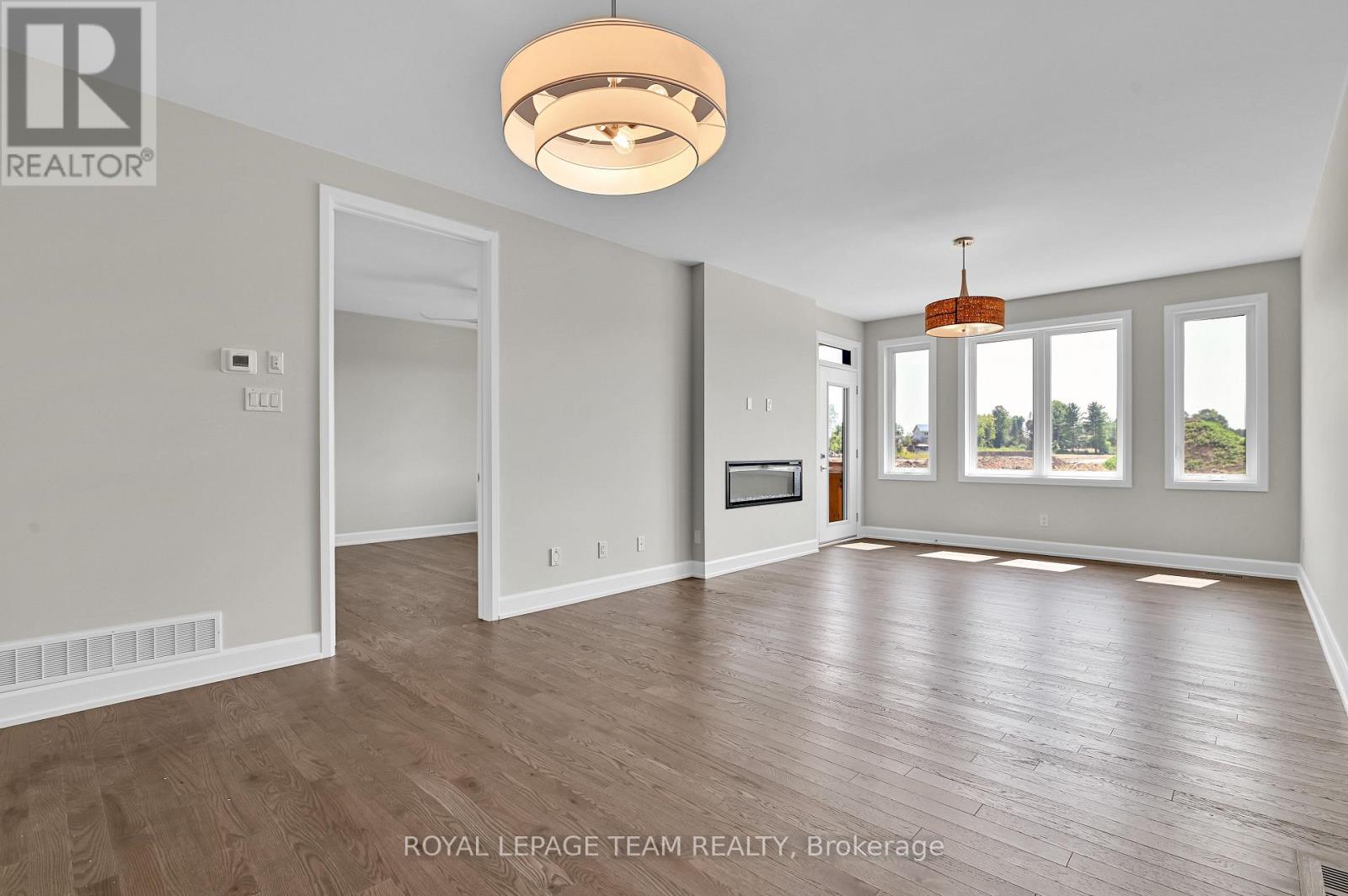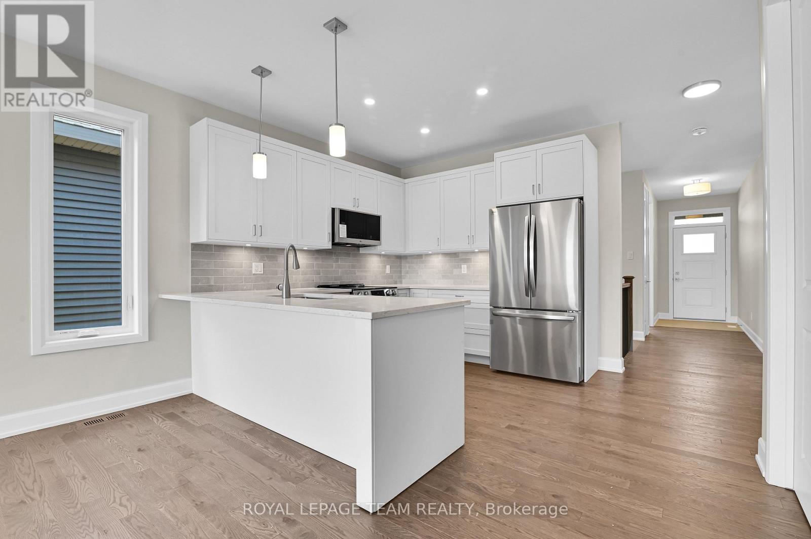 OPEN HOUSE Saturday & Sunday March 14th & 15th from 2-4pm. Welcome to Stirling Meadows! Talos is building in Brockville's newest community. This model home the "Sarah" a Single Family Bungalow features a full Brick Front, Front and rear covered porches, exterior pot lights and an oversized garage with a 12' wide insulated door. Main floor has an open concept floorplan with 9' smooth ceilings. Spacious Laurysen Kitchen with under cabinet lighting, crown molding, backsplash, pot lights and quartz countertops, soft close doors and drawers. Huge Walk in pantry with custom shelving for added convenience. 4 stainless appliances included. Open dining/living with an electric fireplace. Patio door leads off the living area to a covered rear porch. Large Primary bedroom with a spa like ensuite and WIC with built in organizer by Laurysen. Convenient, main floor laundry and an additional bedroom complete this level! Hardwood and tile throughout main floor. Finished lower level with a rec room & large bright windows, rough in for future bath. Central air, gas line for BBQ, designer light fixtures, and 36" wide interior doors, Garage door opener. April 2026 Occupancy. Photos are the of the same model, different finishes and colours. (id:64974)