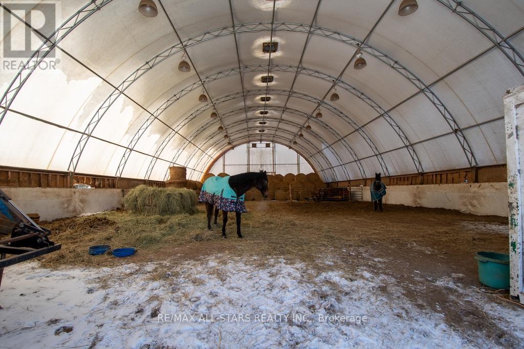 Welcome to this lovely 36.94-acre country property offering the perfect blend of privacy, functionality, and the ability to have all your hobbies and or workspace at your fingertips. Set in a beautiful, tranquil setting, this ranch-style bungalow is surrounded by rolling acreage, fenced paddocks with shelters, and outbuildings, ideal for small-scale farming, equestrian use, or those seeking space to live, work, play or unwind. The main residence features 3 bedrooms, 1.5 baths, a comfortable family room with a propane fireplace, kitchen, dining, and living areas designed for everyday living and entertaining. Step outside from the walk-out to your own backyard oasis, complete with an inground pool (requires a skimmer system), hot tub and custom-built sauna, all framed by peaceful country views. Main floor laundry adds everyday convenience. The fully finished basement expands the home's versatility with 3 additional bedrooms, a 3-piece bath, laundry area, utility room, living room and a dry kitchen, plus a separate entrance ideal for extended family, guests, or potential in-law accommodations. Above the double-car garage, you'll find even more living space with 3 bedrooms and a cozy nook, perfect for a home office, studio, or guest quarters. Outdoors, the property truly shines with a 60x120 coverall building, additional storage buildings, and paddocks offering endless possibilities for business, recreation or agricultural purposes. (id:64974)