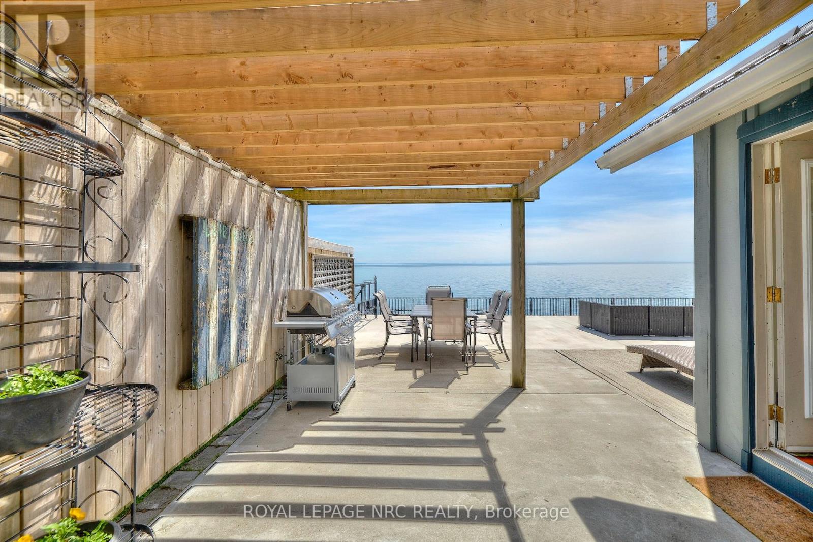 Location location location. Centre of bay, elevated 15 feet off of a cliff, overlooking the shallowest and warmest of the great lakes, Lake Erie, this cottage cannot be compared to. Solid concrete back and front patio means no maintenance required and giant recreation area for guests, the outdoor living is so unique it can only be experienced. Whether you want to feel the cool breeze off the lake in the hot summer or enjoy a night under stars with a bon fire, anything is possible in this fully winterized cottage. Swim in the lake and experience the true cottage life with direct water access. Invite family and friends over for barbecues, beach days, get a tan near the beautiful pergola, or float on water tubes, the possibilities are endless! Large break wall prevents erosion to the property and there are two levels of concrete with a metal railing and stairs for safety. Natural gas fireplace and heat pump provides low-cost heat and natural well water means no water and sewer charges. The interior of the cottage is the perfect size with giant sliding doors for those lazy summer days, bathroom with a glass shower, large dining area, 2 bedrooms, and a beautiful kitchen. Located 2 minutes from long beach, and 10 minutes from grocery stores, gas stations, fast food restaurants, convenience stores, golf, sky diving, schools, and churches. The cottage is move-in ready with all appliances included, new metal roof (2021), new paved driveway (2022) and 240v amp-plug for EV-charging in the garage This picture-perfect view is remarkable, don't miss your chance to see it! (id:64974)