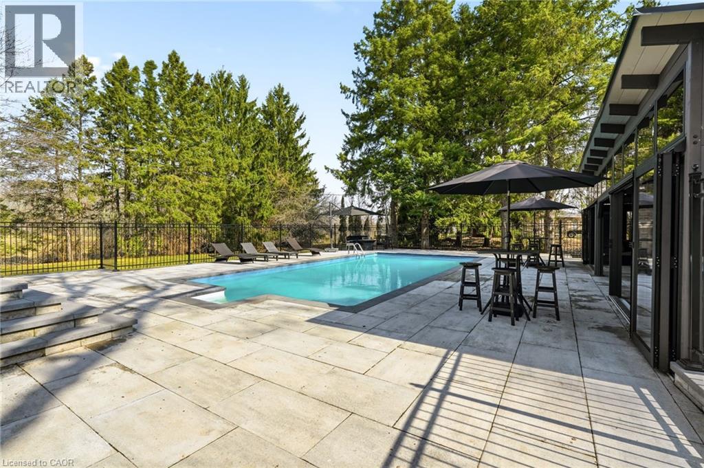 Experience country living at its absolute finest, perfectly situated just minutes from the City limits. Nestled on a picturesque 1.15-acre property, this home captures breathtaking views of both the City skyline and the escarpment. Inside, the spacious layout includes a gourmet kitchen with solid cherry wood and granite, open to a cozy family room and an elegant dining area with a fireplace. The main-level primary suite is a true retreat. The exterior is an entertainer's dream, featuring a saltwater pool and a glass pool house with a bar. With recent exterior updates, this incredible property is close to parks, golf courses, all major highways, and all the amenities the city has to offer. Let's get you home! (id:64974)