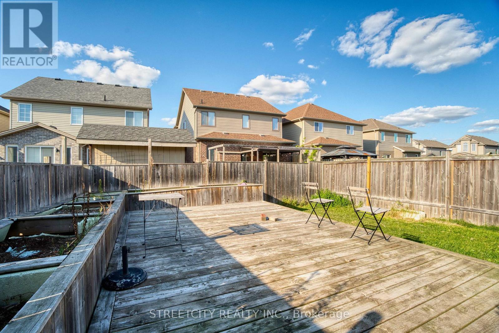 Beautifully maintained Sutherland model by Kenmore Homes offering 1,892 sq. ft. in the heart of North London. Prime location close to COSTCO, T&T Supermarket, Western University, restaurants, and all amenities. Features include a soaring ceiling foyer, spacious kitchen with maple cabinetry, stainless steel appliances, and breakfast bar, open dining and living area with rough-in fireplace and patio doors to a sun deck with raised planters. Ceramic tile flooring throughout foyer and wet areas. The upper level offers a primary bedroom with vaulted ceiling and 5-piece ensuite with separate shower and tub, plus walk-in closets in all bedrooms and a second-floor laundry room. Enjoy peace of mind with recent upgrades including central A/C (2025) and washer(2025). (id:64974)