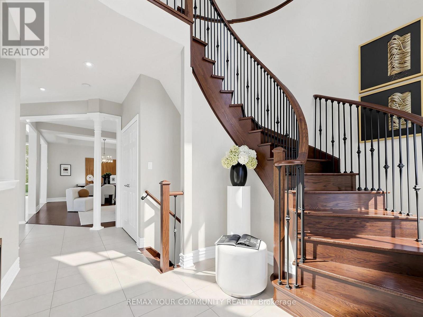 Premium deep lot backing onto protected forest on one of Copperhill South's most desirable streets, within a top-ranked Newmarket school district. This elegant 4-bedroom, 4-bathroom detached home offers approx. 3,333 sq.ft., featuring 9-ft ceilings on main and a striking 18-ft open-to-above foyer with an oak spiral staircase and iron pickets. Freshly painted throughout. Bright, upgraded kitchen with quartz countertops, backsplash, center island, built-in pantry, and breakfast area overlooking the ravine. Family room also overlooks the ravine, offering a peaceful and private setting. Hardwood flooring throughout, LED pot lights, and quality finishes. Spacious primary suite with walk-in closet and a 5-piece ensuite. Ideally located near highway, parks, shopping, schools, and hospital-offering an exceptional blend of comfort, style, and convenience. (id:64974)