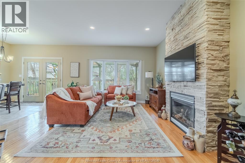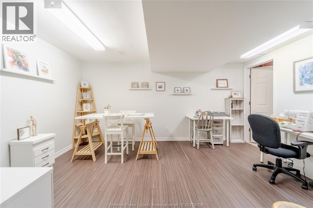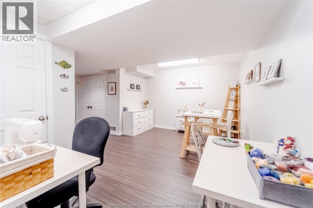Detached Brick Ranch in quiet neighbourhood on the Border of Tecumseh in Riverside! A fantastic alternative to a condo or townhouse, this well-maintained detached ranch offers approximately 1,700 sq ft on the main floor with 4 bedrooms and potential for a 5th (currently used as a den). Beautiful kitchen with quartz countertops, large breakfast bar, and separate eating area. Spacious living room with stone gas fireplace, formal dining room, large primary with ensuite, second bedroom and bath, plus main floor laundry. Fully finished lower level features 2 additional bedrooms, rec room with bar, 4-piece bath, art room, workshop, and plenty of storage. Outside has an attached 2 car garage, park-like backyard with pergola, cement patio, and gardens. Updates including roof, furnace, and A/C (approx. 2018). New sod in front yard (2025). Don’t miss this opportunity in a prime Riverside location! * 3rd bedroom on main floor currently being used as a den (no closet) , could be a bedroom* (id:64974)