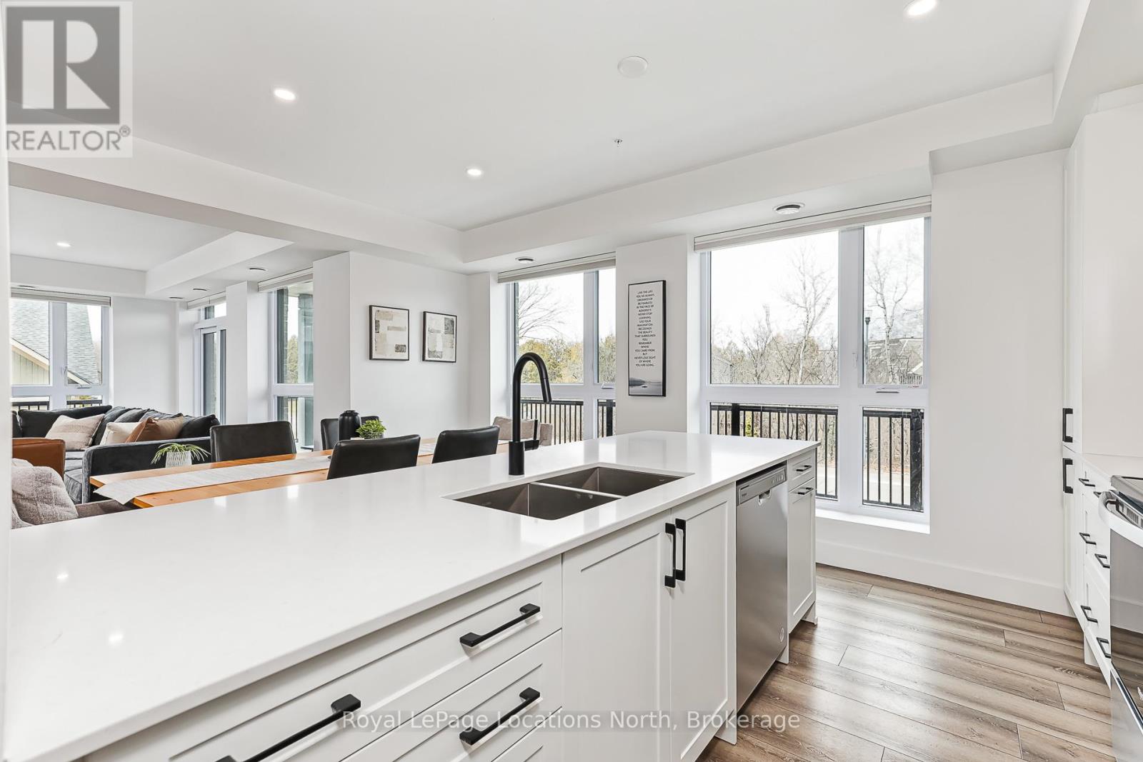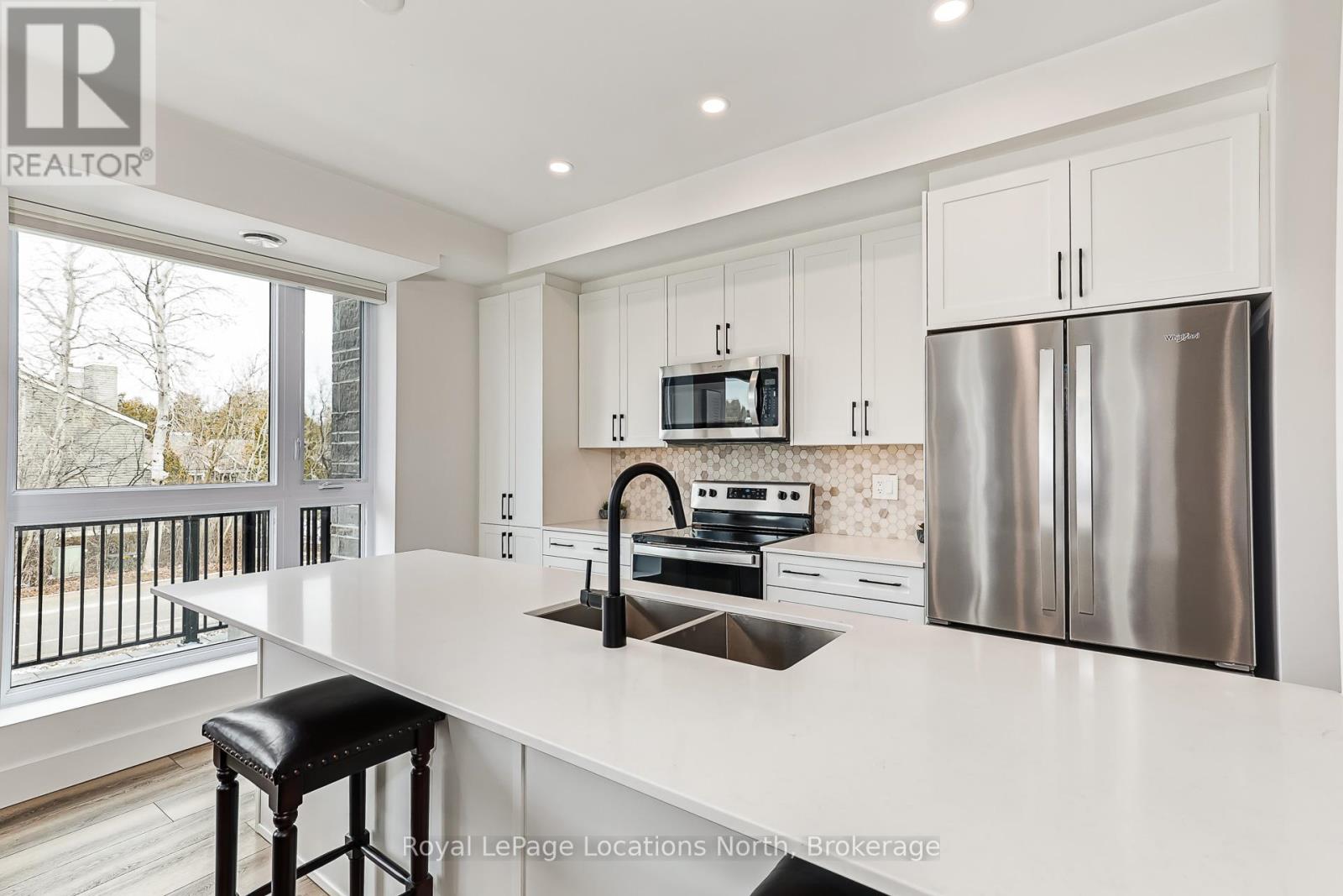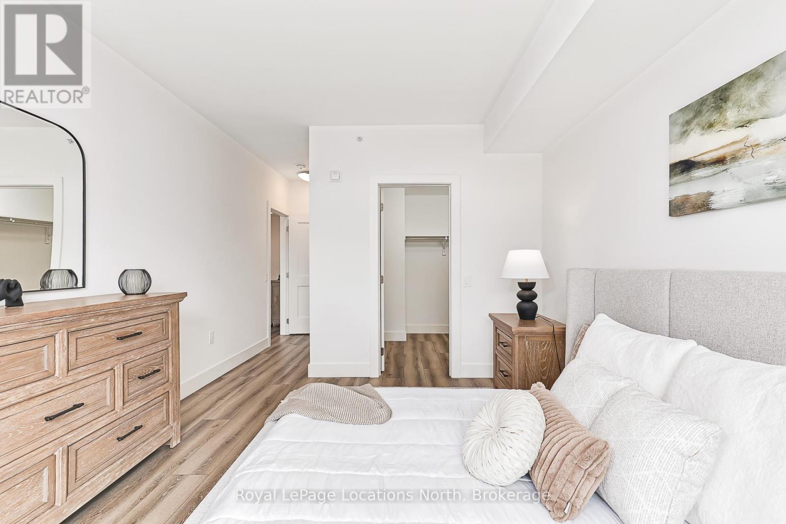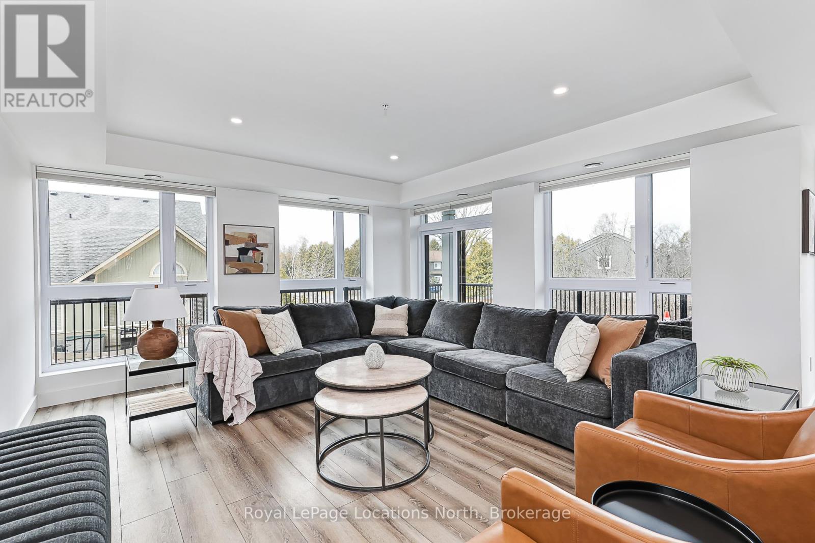 Elevate your lifestyle at Royal Windsor, a beautifully upgraded 2-bedroom, 2-bathroom, 1410 sq ft condo showcasing a bright and modern open-concept layout. The upgraded white kitchen features premium finishes, pot drawers, and a spacious pantry cupboard, perfect for everyday living and entertaining. The living, dining, and kitchen areas flow seamlessly to a wraparound balcony, which fills the space with natural light and extends your living area outdoors. The balcony has a desirable northwest exposure, facing away from the parking lot and neighbouring yards. Enjoy added comfort with Hunter Douglas WiFi-enabled blinds for easy control of light, privacy, and temperature. The primary suite offers a walk-in closet and an upgraded ensuite, while the second bedroom includes a double closet, ideal for guests or a home office. Additional features include stackable laundry, ample storage, two tandem parking spaces(with power for an EV charger,) a main floor locker, and a sleek, modern design throughout. Residents enjoy exceptional amenities, including a stylish party room, a rooftop terrace with a BBQ area overlooking Blue Mountain, an indoor pool, fitness centre, golf simulator, a games room and more - perfect for both entertaining and everyday enjoyment. A perfect blend of style, function, and comfort just moments from scenic trails and the shores of Georgian Bay! (id:64974)