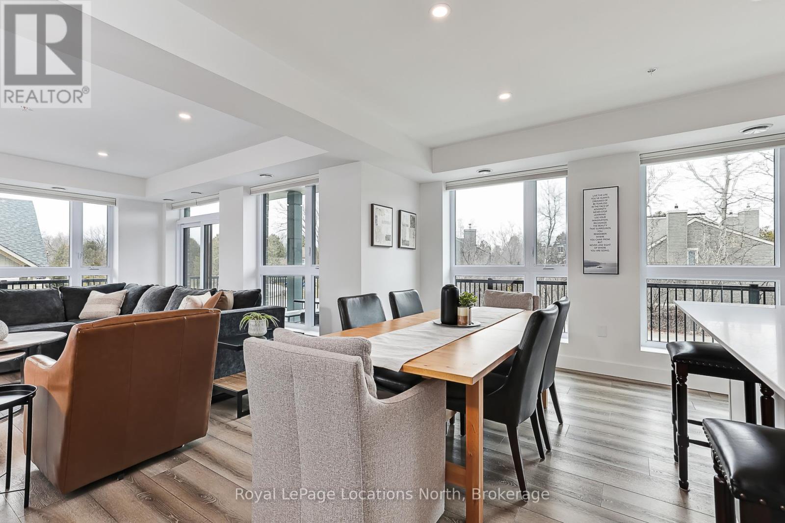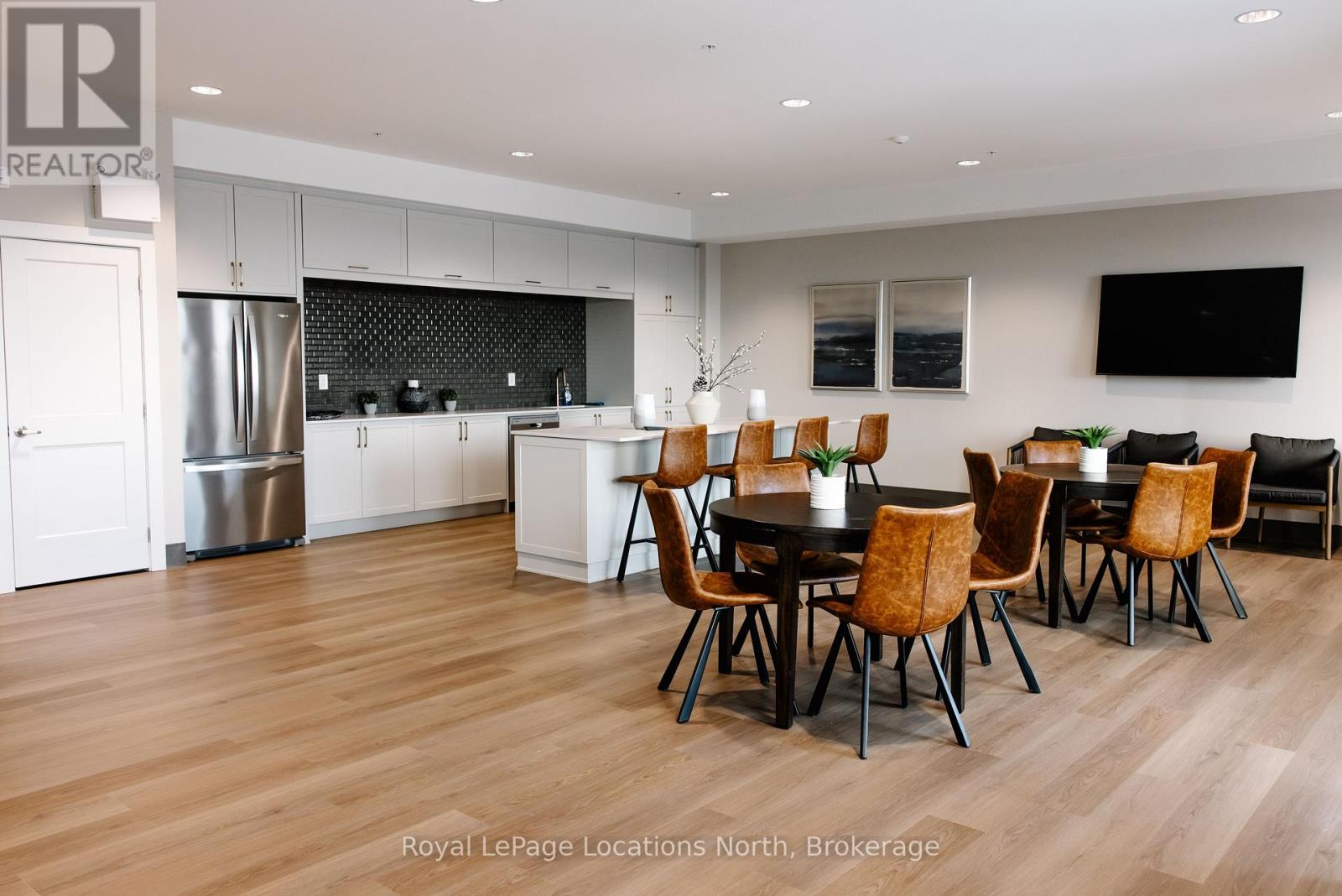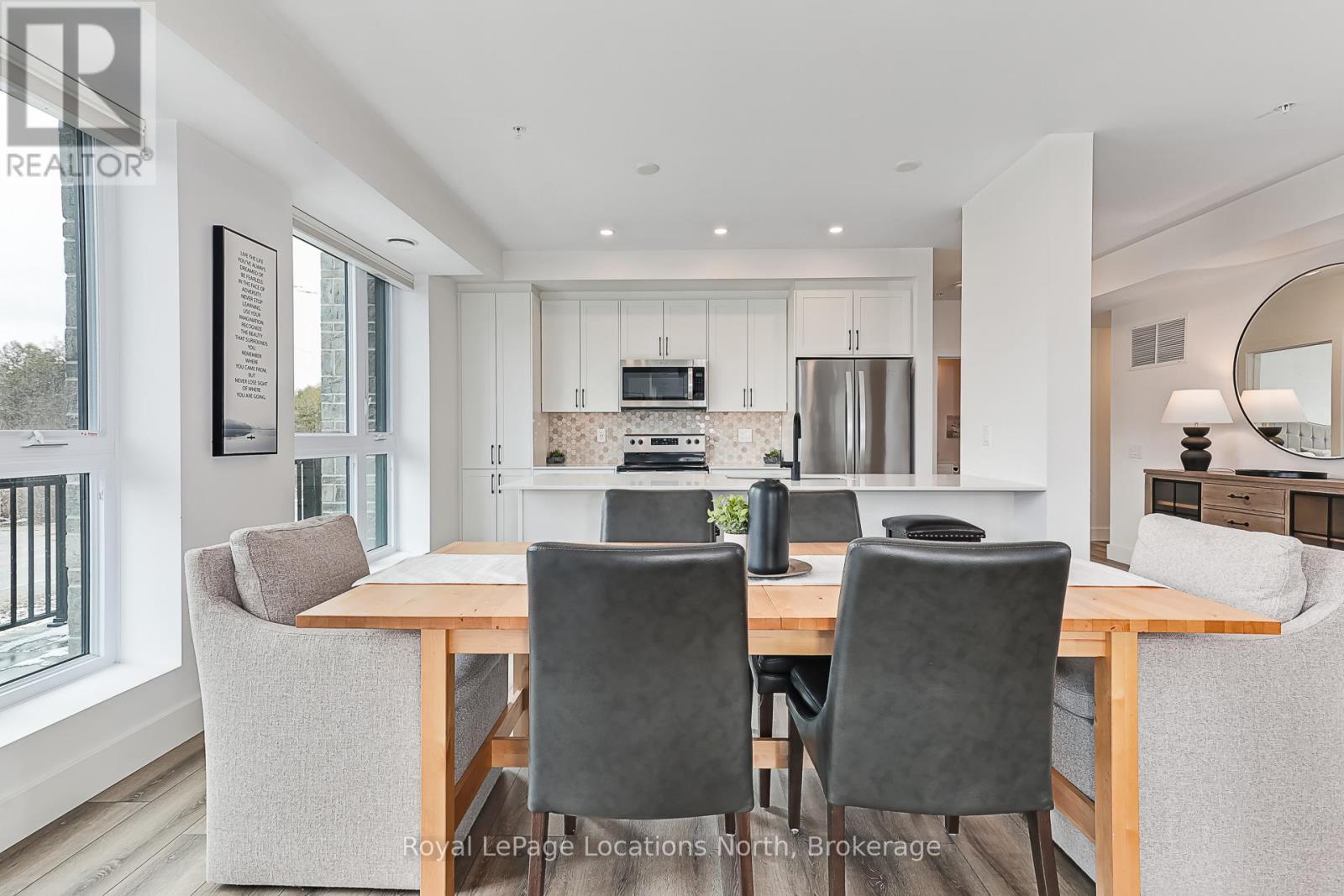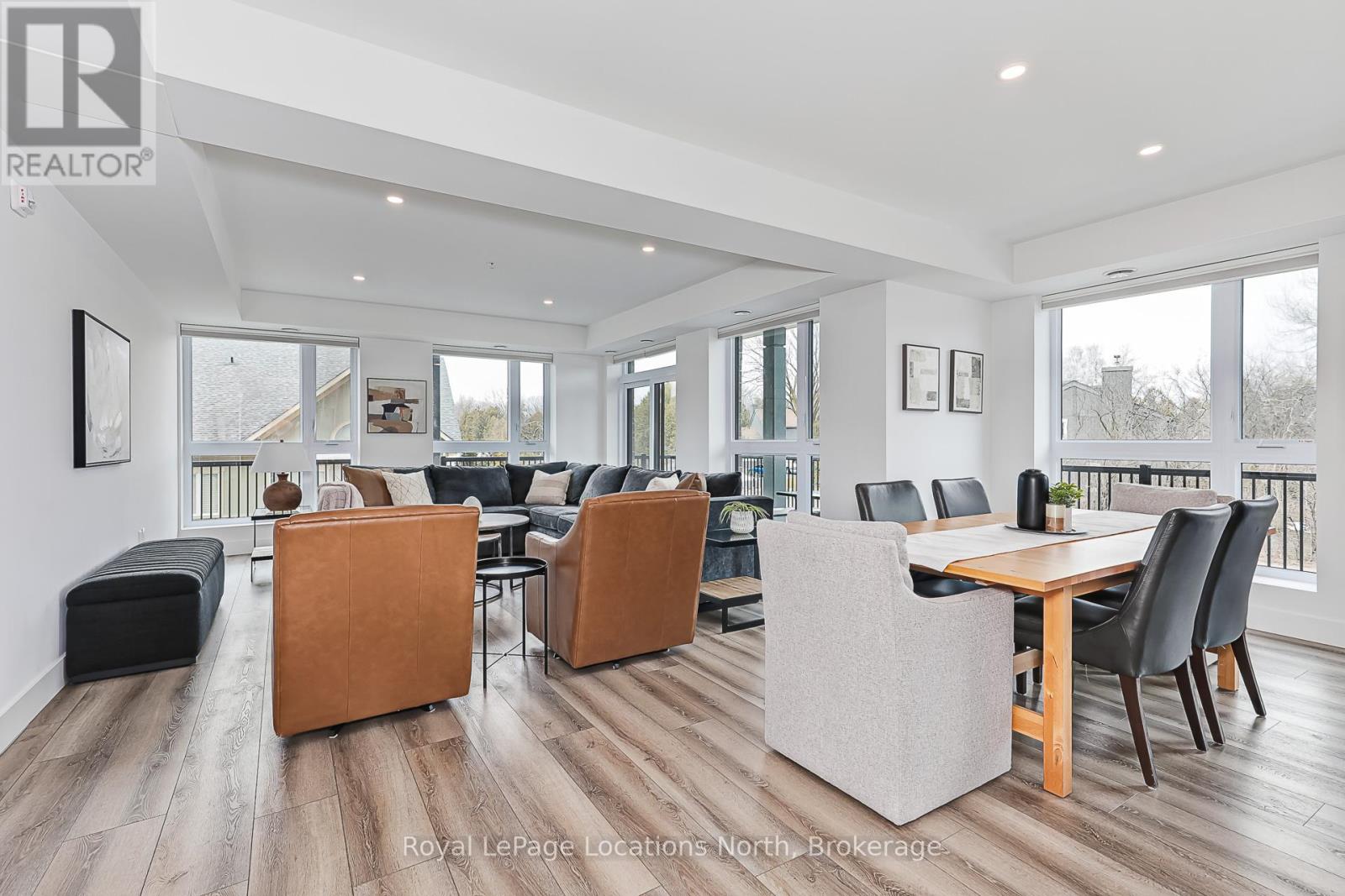 Elevate your lifestyle at Royal Windsor, a beautifully upgraded 2-bedroom, 2-bathroom, 1410 sq ft condo showcasing a bright and modern open-concept layout. The upgraded white kitchen features premium finishes, pot drawers, and a spacious pantry cupboard, perfect for everyday living and entertaining. The living, dining, and kitchen areas flow seamlessly to a wraparound balcony, which fills the space with natural light and extends your living area outdoors. The balcony has a desirable northwest exposure, facing away from the parking lot and neighbouring yards. Enjoy added comfort with Hunter Douglas WiFi-enabled blinds for easy control of light, privacy, and temperature. The primary suite offers a walk-in closet and an upgraded ensuite, while the second bedroom includes a double closet, ideal for guests or a home office. Additional features include stackable laundry, ample storage, two tandem parking spaces(with power for an EV charger,) a main floor locker, and a sleek, modern design throughout. Residents enjoy exceptional amenities, including a stylish party room, a rooftop terrace with a BBQ area overlooking Blue Mountain, an indoor pool, fitness centre, golf simulator, a games room and more - perfect for both entertaining and everyday enjoyment. A perfect blend of style, function, and comfort just moments from scenic trails and the shores of Georgian Bay! (id:64974)