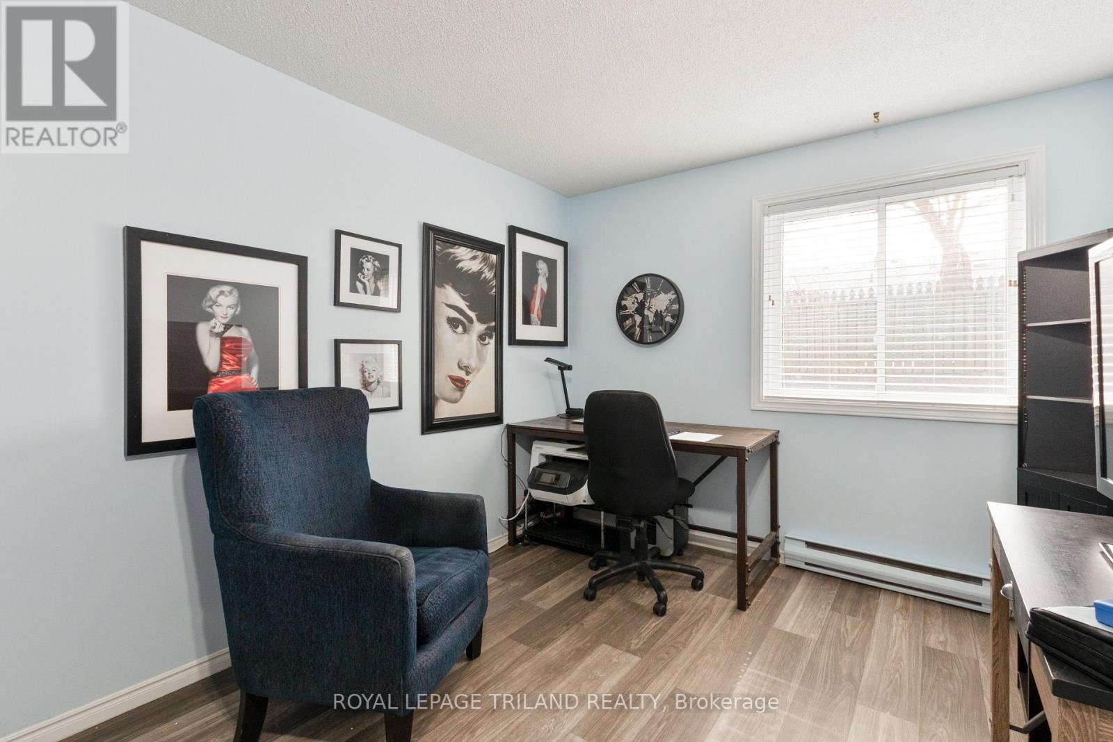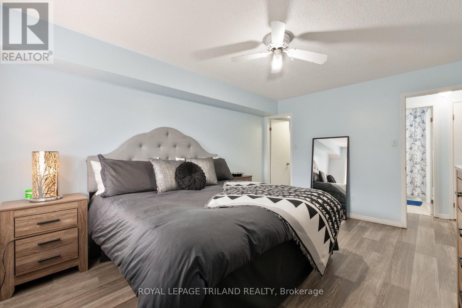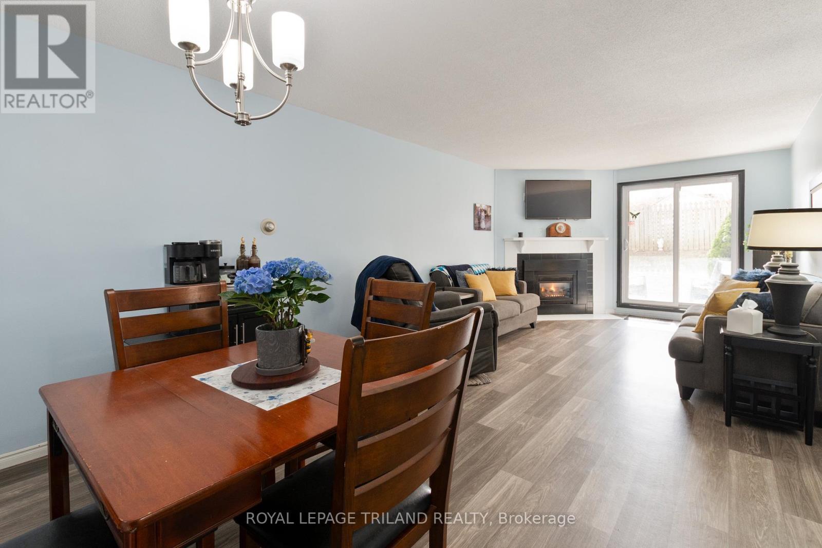 Experience the perfect blend of convenience and tranquility in this beautifully updated, carpet-free end-unit condo. Situated on the main floor, this home offers a unique "bungalow-style" lifestyle with easy access through the end door - no need to navigate busy hallways or elevators. Step inside to a bright, open living space where a cozy fireplace serves as the heart of the room, perfect for relaxing evenings. The interior has been thoughtfully refreshed over the last few years, boasting modern finishes and a seamless flow. The patio doors act as a picture window to the lush greenery outside, leading you to a serene patio area that backs onto the complex's gardens. It is the ideal spot for morning coffee or hosting friends in a peaceful, outdoor setting. The layout is designed for both comfort and functionality. Primary Retreat: Features a walk-in closet and a private 2-piece ensuite. Modern Main Bath: Updated with quartz counters and a contemporary walk-in shower with seat featuring a luxurious rain head for a spa-like experience. Flexible Space: Two additional well-sized bedrooms offer plenty of room for family, a home office, or a hobby room. Located in the charming community of St. Thomas, this condo offers a low-maintenance lifestyle without sacrificing the feeling of "home." Whether you're downsizing or looking for a stylish, accessible space, this end unit provides the privacy and garden views you've been searching for. (id:64974)