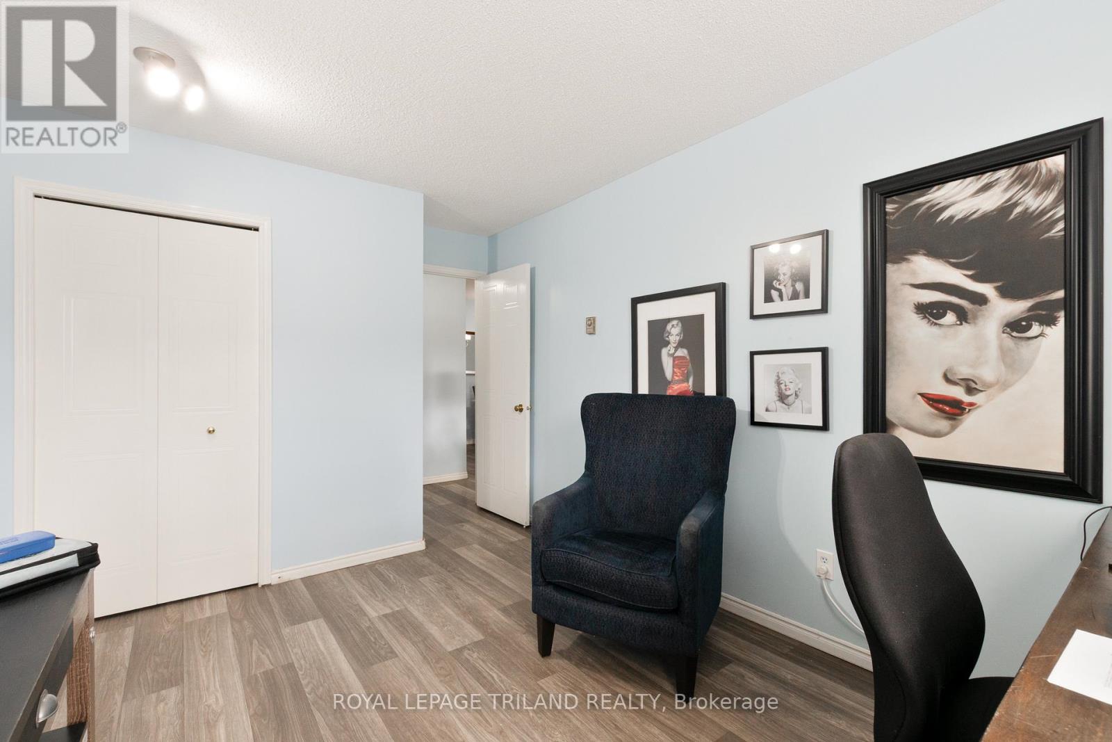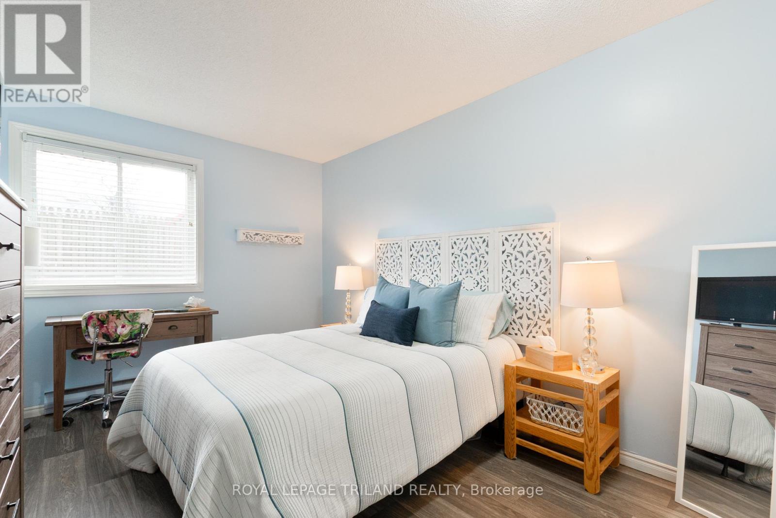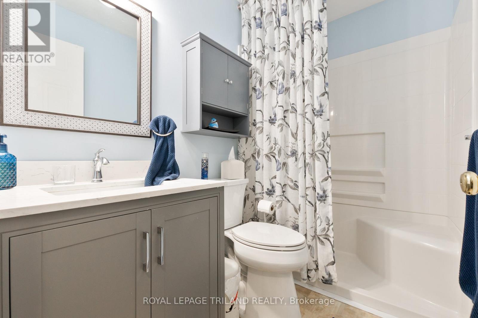 Experience the perfect blend of convenience and tranquility in this beautifully updated, carpet-free end-unit condo. Situated on the main floor, this home offers a unique "bungalow-style" lifestyle with easy access through the end door - no need to navigate busy hallways or elevators. Step inside to a bright, open living space where a cozy fireplace serves as the heart of the room, perfect for relaxing evenings. The interior has been thoughtfully refreshed over the last few years, boasting modern finishes and a seamless flow. The patio doors act as a picture window to the lush greenery outside, leading you to a serene patio area that backs onto the complex's gardens. It is the ideal spot for morning coffee or hosting friends in a peaceful, outdoor setting. The layout is designed for both comfort and functionality. Primary Retreat: Features a walk-in closet and a private 2-piece ensuite. Modern Main Bath: Updated with quartz counters and a contemporary walk-in shower with seat featuring a luxurious rain head for a spa-like experience. Flexible Space: Two additional well-sized bedrooms offer plenty of room for family, a home office, or a hobby room. Located in the charming community of St. Thomas, this condo offers a low-maintenance lifestyle without sacrificing the feeling of "home." Whether you're downsizing or looking for a stylish, accessible space, this end unit provides the privacy and garden views you've been searching for. (id:64974)