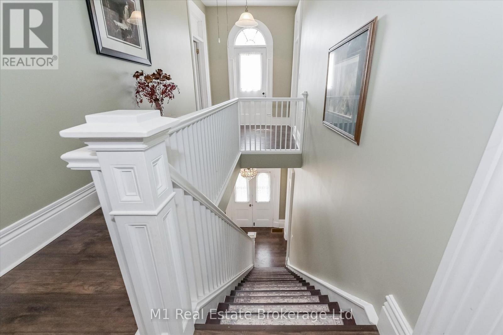 One of Wingham's original estate homes, this impressive 5-bedroom, 3-bathroom century home sits on a private double lot surrounded by established gardens and mature trees a true in-town oasis. Built in 1890 on the site of a former quarry, the property offers a rare combination of character, space, and seclusion, all within walking distance of everything the community has to offer. The home has been carefully maintained and thoughtfully updated over the years, blending original charm with modern comfort. Inside, you'll find a custom kitchen, a bright sunroom, and spacious living areas with timeless details throughout. Upstairs offers plenty of room for family or guests, including a large primary suite. The detached carriage house adds even more versatility, with a workshop above the garage and a utility space that opens directly into the gardens ideal for storage, hobbies, or future creative use. A mature oak at the edge of the driveway is said to have royal roots, a small but meaningful nod to the homes deep connection to the areas history. Located just two blocks from downtown Wingham and minutes from the river, parks, and walking trails with the hospital and school less than five minutes away this is a rare opportunity to own a piece of history in a truly special setting. (id:64974)