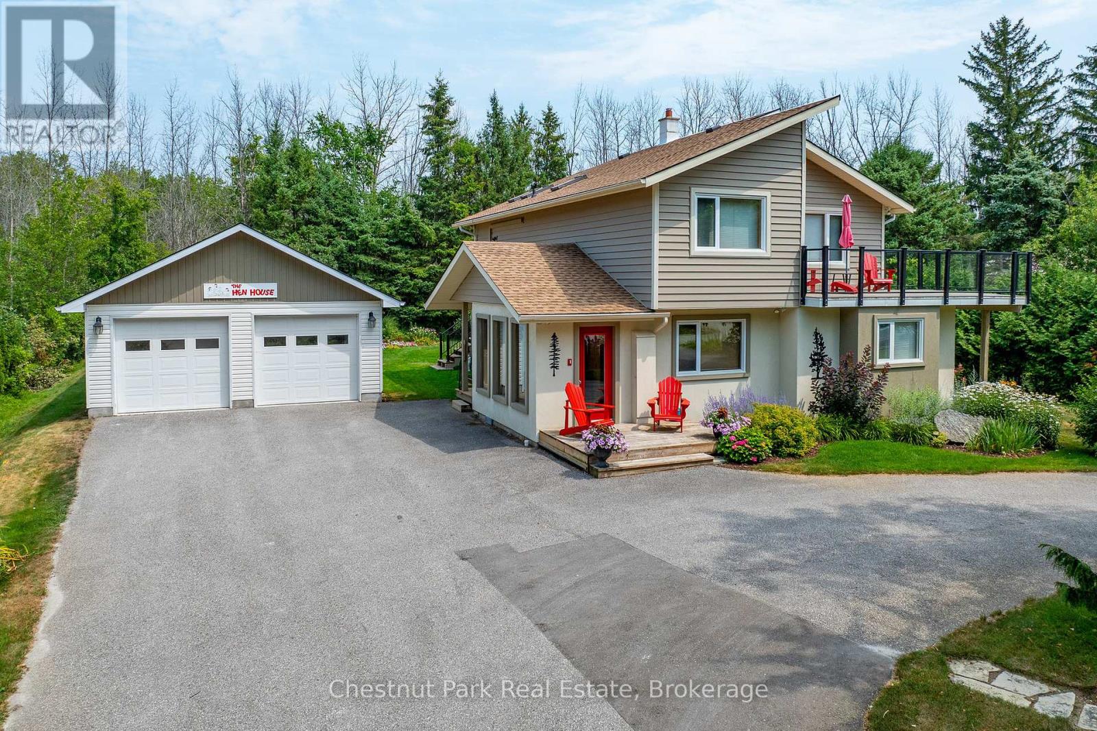 TURNKEY OPPORTUNITY !!! MOVE IN FOR SKI SEASON!! Welcome to 119 Martin Grove in the Blue Mountains, an impeccably maintained mountain retreat nestled in a prime location just steps from Blue Mountain Resort. Imagine walking to the slopes in the winter or taking a short 5-minute stroll to the Village for dining, shopping, golf and year-round entertainment. This beautifully landscaped property offers the ultimate in lifestyle, whether you're here full-time or enjoying a weekend escape. Set on a private lot with mature trees and gardens, this charming home features a reverse floor plan with 4 bedrooms on the main level, including a bonus room with built-in bunk beds that doubles as a laundry area - perfect for kids. Upstairs, the open-concept living room with gas fireplace and dining room are centered around a gourmet kitchen, making it ideal for cozy winter nights. Two oversized decks extend your living space outdoors. The front deck offers views towards the ski hills and is the perfect spot for your morning coffee or sunset cocktails. The second, located at the back of the home off the kitchen is ideal for entertaining with stairs leading down to the lush backyard and garage. A detached two-car garage offers plenty of space for your vehicles, gear, or a future workshop, complete with a long row of built-in storage in the back section. The owners have recently connected to municipal sewers and paid the full capital assessment, offering peace of mind for future buyers. A brand new roof was just installed on both the house and garage in July 2025. New Furnace in fall 2026. Bike to the Georgian Trail and local beaches. Located minutes to Collingwood's shops, restaurants, marinas, and services, and just a short drive to Craigleith, Alpine, and Osler ski Clubs, as well as area golf courses - this is a rare opportunity to live in the heart of Ontario's four-season playground. (id:64974)