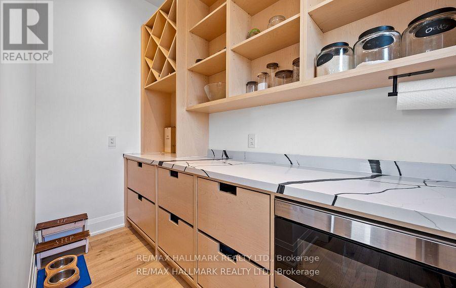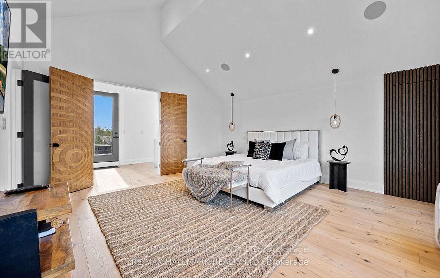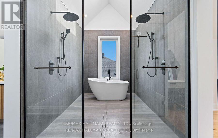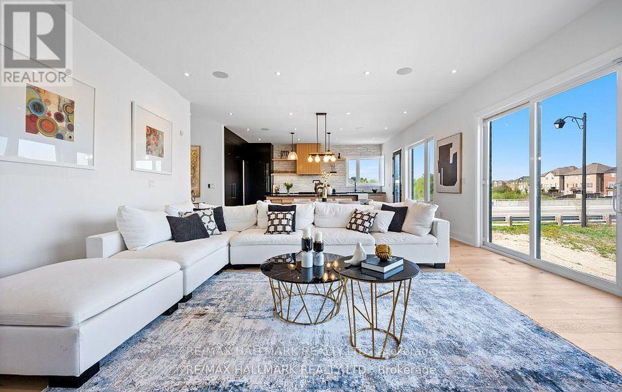 Welcome to an architectural masterwork of modern luxury and innovation. This bespoke residence offers over 3700 sqft of elevated living across three meticulously crafted levels. Perched on a premium RAVINE lot with 10FT walk-out basement, this home was thoughtfully designed for those who value both sophisticated style and advanced functionality.The main level boasts a dramatic grand foyer with custom millwork, an executive two-storey glass office, and a great room anchored by 12-ft wide floor-to-ceiling sliders that seamlessly connect to lush outdoor living. The chefs kitchen is a statement in design, featuring a showpiece waterfall island, panel-ready smart appliances, and a hidden walk-in scullery-butlers pantry with full prep capabilities.On the second level, three private bedroom suites each offer designer ensuites, custom storage and abundant natural light. A dedicated laundry suite with premium appliances and bespoke cabinetry adds everyday elegance.The entire third floor is a private primary retreat complete with vaulted ceilings, a sculptural four-poster bed alcove, boutique walk-in closet with skylight, and a spa-inspired ensuite featuring heated porcelain floors, double rainfall showers, and a freestanding tub.Smart home features include Brilliant WiFi automation, built-in speakers, central vacuum system with car vacuum, whole-house water softener and filtration, and security system wiring with camera capability. All appliances are WiFi-enabled and controllable by phone. Additional highlights include five skylights, pet wash station, private balconies with stunning CLEAR RAVINE views, artisan finishes throughout, and a walk-out basement with a 3-piece rough-in awaiting your vision. With easy access to 400 & 404, convenience meets luxury. This is a rare opportunity to own a residence where curated design and cutting-edge technology converge in perfect harmony. Plutus Homes is an HCRA Tarion registered builder with an impeccable reputation and rich history. (id:64974)