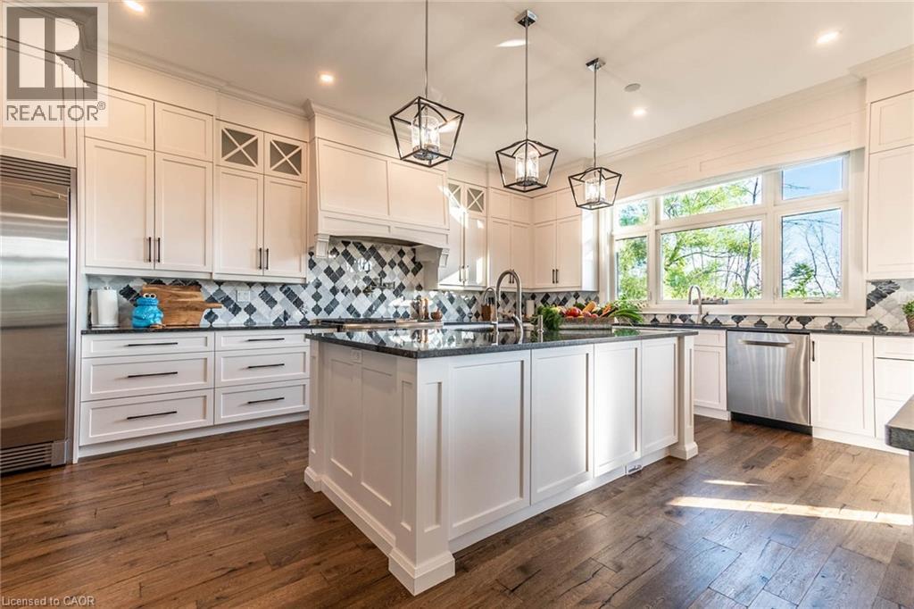 Nestled on a ravine pie shaped lot with no rear neighbors, this custom-built estate home in Welland offers over 5,000 SF of luxurious living space. Showcasing exquisite craftsmanship throughout, this home is designed to impress with an open-concept layout that flows seamlessly from room to room, ideal for grand entertaining and everyday elegance. The heart of the home is a chef’s kitchen equipped with premium appliances, with two generous islands, custom cabinetry, and a fully outfitted pantry with wine bar and fridge. Overlooking the meticulously landscaped grounds, this space opens effortlessly to the main living area with its sophisticated design elements and smart home technology. The primary suite on the second floor provides a private retreat, complete with a walk-in closet featuring custom cabinetry and a spa-inspired ensuite with heated floors. Outside, immerse yourself in resort-style living with a fiberglass pool, custom pergola, and multiple covered outdoor spaces designed for relaxation and entertainment. A property of this caliber, with advanced tech and luxurious finishes at every turn, does not come on the market often and is irreplaceable at this price point offering a rare blend of privacy and prestige just moments from local amenities. Discover unparalleled luxury—schedule your private tour today. Please find attached, a complete list of rooms as well as features and amenities included that are too numerous in a write up. (id:64974)