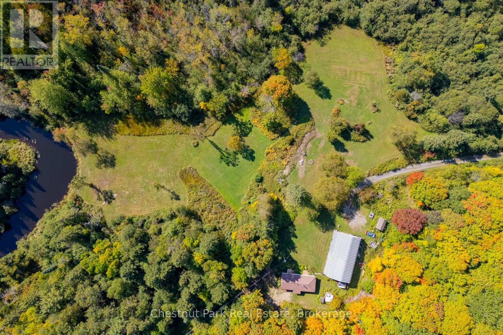 This exceptional 59.4 Acre property offers privacy, natural beauty and endless potential. The picturesque Rosseau River winds its way through the land, creating a stunning focal point and a peaceful meadow like setting down by the water is the perfect place to relax, explore, or simply take in the views. With a mix of open space and mature trees this property offers privacy and is abundant with wildlife. Tucked within the property is a charming one bedroom, one bathroom home featuring a spacious living room, full four piece washroom, convenient laundry area and generous bedroom with large closet space. The kitchen has new walnut counter tops, tile backsplash and vented hood fan. Recent renovations in the home include a new front porch, electric hot water tank, pressure tank and plumbing update. New luxury vinyl floors were recently installed in a large portion of the home as well as tile backsplash and flooring around the fireplace. A brand new septic system was installed in August of 2025 including a 3600 L tank with effluent filter and 10 sq m filter bed. A drilled well supplies water to the property. Whether you're looking for a year round residence, a recreational retreat or a base while you build your dream home, this home offers comfortable living in a serene setting. For those needing workspace or storage, the impressive 60x40 foot Quonset barn with loft area is a standout feature. Ideal for contractors, hobbyists or anyone with equipment and toys, this versatile structure provides ample space for projects, storage or business use. Only minutes to the Village of Rosseau. If you have been searching for acreage with water, privacy and room to grown- all surrounded by nature this is a rare opportunity to own your own slice of paradise. (id:64974)