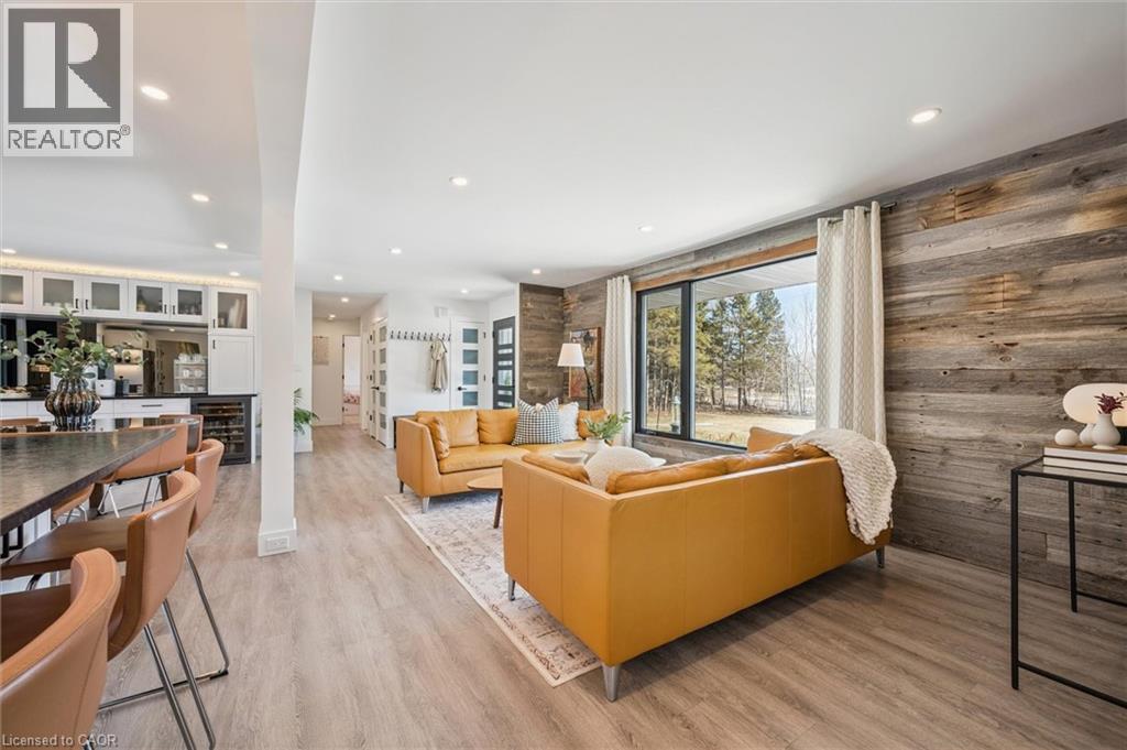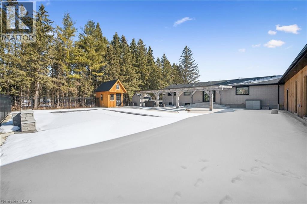 Welcome to 1192 Shellard Side Road — minutes from Cambridge & just shy of 8 acres, this exceptional property delivers the rare country in the city lifestyle so many seek but few find. Thoughtfully renovated, this 3-bedroom bungalow offers refined finishes, expansive living spaces, & incredible versatility. Inside you’ll find luxury vinyl flooring, custom cabinetry, new lighting, & a stunning blend of quartz & granite countertops. The oversized eat-in kitchen with a statement island anchors the home, while the main floor office with custom glass doors provides the perfect work-from-home setting. Heated floors in the bathrooms & mudroom add comfort & luxury & the main floor primary suite features a beautifully appointed 5-piece ensuite with a jetted soaker tub. The finished basement extends the living space with generous recreation & storage areas, a cold room, plus a large bedroom complete with a 3-piece ensuite & curbless steam shower - ideal for multi-generational living or guest accommodations. Step outside to a backyard designed for connection & entertainment. The 20' x 40' saltwater pool, hot tub, expansive patio, custom bunkie (perfect as an office or play space), fire pit & wide-open green space create a setting where memories are made. For those needing room to grow, build, or store, this property delivers: an addition off the existing two-car garage is ready to be finished as expanded living space and/or a pool house. This area also features a 20' x 8' garage door & a 16' x 8' garage door, with rear yard access. In addition is a 30' x 40' heated & insulated 3-car garage with 12' ceilings & oversized doors; & a newly constructed 1600 sq ft barn with 14' ceilings. Whether you have vehicles, boats, trailers, tractors, RVs, recreational equipment, or simply need space to create, this property offers unmatched flexibility. Private. Peaceful. Unforgettable. A property designed for roaming, growing, & living —ready to serve its next owners for years to come. (id:64974)