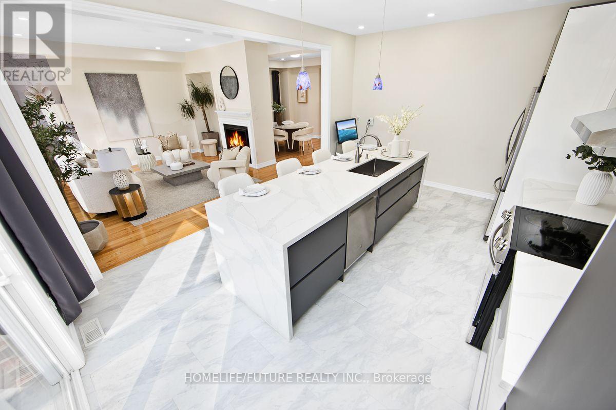 Welcome to this bright and spacious open-concept home offering over 3,500 sq. ft. of livingspace! Located in the desirable Seaton family neighbourhood, at the end of a quiet street andsurrounded by forest and trails. Features hardwood floors, fireplace, and stainless steelappliances. Gorgeous gourmet chef's kitchen with coffee station and new quartz countertops.Large primary bedroom with walk-in closet and 5-pc ensuite. Fully finished basement withseparate entrance includes kitchen, 1 washroom, separate laundry, and cold cellar, withpotential to convert to a 2-bedroom basement apartment. 200-amp electrical panel. Close toparks, Hwy 401 & 407, and shopping centres. (id:64974)