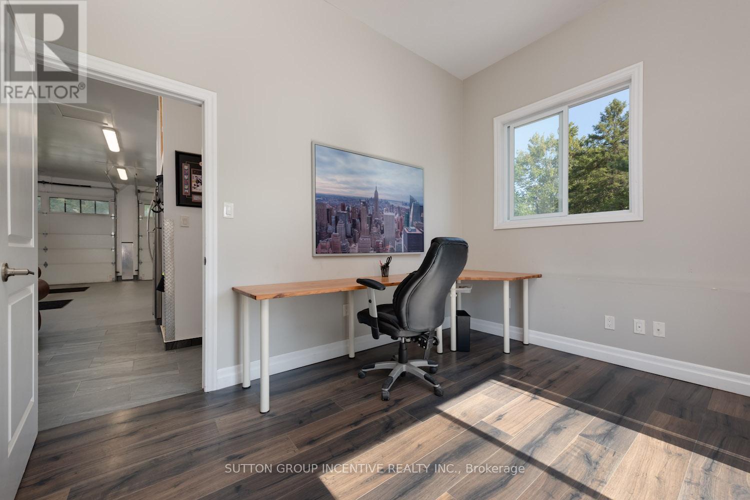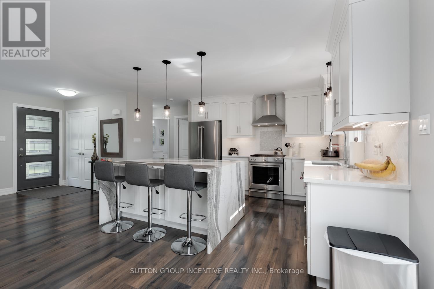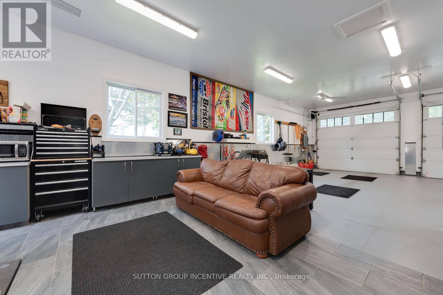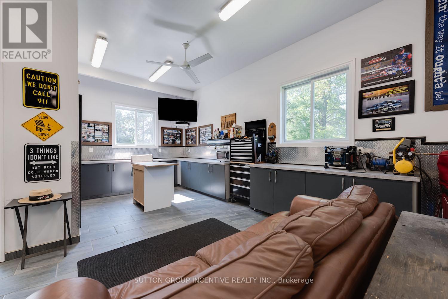 Whether youre a contractor running a business, a hobbyist needing serious workspace, or a family seeking flexible multi-generational living, thisproperty delivers. A new in 2019 875-sq-ft detached shopwith two overhead doors, side-mount openers, heated floors, office, and a two-piecewashroomoffers the ideal setting for a home-based business, workshop, or hobby area. A self-contained in-law suite with its own entranceprovides private, comfortable space for adult children, parents, or guests. Natural gas service a rare advantage for rural properties ensures efficient, affordable heating. Minutes from Barrie, the home combines country tranquility with quick access to urban amenities, shopping, andcommuter routes. Renovated top to bottom in 2019, the residence blends modern style with lasting quality. The exterior showcases a new roof,soffit and fascia, a striking stone-and-siding façade, professional landscaping, a paved double-wide driveway, interlock details, and a dramaticthree-light front door. A large pressure-treated deck with a kitchen walkout overlooks farm fields, creating a perfect space for outdoorentertaining or peaceful evenings. Inside, the designer kitchen boasts quartz counters with waterfall edges, a gas stove with Euro-style rangehood, built-in microwave, wine fridge, and soft-close cabinetry. The living area is anchored by a Napoleon electric fireplace wrapped in sleek tile,while spa-inspired bathrooms include a walk-in shower, floating vanities, and a basement soaker tub with tiled surround. Features 200-ampservice, updated plumbing, built-in laundry cabinetry, and a central vacuum with toe-kick sweep. Downstairs, the in-law suite adds a full kitchenwith island, comfortable living area highlighted by another Napoleon fireplace, and a stylish bathroom. With rare natural gas, a versatile shop, and a complete renovation, this home offers a move-in-ready blend of rural charm, modern efficiency, and lifestyle possibilities. (id:64974)