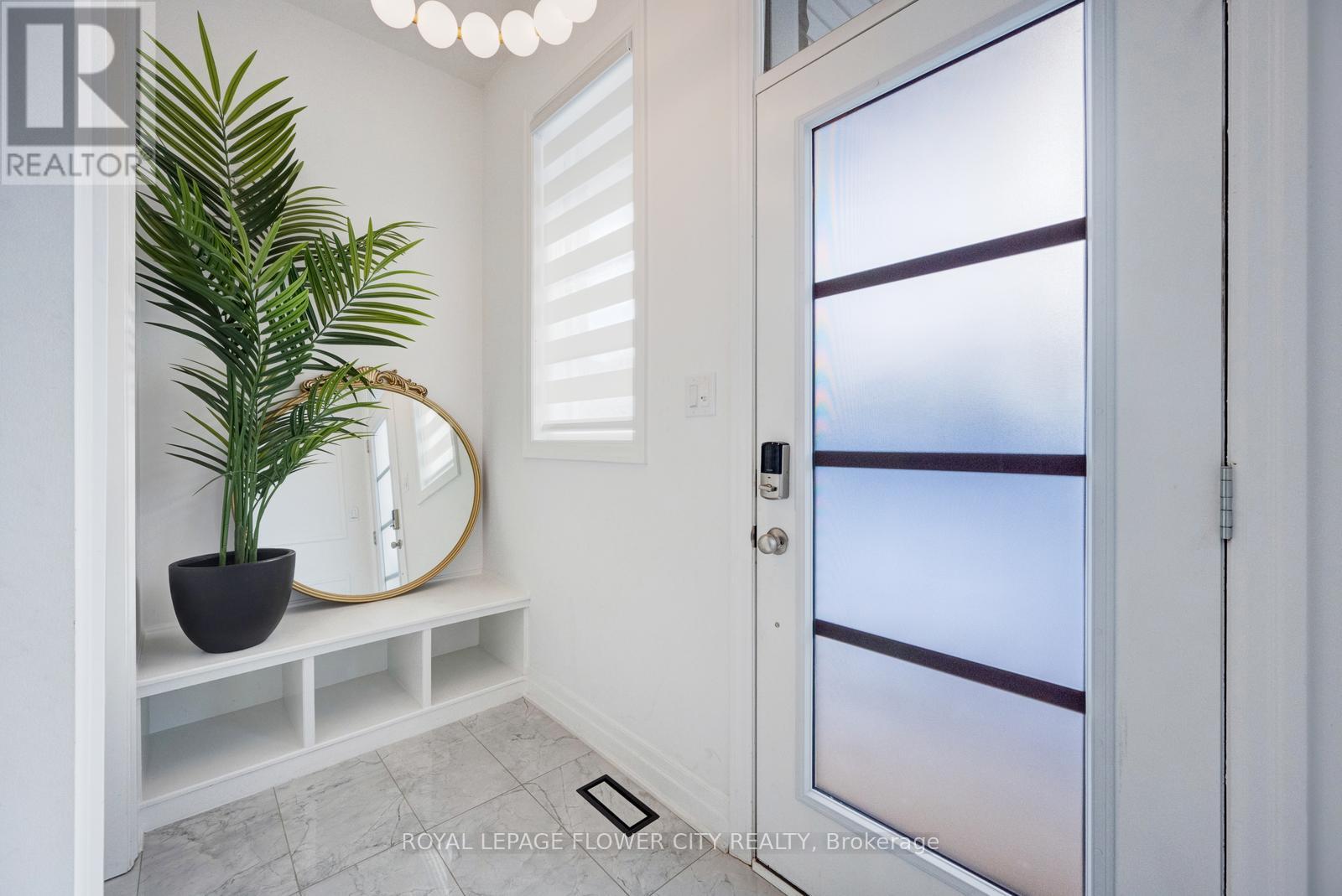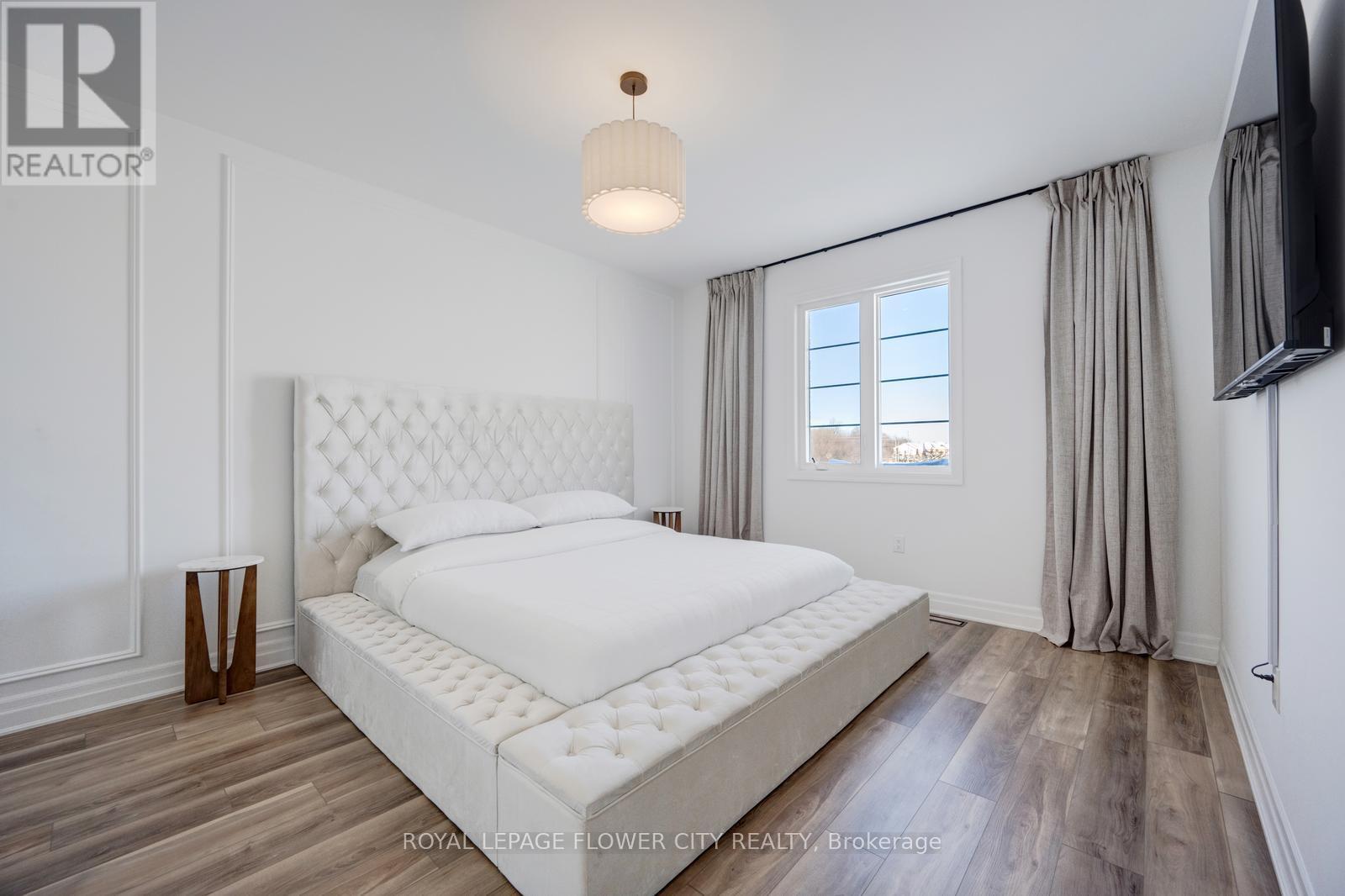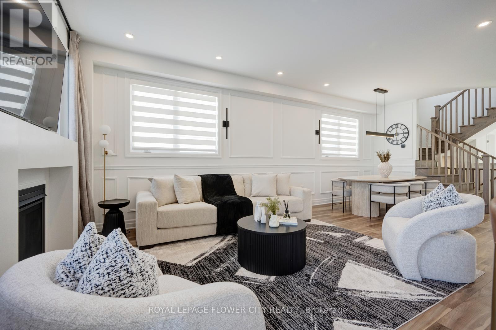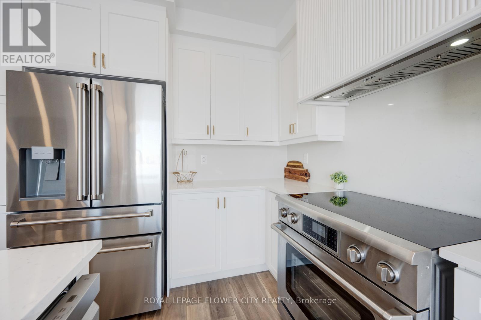 An exceptional opportunity to own a nearly new, freehold 2-storey End unit townhome offering 4 bedrooms and 3 bathrooms in the prestigious, family-oriented Bowes neighbourhood of Milton. Showcasing an elegant stone and stucco exterior, the home welcomes you into a refined foyer finished with porcelain tile flooring bright, open-concept layout. The main level features 9-foot Smooth ceilings, carpet-free flooring on both the main and second levels with premium finishes throughout. Sun filled kitchen features a large Whistler Polished Quartz island, quartz backsplash, high end stainless steel appliances and custom cabinetry. Expansive windows illuminate the living and dining spaces, creating an atmosphere that is both warm and effortlessly upscale ideal for entertaining or quiet evenings at home.A custom oak staircase leads to the upper level, where four spacious bedrooms offer comfort and privacy. The primary suite is a true sanctuary, complete with a walk-in closet and a spa-like ensuite with double vanity, upgraded quartz countertops, and a frameless glass shower. All interior doors have been upgraded for a refined finishes. The convenience of an upper-level laundry room further enhances everyday living. This meticulously maintained home offers a rare combination of modern luxury, thoughtful design, and an exceptional location, making it perfectly suited for discerning buyers seeking comfort, elegance, and long-term value. (id:64974)