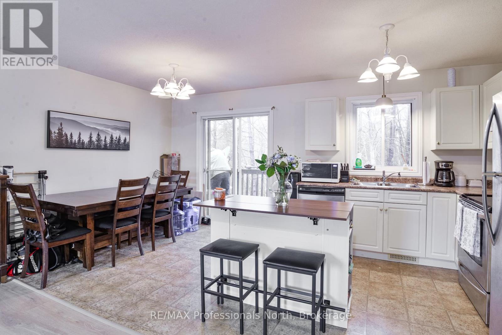 Welcome to low maintenance living in Bracebridge. Conveniently located near all amenities, this semi detached raised bungalow offers an open concept living space on the main level and two spacious bedrooms on the lower level. This home has been well cared for and boasts fresh paint and new livingroom flooring and lower level carpeting in 2025. Features include a walkout from the dining room and main floor laundry. The monthly condo fee offers peace of mind as it takes care of the exterior building maintenance, grounds upkeep and even the winter driveway plowing. This would be a great property for those starting out, downsizing or for investment. Total square footage is 936sq ft. (id:64974)
