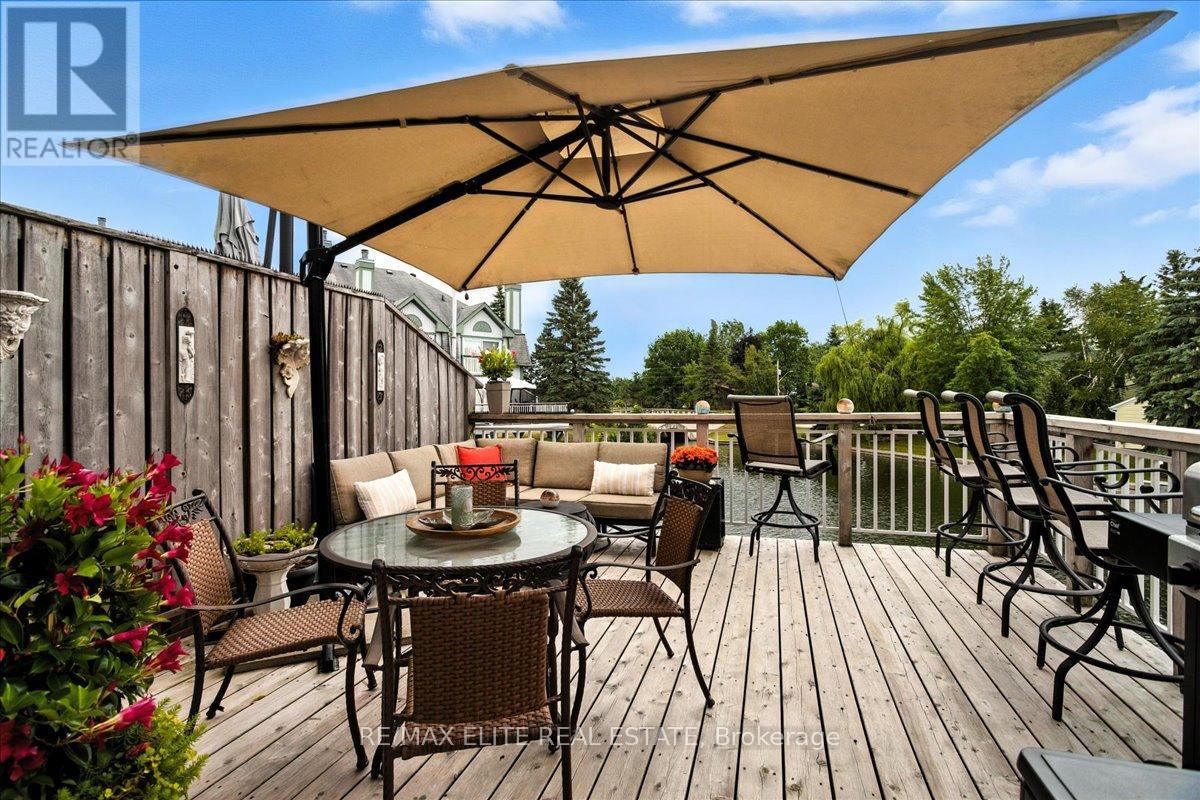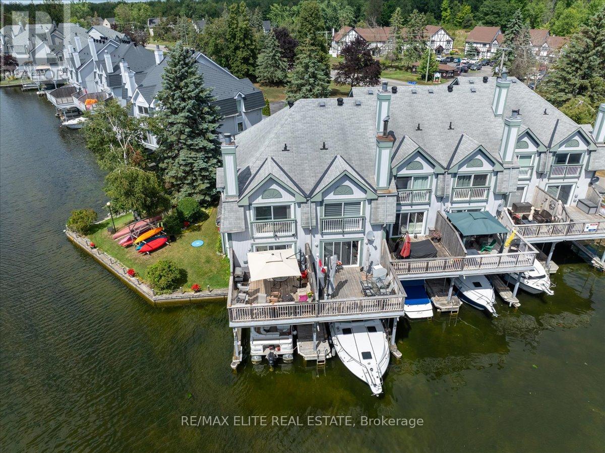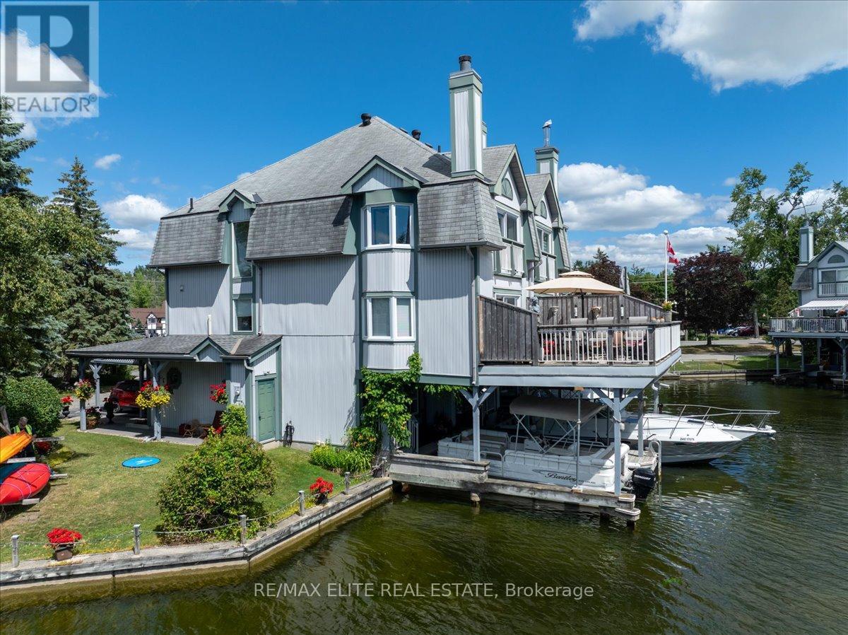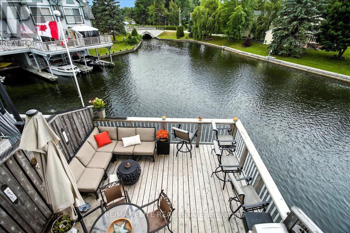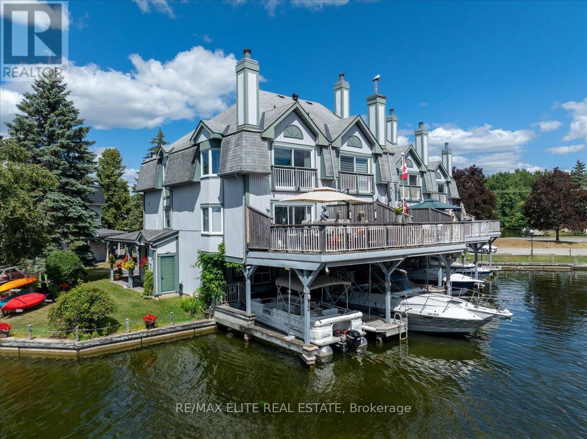 Welcome to one of Lagoon City's most desired townhomes THE ONE. This special end-unit retreat offers unparalleled panoramic views from sunrise to sunset. With full southern exposure and a prized canal-edge position, this exceptional home is filled with natural light, fresh breezes, well-circulated water flow, and an extraordinary waterfront lifestyle. Tucked beside a beautifully maintained side yard and enhanced by its ultra-private setting, this home also offers extra space for watercraft parking on the opposite side of your personal , covered boat slip. A true boaters dream, this townhouse opens directly onto a scenic canalsystem that leads to Lake Simcoe, and from there, to the expansive Trent-Severn Waterway. Inside, you'll find a thoughtful layout across three levels, featuring 3 bedrooms, 4 bathrooms, and a bright, airy bonus room that walks out directly to your dock. The living and dining areas are sunlit and spacious, framed by oversized windows that showcase calming water views and ever-changing skies. Step out onto your large private deck, perfect for entertaining or simply soaking in the peaceful setting. The primary suite is a retreat of its own, with a sun-filled bay window, sliding doors to a Juliet balcony, and sweeping views of a picturesque bridge and the canal below. A walk-in closet leads to a spa-like ensuite, complete with jet tub and bidet for elevated comfort. Notable extras include a private carport, ample storage, and access to all the amenities the community has to offer: marina, tennis and pickleball courts, two sandy beaches, community center, and more, all within walking distance. Less than 25 minutes to Orillia and Casino Rama, and just over an hour from Toronto, this is effortless four-season living with the soul of a getaway and the comfort of home. (id:64974)