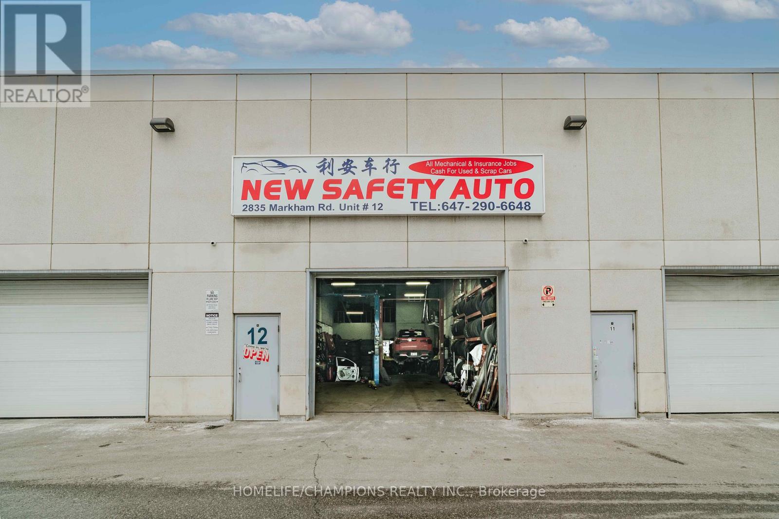 Commercial / Automotive Use: Exceptional opportunity to own a well-established auto mechanic shop location operating in the same unit for the past 8 years. *The business is also available for sale, offering a turnkey opportunity for automotive professionals or investors.* This versatile ~2,500 sq. ft. unit including mezzanine features an impressive 20-ft high ceiling and large open workspace suitable for multiple automotive services. 10 Foot Garage Door. The property is well equipped with 225 Amp electrical service,Springler system, existing HVAC system, and space for up to 4 hoists. The layout includes storage rooms on both the ground floor and second level, two private offices, and 2 washroom with shower, cafeteria area. Located at the high-traffic intersection of Markham Rd & McNicoll Ave, this property offers excellent accessibility and exposure for automotive or light industrial use.Monthly management fee of $695 includes common elements, building insurance, and 5 parking spaces. (id:64974)