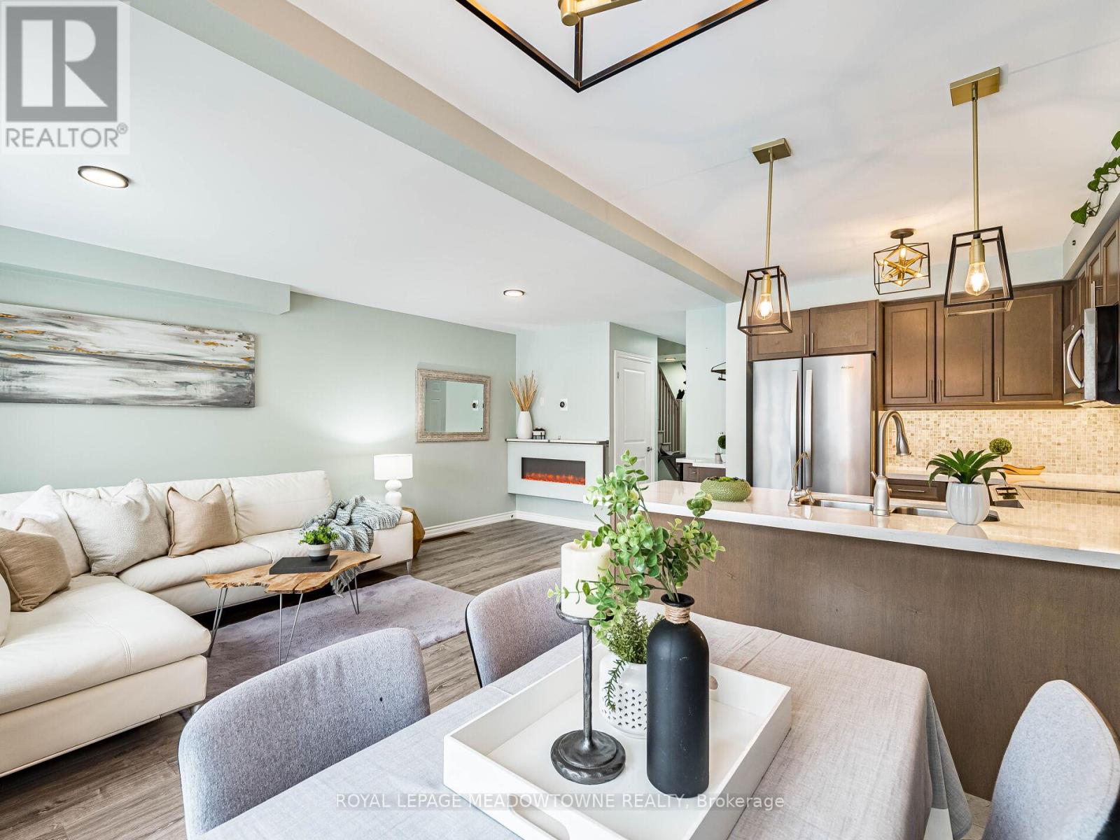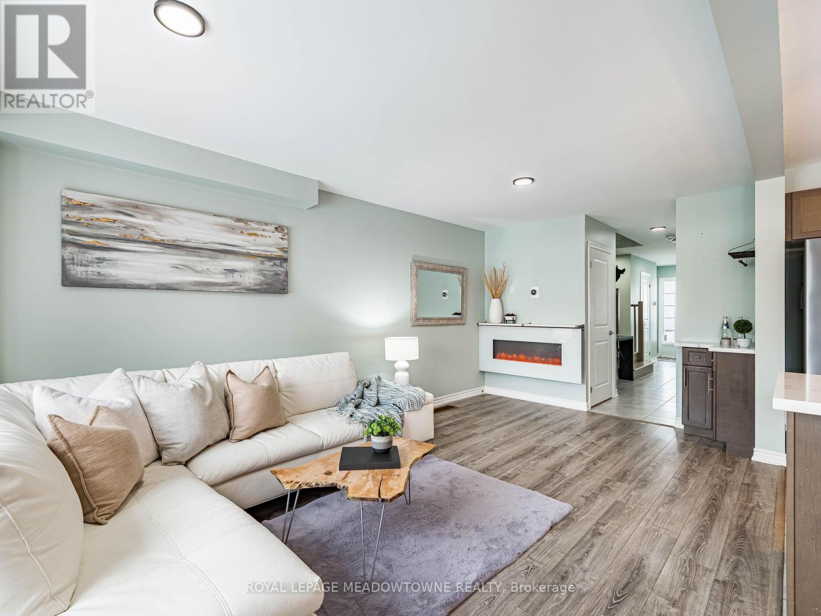 Welcome to this beautifully maintained freehold townhouse in the heart of Orangeville, where modern style meets functional family living in an unbeatable location. With no homes behind, enjoy rare privacy and peaceful backyard views. This bright, open-concept home offers 3 bedrooms and 3 bathrooms designed for comfortable everyday living and effortless entertaining. The main floor features updated light fixtures, a cozy electric fireplace, and a charming, dedicated coffee bar perfect for busy mornings or hosting friends. The stylish kitchen is beautifully appointed with quartz countertops, a sleek backsplash, and stainless-steel appliances. Upstairs, the spacious king-sized primary retreat includes a walk-in closet and a private 3-piece ensuite with a walk-in shower. Two additional generously sized bedrooms and a full bath provide ample space for family, guests, or a home office. Additional highlights include a solid wood staircase, convenient main-floor powder room, freshly painted interior, HRV system, rough-in for central vacuum, and a single-car garage with door opener. The unfinished basement with a bathroom rough-in offers exciting potential to create the space you've always envisioned. Rental hot water tank. Step outside to a low-maintenance, manicured backyard with no rear neighbours ideal for relaxing evenings, entertaining, or safe outdoor play. Located just minutes from the shops, restaurants, cafés, and year-round events of historic downtown Broadway, as well as the trails and natural beauty of Island Lake Conservation Area, this move-in-ready home perfectly balances small-town charm with modern convenience. An exceptional opportunity for first-time buyers, growing families, or investors looking to be part of one of Orangeville's most welcoming communities. (id:64974)