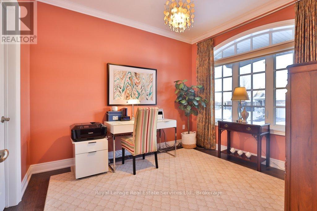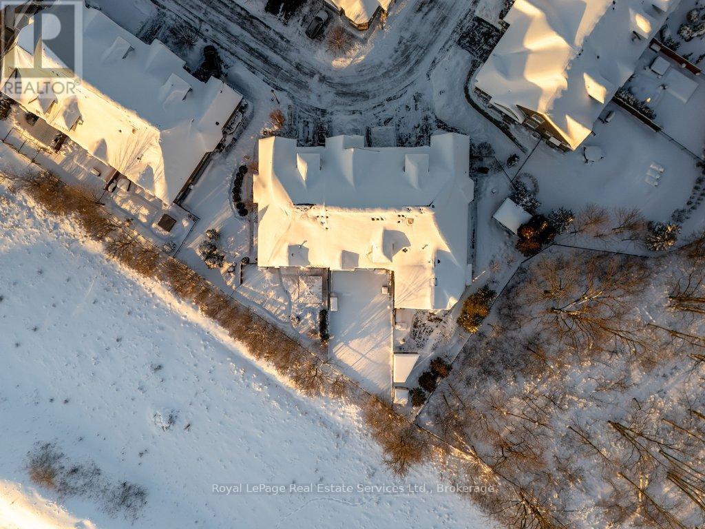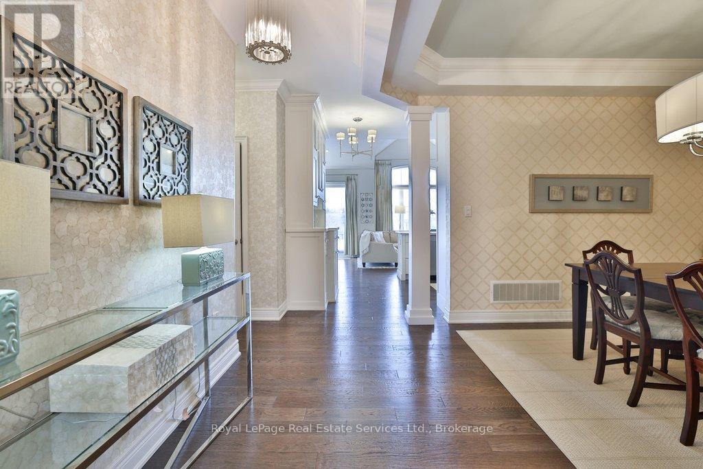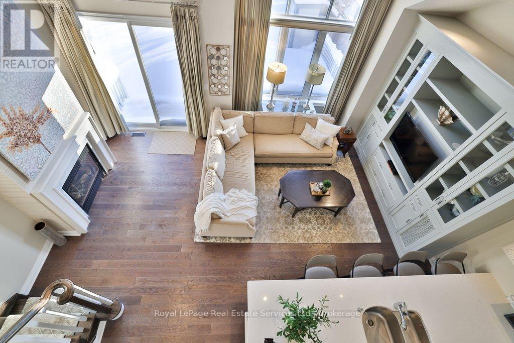 Welcome to The Manors of Bronte Creek - an exclusive bungaloft townhouse offering luxury, privacy and timeless elegance. Nestled in a secluded enclave of just 32 freehold homes and backing onto protected Bronte Creek greenspace, this 2,500+ sq ft home with a finished lower level combines refined living with thoughtful design and modern comfort. The main level features hard-scraped floors, a living room with soaring vaulted ceilings, formal dining room, spacious kitchen perfect for entertaining, primary suite with 5-piece ensuite, second bedroom with 3-piece semi-ensuite, main-floor laundry and inside-entry double garage. The upper-level loft includes hard-scraped floors, a large family room overlooking the main floor, third bedroom and 4-piece bath, ideal for guests or a private retreat. Contemporary light fixtures throughout and custom built-ins enhance the home's elegant and modern aesthetic. The finished lower level offers an additional bedroom with oversized window, 4-piece bath, large recreation room and ample storage, providing versatile space for families, home offices or guest accommodations. The Manors offers an exceptional lifestyle with easy access to hiking and bike trails, shopping, golf courses Bronte Creek Provincial Park, Bronte GO Station, Oakville Trafalgar Hospital, QEW and Hwy 407. (id:64974)