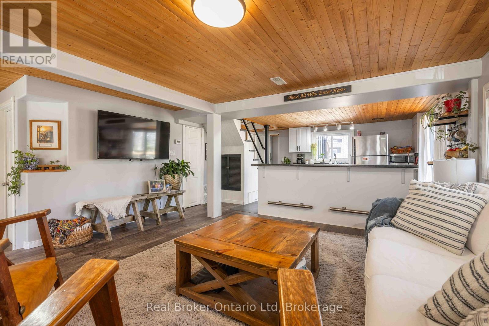 Fully winterized, beautifully upgraded family home set in a quiet, nature-filled pocket of South Bruce Peninsula. Welcome to 12 7th Avenue, where modern updates meet a relaxed, easygoing lifestyle. This three-bedroom home sits on a treed lot, offering privacy, peaceful surroundings, and a true connection to nature in every season-all within a warm, family-friendly neighbourhood. Thoughtfully improved throughout, the home features new flooring, a fully renovated bathroom, wrap-around decks, designed walkways, fresh exterior stain, upgraded septic, bunkie equipped with hydro, and a durable metal roof, providing both comfort and long-term value. Whether you're looking for a full-time residence or a retreat from the pace of everyday life, this property truly has it all! Book your private or virtual showing today! (id:64974)