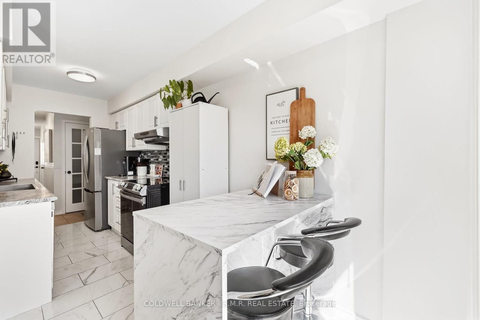 Welcome to this beautifully maintained and thoughtfully updated townhome, ideally suited for first-time buyers looking to step into the market with confidence. Nestled in a sought-after North Oshawa neighbourhood, this home offers the perfect blend of comfort, style, and convenience-just minutes to the 407, Costco, shopping, restaurants, movie theatre, transit, Durham College, parks, and schools. Proudly owned and meticulously cared for by the same owner for over 22 years, this home reflects true pride of ownership throughout. The interior features a bright, airy colour palette that enhances the natural light flowing through the space, creating a warm and inviting atmosphere from the moment you walk in. The functional layout is both practical and comfortable, with very little left to do-simply move in and enjoy. The updated kitchen is a standout, complete with newer stainless steel appliances, a large oversized sink with an industrial-style faucet, and a stylish backsplash that ties the space together beautifully. Laminate flooring runs throughout, complemented by a striking hardwood staircase that adds character and charm. Upstairs, you'll find three generously sized bedrooms along with a beautifully renovated main bathroom, finished in a fresh, contemporary palette. The main floor powder room has also been tastefully updated, and modern light fixtures throughout the home add a polished, cohesive feel. The finished basement provides valuable additional living space-perfect for a family room, home office, or recreation area. Step outside to a charming, fully fenced backyard that offers a surprising sense of openness and privacy. The patio area is bathed in lovely morning sunlight, making it the perfect spot to enjoy your coffee or entertain guests. There is ample space for a comfortable seating area, as well as a natural gas line for a barbeque-ideal for easy outdoor living. Check out the multimedia link for floorplans and video walkthrough! (id:64974)
