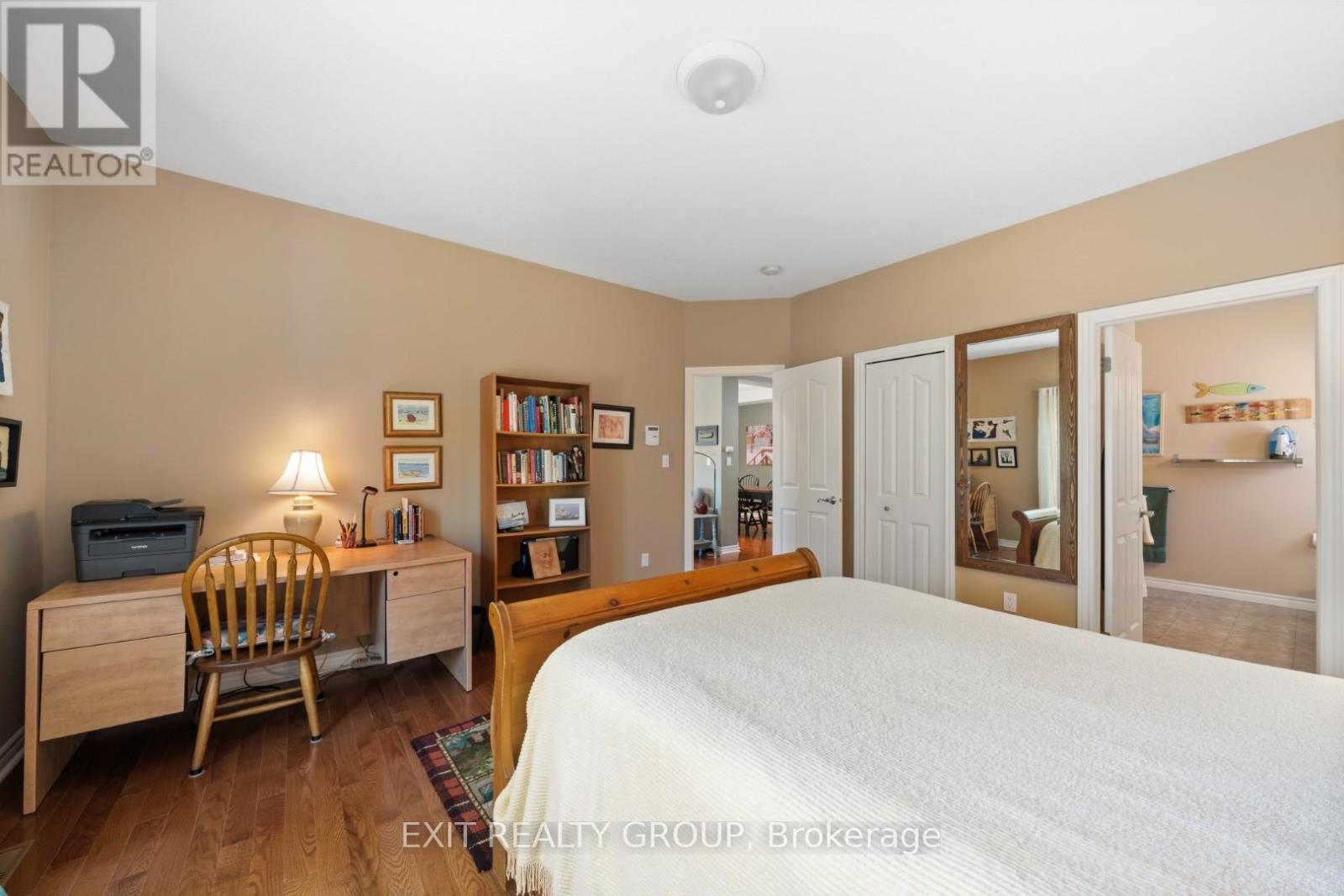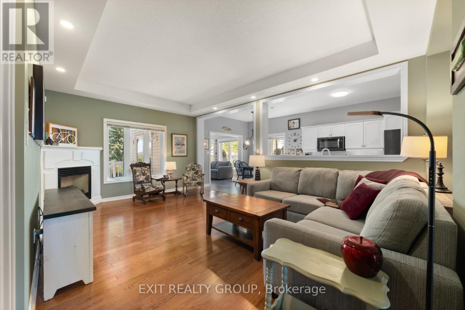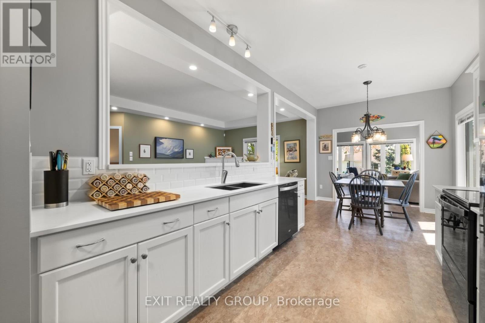EXIT TO THE COUNTY! WELLINGTON ON THE LAKE ADULT LIFESTYLE COMMUNITY. FREEHOLD. Thoughtfully designed, well maintained, bright 1950 sq ft turnkey home. Featuring bonus 4-season sunroom with private feeling back yard. Vaulted and 9' trayed ceiling, hardwood floors, quartz countertop, beautiful finished spacious 2-bedroom 3-bathroom bungalow in the adult lifestyle community of Wellington on the Lake. This home provides open-concept main floor living with plenty of space for family and friends to stay and visit. The front entrance has a grand vaulted ceiling leading you into your formal living room/dining room space with tray ceilings, hardwood floors and tons of natural light. The large eat-in kitchen leads into the 4-season bright sunroom, your laundry is conveniently located on the main level with ease of access to the garage so you can bring your groceries directly in through your double car garage. Your large bright primary bedroom is just off the main living space, with a huge walk-in closet and 4-piece ensuite. Engage in the many activities that Wellington on the Lake offers; inground heated pool, tennis/pickle ball, lawn bowling, shuffleboard, outdoor and indoor fitness equipment. Lots of clubs to join. Within easy walking distance to the Wellington Golf Course and the Millenium Trail. The village of Wellington offers everything you need. The County is famous for our award-winning Wineries, Breweries, Eateries, Beaches and Spas. Come EXIT to the County! (id:64974)