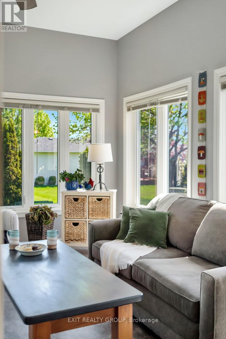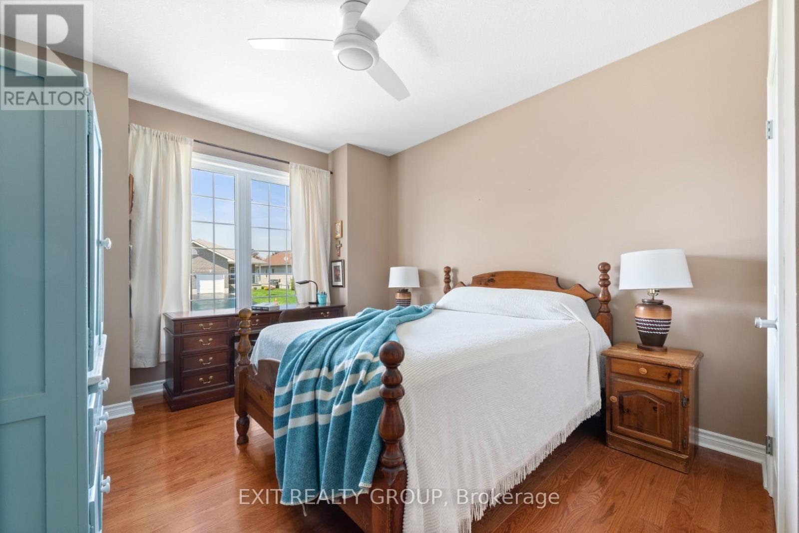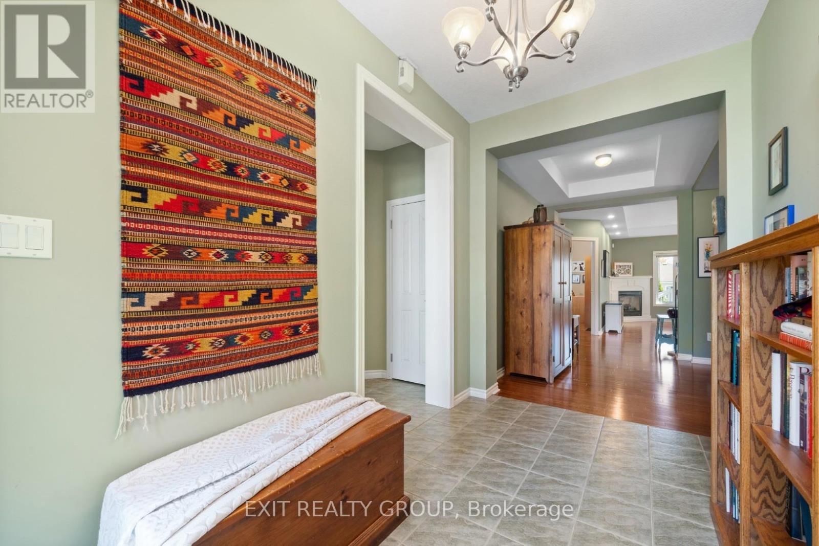 EXIT TO THE COUNTY! WELLINGTON ON THE LAKE ADULT LIFESTYLE COMMUNITY. FREEHOLD. Thoughtfully designed, well maintained, bright 1950 sq ft turnkey home. Featuring bonus 4-season sunroom with private feeling back yard. Vaulted and 9' trayed ceiling, hardwood floors, quartz countertop, beautiful finished spacious 2-bedroom 3-bathroom bungalow in the adult lifestyle community of Wellington on the Lake. This home provides open-concept main floor living with plenty of space for family and friends to stay and visit. The front entrance has a grand vaulted ceiling leading you into your formal living room/dining room space with tray ceilings, hardwood floors and tons of natural light. The large eat-in kitchen leads into the 4-season bright sunroom, your laundry is conveniently located on the main level with ease of access to the garage so you can bring your groceries directly in through your double car garage. Your large bright primary bedroom is just off the main living space, with a huge walk-in closet and 4-piece ensuite. Engage in the many activities that Wellington on the Lake offers; inground heated pool, tennis/pickle ball, lawn bowling, shuffleboard, outdoor and indoor fitness equipment. Lots of clubs to join. Within easy walking distance to the Wellington Golf Course and the Millenium Trail. The village of Wellington offers everything you need. The County is famous for our award-winning Wineries, Breweries, Eateries, Beaches and Spas. Come EXIT to the County! (id:64974)
