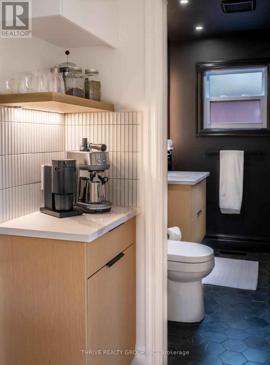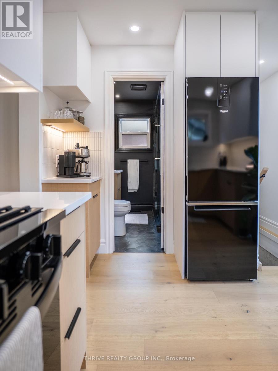 Welcome to 12 Arthur St, a beautifully reimagined home that blends thoughtful design with elevated modern finishes in a central location. Perfect for downsizers or young professionals who want the freedom of a detached home without the constraints of condo living, this property offers style, function, and flexibility in equal measure.The main floor features a stunning primary bedroom retreat with convenient access to a walk in closet complete with integrated laundry, making everyday living effortless. The spa inspired bathroom feels like a private resort, showcasing dramatic tile work, sleek fixtures, and a refined modern aesthetic designed to impress.At the heart of the home is a striking kitchen with contemporary cabinetry, quartz counters, and premium integrated features including a panel ready dishwasher, hidden microwave, and magic corner storage system that maximizes both function and clean design. Every detail has been carefully considered to create a seamless and elevated living experience. Wide plank flooring, curated lighting, and clean architectural lines carry throughout the home.Upstairs, the loft offers a versatile space currently used as a home office but easily adaptable as a bedroom, studio, or creative retreat. The basement provides excellent storage, keeping your main living areas uncluttered and organized.The exterior has been fully redone, enhancing both curb appeal and long term durability. Outside, enjoy a private backyard with mature trees and space to relax, entertain, or unwind.This is a rare opportunity to own a centrally located detached home with sleek design, efficient layout, and elevated finishes, perfect for those seeking low maintenance living without compromise. (id:64974)