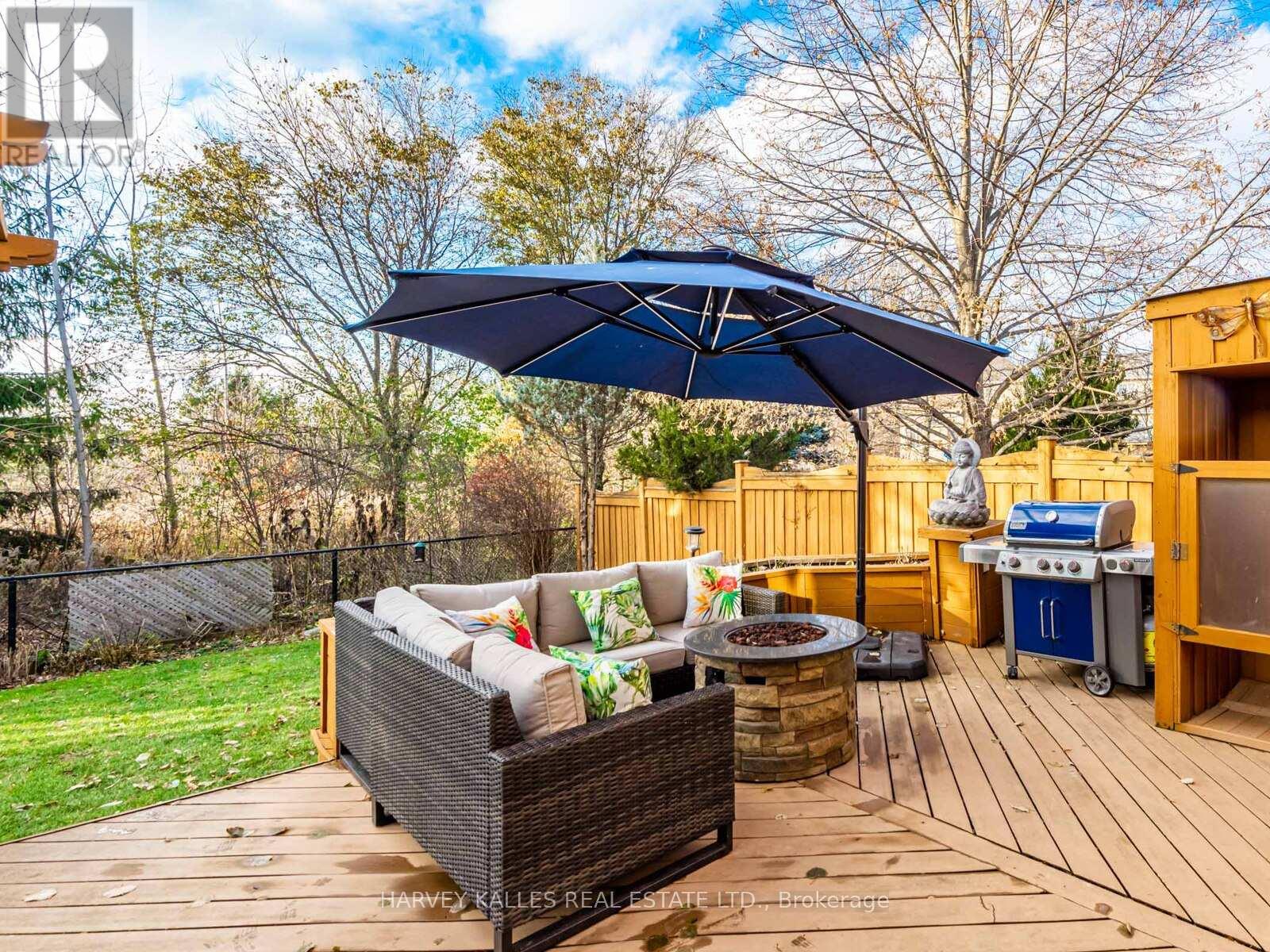 Meticulously maintained and updated home located in the heart of Oak Ridges, backing onto protected greenspace with breathtaking views and direct access to walking trails. This exceptional property features a gourmet kitchen and breakfast area with a walk-out to a spectacular backyard retreat, complete with an oversized deck, shaded seating area, hot tub, and outdoor shower-perfect for entertaining or relaxing in total privacy. The beautifully crafted deck was thoughtfully designed and built by Paul LaFrance, a respected Canadian outdoor design expert. The sun-filled, open-concept family room offers a gas fireplace and desirable western exposure, overlooking the serene, park-like backyard setting. A main floor office with French door entry and coffered ceiling provides flexible living space and can easily be converted into a formal dining room. The upper level features four generously sized bedrooms. The primary bedroom retreat boasts double-door entry, a spa-inspired 5-piece ensuite, and a walk-in closet. The second bedroom functions as an ideal guest suite with its own 3-piece ensuite and walk-in closet. The finished lower level offers a spacious open-concept recreation room with exercise area, built-in shelving, a separate games room, and a 3-piece washroom-plus the potential for a fifth bedroom. Additional highlights include hardwood flooring on the main level, custom built-ins in upper-level closets, wrought-iron staircase pickets, ample storage, a cold cellar, and exceptional functionality throughout. Don't miss this opportunity to live in this sought-after neighbourhood close to shopping, transit, and within walking distance to top schools and parks. (id:64974)