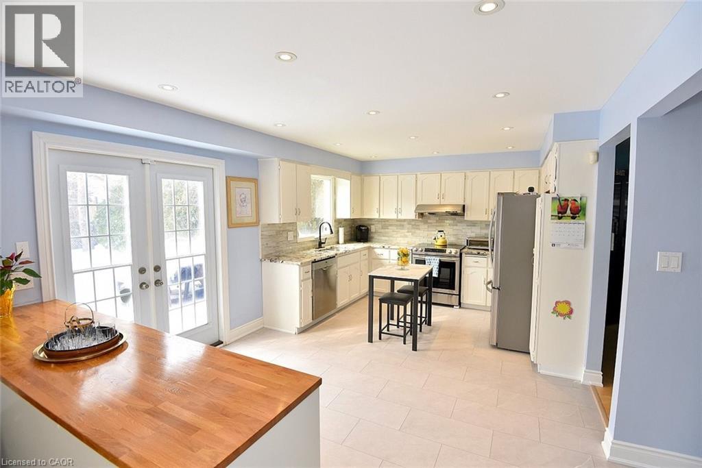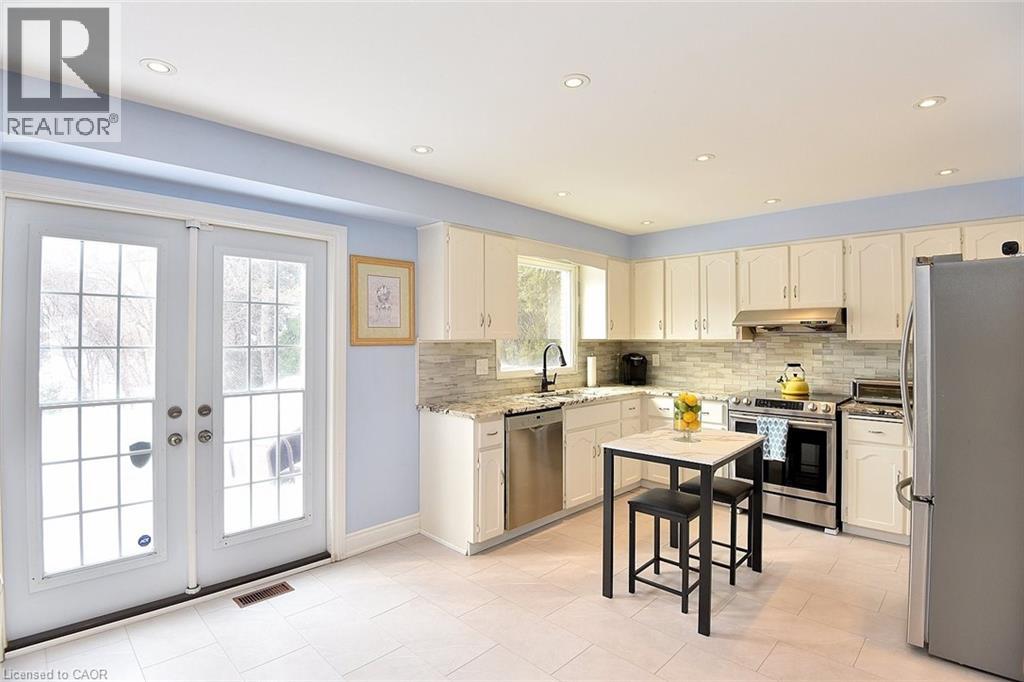 LOCATION, LOCATION, LOCATION! Secluded quiet area near the ESCARPMENT! Easy access to Highway yet very private! Well cared for home. Grade Level Family Room with Brick Gas Fireplace and patio slider doors that allow you to view the many trees on the escarpment! Large bright kitchen with access to a cozy outdoor patio area for easy summer BBQ's. Lots of Hardwood flooring for your allergy free living as well as easy upkeep! California Shutters Throughout!! Park your car in the Spacious garage with interior access into the home, which leads you into a Convenient main floor laundry room and powder room and a door that provides access to the side and backyard! HARDWOOD STAIRS complement this super family home that take you upstairs to 3 bedrooms and 2 full bathrooms! The Primary Bedroom is huge and offers its own 3 PC Ensuite. Two Double closets for all your clothes. The Lower Level allows the freedom of future rental, teenage retreat or inlaw potential as it includes a Living Room, Kitchenette, a 4th Bedroom and 4 PC Bathroom. There is an unfinished area that could lend itself for use as a Hobby Room, another bedroom, games room or storage! And there is a spacious cold cellar for your WINE collection! UPGRADE from your CONDO, pay no fees and at this price you can afford to!! HURRY Don't miss this one and this FANTASTIC PRICE in a most sought after area with handy access to schools, parks, shopping and commuting for work!! (id:64974)