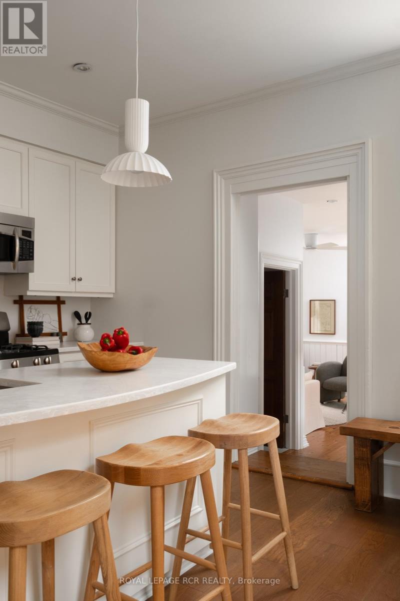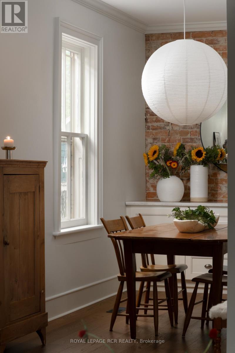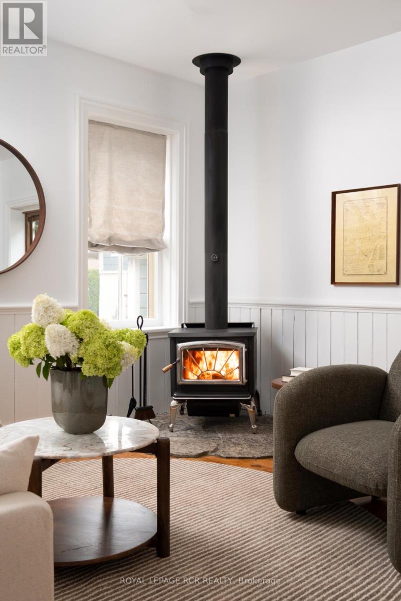 12 Bythia. A home to fall for, where Victorian character meets modern comfort in a home that exudes the warm, lived-in charm of a Nancy Meyers classic. Recently renovated and upgraded, this home gracefully balances its timeless appeal and charm with the conveniences of today. The beautiful front entryway, complete with a closet and bespoke details, leads you to interconnected living spaces featuring elegant crown moulding and built-in storage. The kitchen is a beautifully updated space that feels both stylish and functional, anchored by a spacious island and equipped with sleek cabinetry, stainless steel appliances, and gas stove. It's a kitchen designed for gathering and creativity. With three bedrooms and three bathrooms, the home provides ample space and privacy. The main floor includes a convenient laundry/powder room and a bonus cozy family room with a wood stove and walkout to the backyard. Upstairs, the sleeping quarters offer a luxurious and quiet retreat. The primary suite is a true sanctuary, featuring a polished 5-piece ensuite bathroom, with a lovely clawfoot soaker tub and spa-worthy shower. Two additional peaceful bedrooms and a gorgeous fully updated 3-piece bathroom ensure comfort for family and guests alike. Throughout the second floor, you'll find custom bedroom closets and additional storage that have been thoughtfully added. Outside, the backyard is an intimate retreat designed for both entertaining and quiet morning coffee. Lush gardens, mature trees, and a spacious patio create an oasis where moments are meant to be savoured. The grounds also feature a charming garden shed and a small workshop, offering the perfect spaces for creative pursuits. This is a home rich with history, updated for today's lifestyle, and ready for its next beautiful chapter. (id:64974)