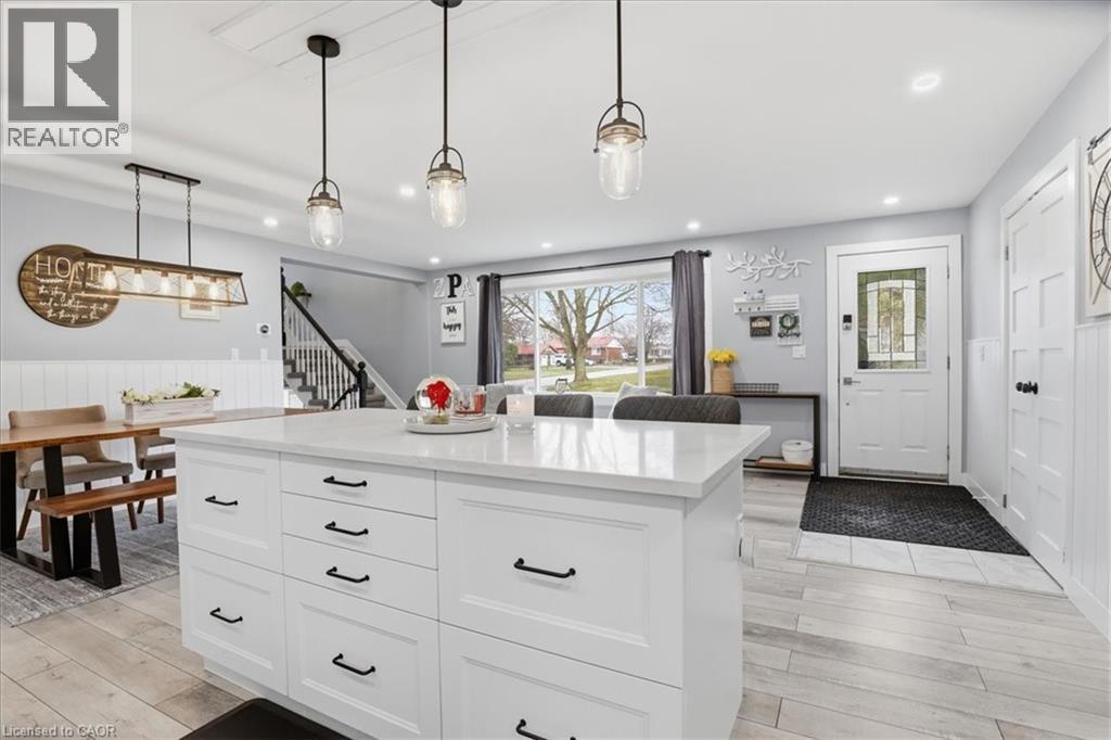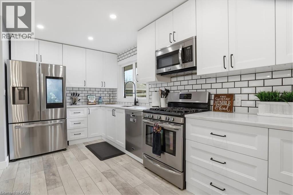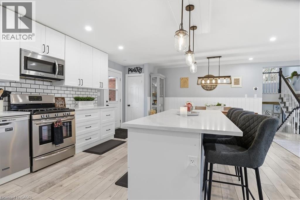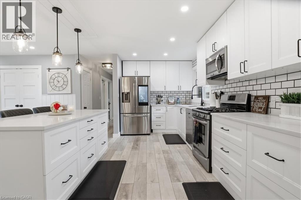 Welcome to 12 Dean Crescent, in the quaint town of Ingersoll, known for its charming and historic atmosphere. This spacious 4-level sidesplit offers flexibility and is sure to appeal to a wide range of buyers. Featuring 4 bedrooms, including a private upper-level primary retreat that feels like its own getaway, this home delivers both comfort and functionality. The recently renovated main floor showcases quality laminate flooring and an open-concept layout connecting the kitchen, living, and dining areas—perfect for everyday living and entertaining. The bright white kitchen is thoughtfully designed with subway tile backsplash, quartz countertops, soft-close cabinetry, a generous pantry, and a breakfast bar island. A full suite of appliances is included, highlighted by a Samsung smart fridge, Frigidaire gas stove, over-the-range microwave, and Maytag dishwasher. Down the hall, you’ll find three well-sized bedrooms, ideal for children, guests, or a home office, along with an updated 4-piece bathroom featuring a soaker tub, subway tile surround, and built-in shelf for added convenience. Upstairs, the primary suite offers a peaceful escape complete with a walk-in closet, 4-piece ensuite, and a cozy reading nook just outside the bedroom. The lower level features a fully finished family room with a 2-piece bathroom, built-in shelving for media and décor, and an electric fireplace that creates a warm and inviting space to unwind. An additional unfinished level provides excellent potential for a home gym or recreation area, and includes a pool table with accessories. Step outside from the main level to a fully fenced backyard, complete with a natural gas BBQ line, storage shed, and electrical rough-in for a future hot tub. The oversized double car garage is a standout feature. Heated and ideal for a workshop, hobby space, or storing recreational vehicles. If you’ve been searching for a move-in ready home with space, updates, this is an opportunity you won’t want to miss. (id:64974)