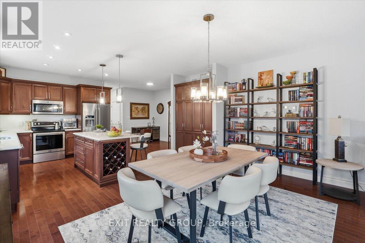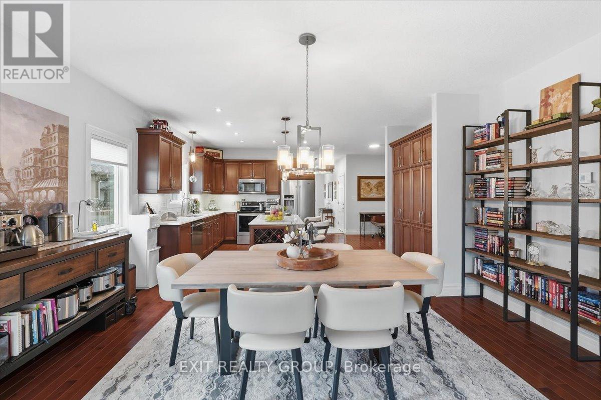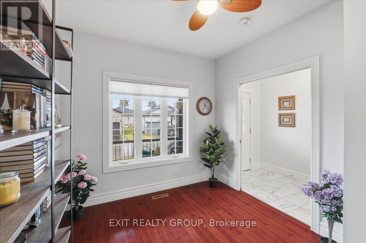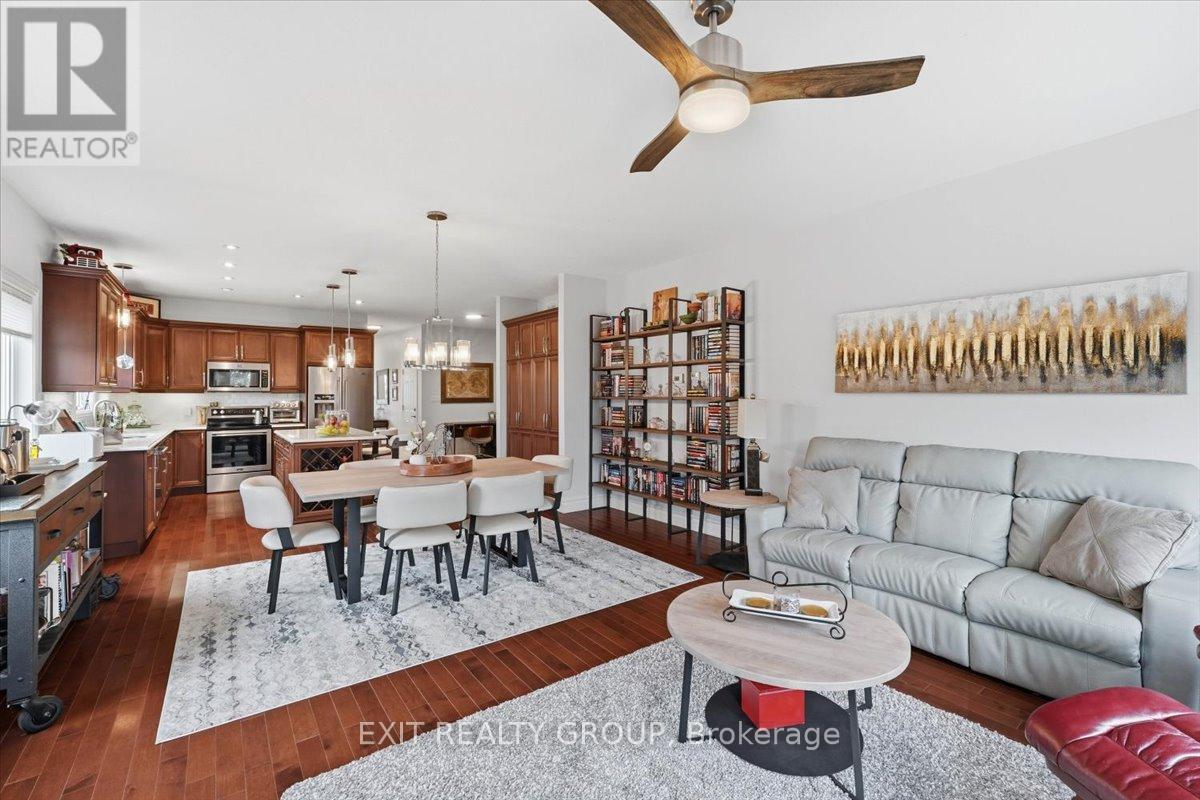 Stunning 4-bed, 3-bath bungalow with an attached 2-car garage in the highly desirable community of Wellington on the Lake. The main level of this meticulously maintained home hosts a bright and inviting foyer that leads into a functional kitchen, complete with a convenient centre island, ample cabinetry, and a specialized pull-out pantry designed for maximum organization and accessibility. The living room, anchored by a cozy gas fireplace and bathed in natural light, serves as the heart of the home, while the main floor laundry adds a layer of essential everyday convenience. This level also features two well-appointed bedrooms, including a primary suite that serves as a true retreat, boasting a private walk-in closet and a luxurious 4-pc ensuite. An additional 4-pc bathroom services the rest of the main floor, ensuring comfort for guests and residents alike. The living space is significantly expanded in the fully finished lower level, a versatile area designed for both relaxation and productivity. This level offers two more spacious bedrooms and a family room, also featuring a warm gas fireplace that creates an inviting atmosphere for movie nights or quiet evenings. A dedicated office or den provides the perfect footprint for remote work or a hobby room, all supported by a modern 3-pc bathroom. While the backyard boasts a large deck perfect for entertaining. Wellington on the Lake offers an unparalleled adult lifestyle experience in the heart of Prince Edward County. Enjoy exclusive access to a vibrant community centre featuring a heated inground pool, tennis and pickleball court, and a woodshop. The neighborhood is perfectly positioned to downtown Wellington, where you can explore fine dining, local boutiques, a golf course and the scenic shores of Lake Ontario. With the Millennium Trail just steps away and the region's renowned wineries and Sandbanks Provincial Park only a short drive, this property offers a perfect blend of community, comfort, and coastal charm. (id:64974)
