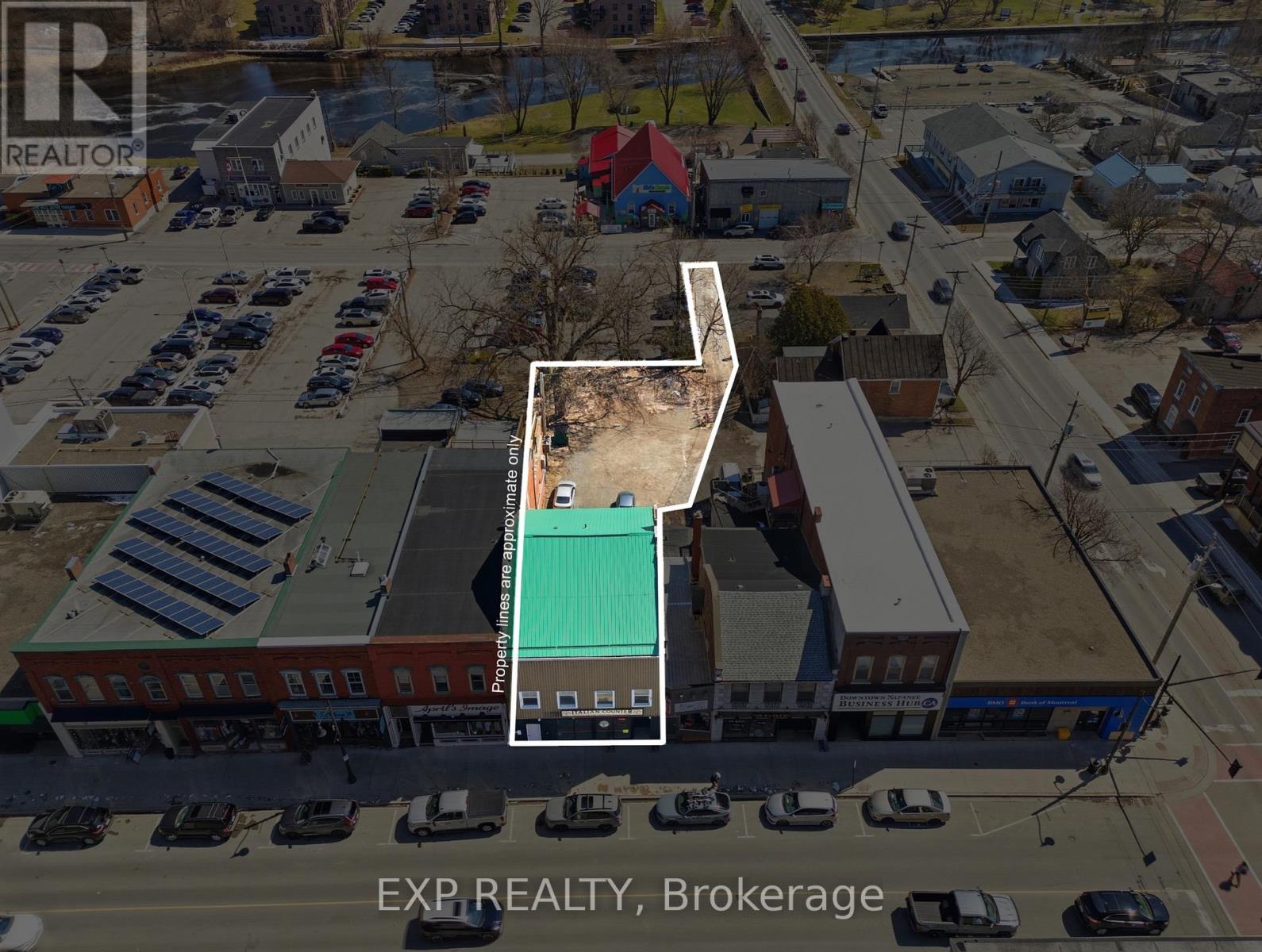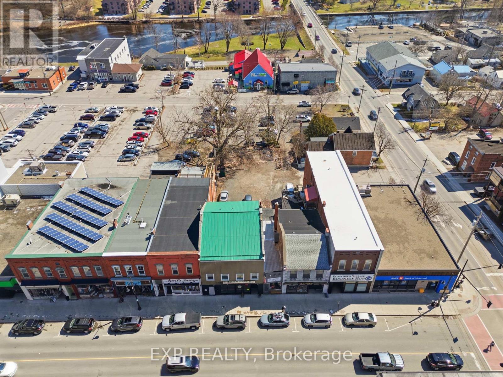 4,200+ sqft rare downtown Napanee mixed-use three-storey building positioned in the absolute core of a booming, fast-growing community with strong upside and future development potential. This prime downtown asset features the front half of the main floor leased to a successful and established Italian food business, while the rear offers two renovated bachelor units. The second floor includes a massive executive-style one-bedroom apartment, and the third floor is unfinished and ready to be converted into 2+ additional residential units for maximum value add. The property sits on an oversized downtown lot with an exceptional amount of parking and dual frontage on both Dundas St E and Mills St E, providing unmatched access and long-term flexibility for redevelopment or intensification-something almost unheard of in a core downtown setting. This is a rare opportunity to acquire an income-producing asset with significant upside through expansion, repositioning, or long-term hold in one of the area's most active growth corridors. (id:64974)
