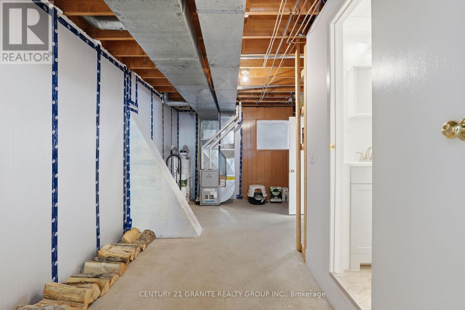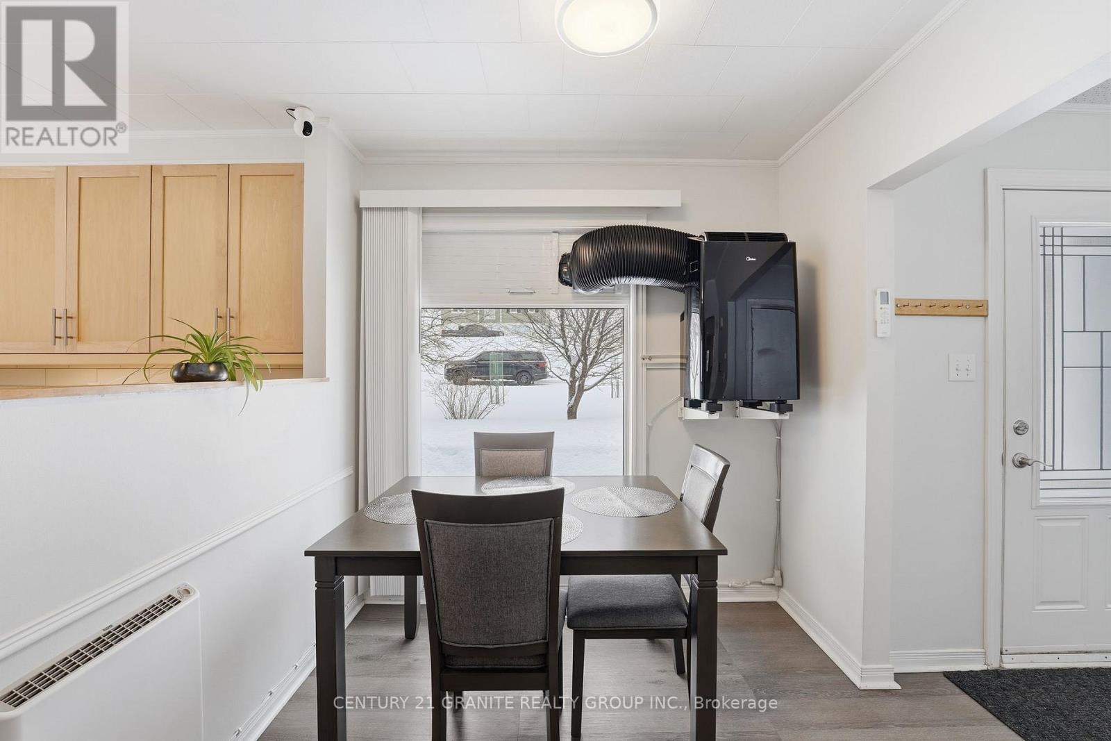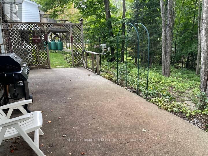 This clean, well-kept brick bungalow with a full walk-out basement and detached double garage is the perfect fit for families, retirees, or anyone looking for a comfortable home in a quiet neighbourhood. Located on a dead-end street in a peaceful area, you'll enjoy privacy while still being within walking distance to downtown Bancroft. The main level offers a bright and functional layout featuring an updated kitchen, living room with a huge window, two bedrooms, master suite complete with a 2 pc ensuite and another full bathroom, along with updated flooring. Downstairs, the walk-out basement provides additional living space with a cozy family room complete with a certified wood-stove, making it a great place to relax, work from home, or gather with family. There's also plenty of storage and potential in the unfinished laundry area which could double your downstairs living space, complete with a 2 pc powder room. Outside, the landscaped 0.85 acre lot with sprinkler system has been lovingly maintained with perennial gardens, five apple trees, lilac bushes, a great vegetable garden. The private backyard is a peaceful retreat filled with birds, butterflies, heavily forested and many deer, creating a truly relaxing outdoor space. Additional features include a new roof (2024), Concrete driveway, walkways and patios, high-speed internet, forced air propane furnace with high efficiency electric wall unit backup and municipal garbage and recycling pickup for added convenience. Outdoor enthusiasts will love that the local trail system and the York River are just steps away, offering easy access to year-round recreation right from your doorstep. Quality homes like this are hard to find-this one is a truly special place to call home. Book your showing today. (id:64974)