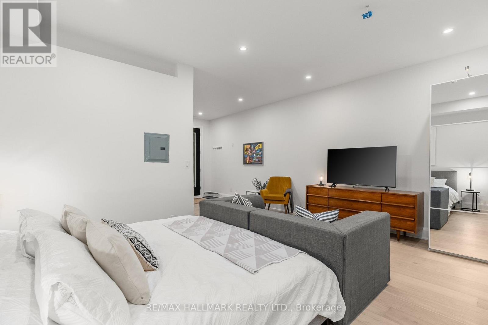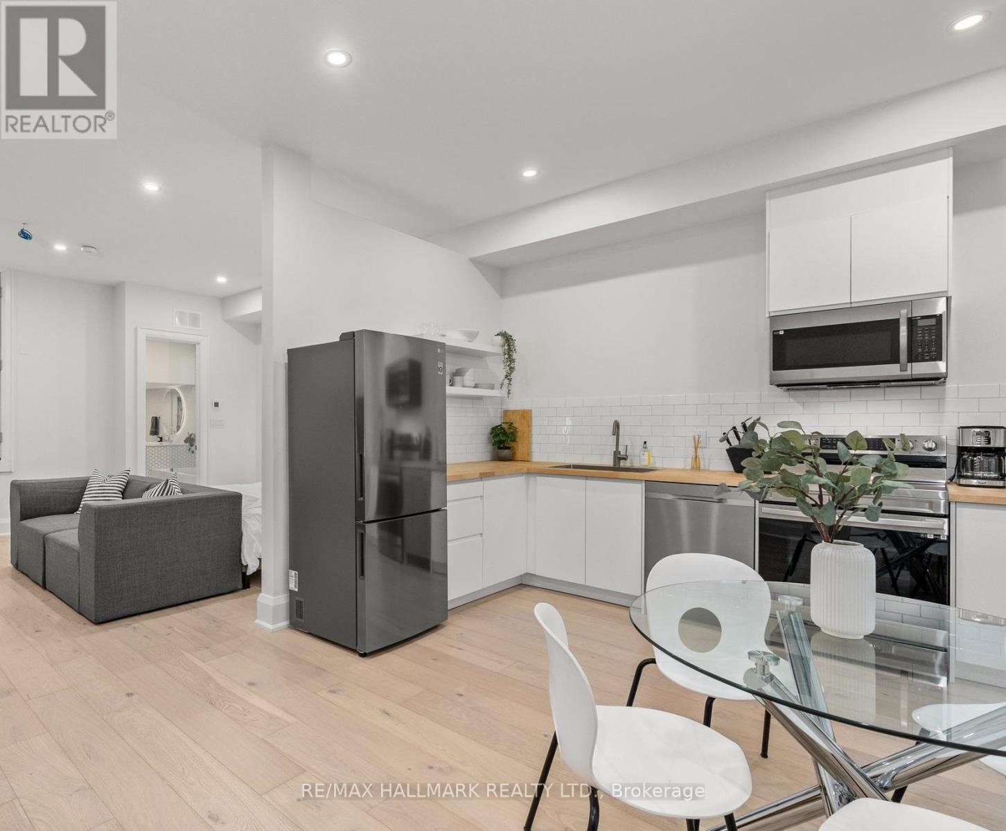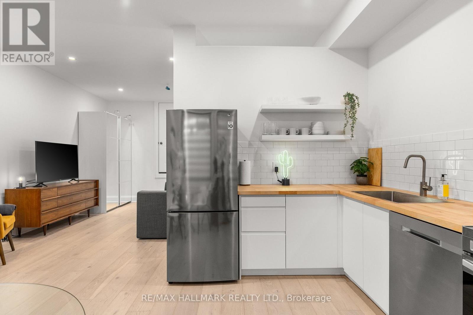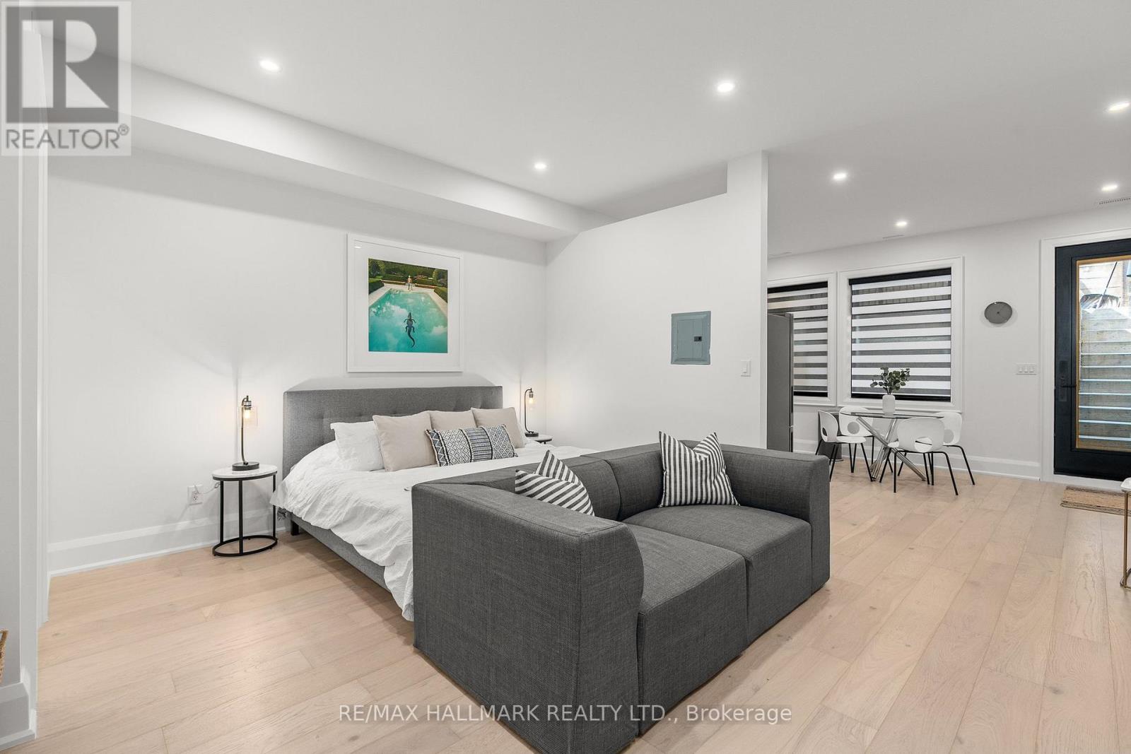 Newer fully furnished loft style apartment in perfect condition with large outdoor space. Includes everything! - electricity, heat, water and internet with TV package. Available for 1 year lease or shorter term options to be negotiated. Just over 700 sq ft. Private entrance. Soaring 10.5ft ceilings. Heated wide plank white oak floors throughout. Modern kitchen with stainless steel appliances. Large open concept bedroom with king size bed. Spa like bathroom with rain shower head, wand and deep soaker tub. Front loading washer & dryer exclusively for this suite. Comes with all furnishings, sheets, towels, pots, pans, plates, coffee maker, just like an Air Bnb. 55" television. Walk out to large terrace that gets decent natural light. Perfect for those coming to Toronto for work, renovating their home or flying the coup lol. Make sure to check out the virtual tour link! **EXTRAS** Permit parking available on street through City of Toronto. (id:64974)