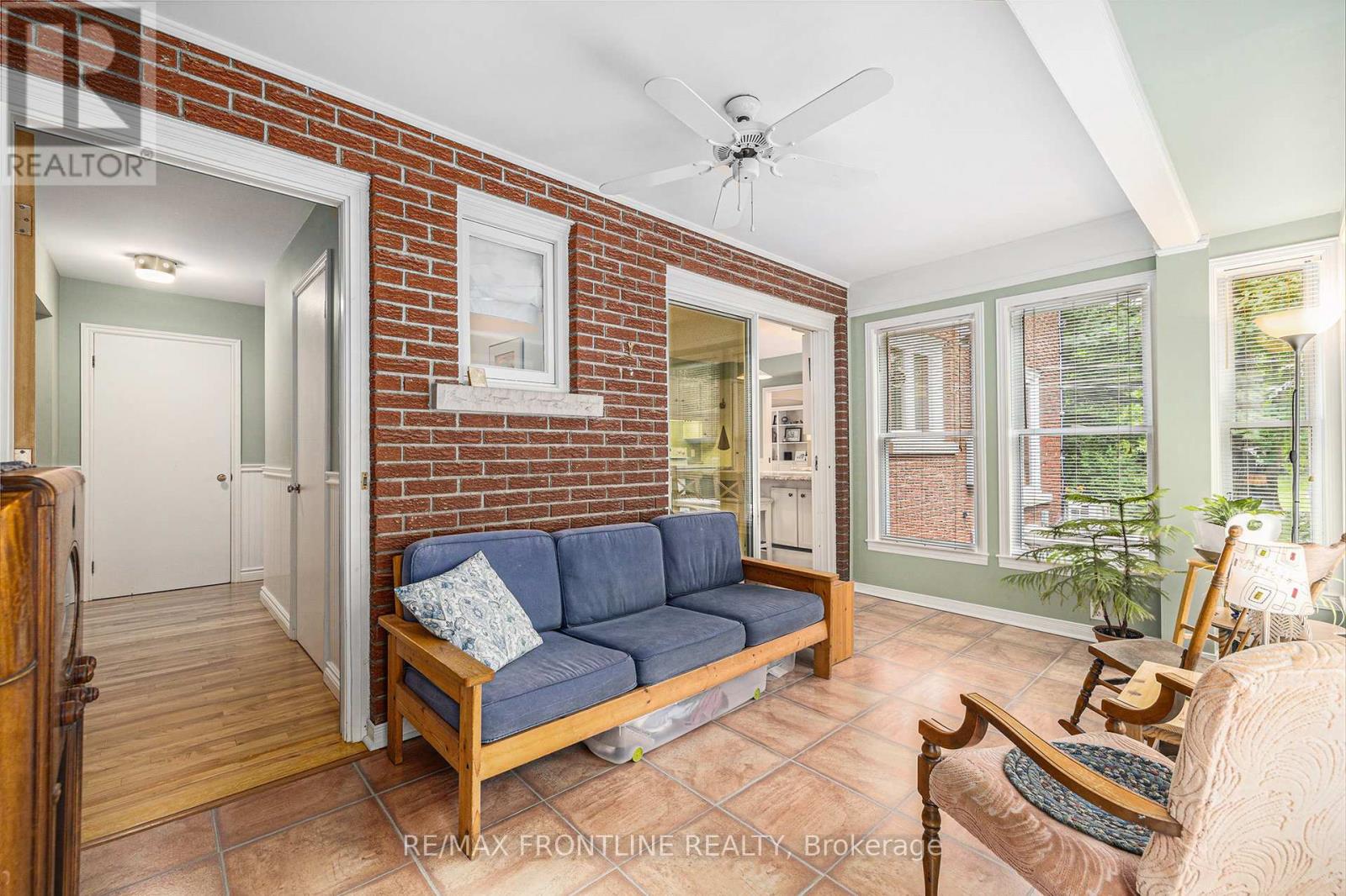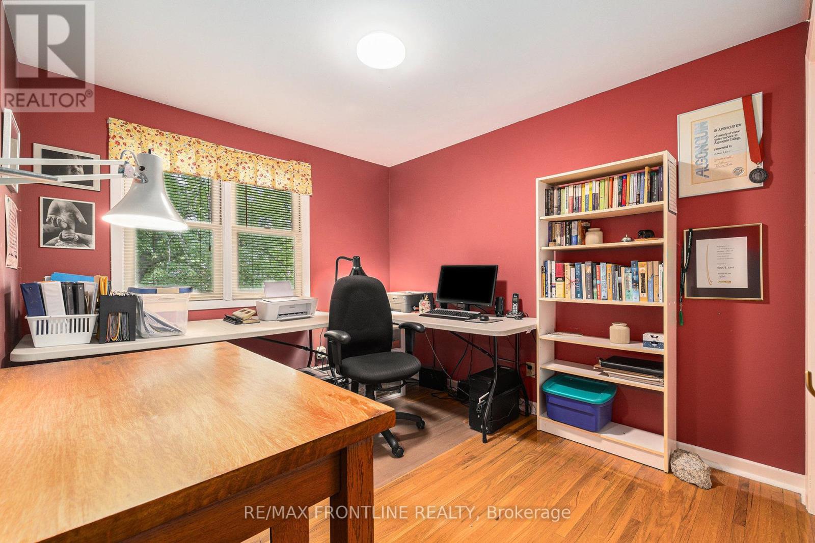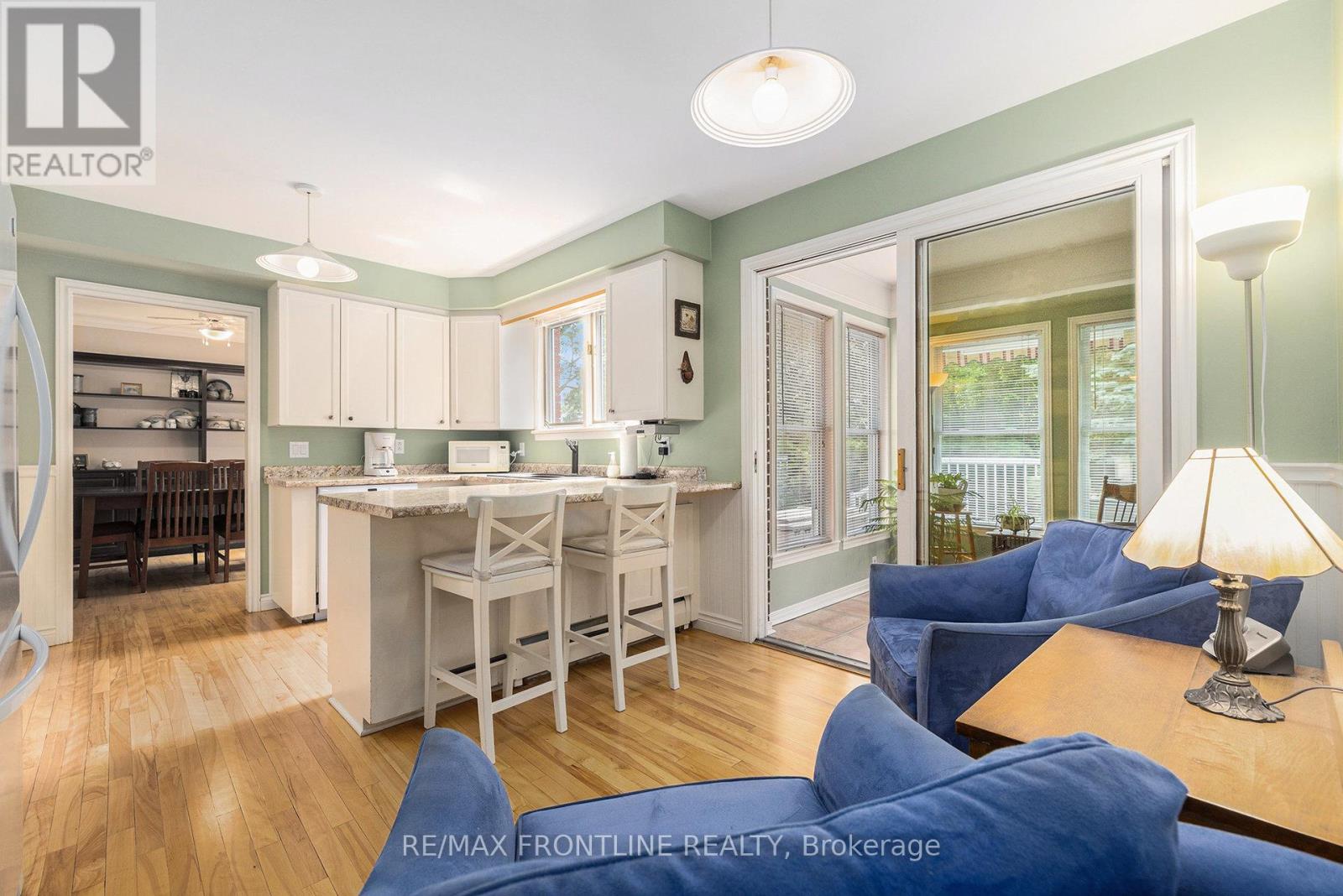 This attractive family home sits on a large 1/4 acre lot in town where many long-time residents enjoy this quiet neighbourhood. With 6 bedrooms and 3 1/2 bathrooms, this home offers the perfect opportunity for a spacious in-law suite while also suited to a larger family. As with the current owners, there is space for 2 home offices and a sewing room while still leaving 3 bedrooms. Larger living and dining spaces are perfect for entertaining and there is a convenient sitting area just off the kitchen. An inside entry from the garage is close to both the kitchen and a cozy family room with a gas fireplace and TV. A second family room is located in the lower level along with a laundry room, home gym and workshop. An attractive hardwood staircase leads from the large foyer to the second level. The staircase to the lower level was constructed so its railing can be easily removed to accommodate furniture relocation. On the street side of the home is a screened porch that is the perfect spot for relaxing with a book. At the back is a large sunroom with attached deck and awning that looks onto a yard filled with mature trees next to a private urban woodlot. This is a solid, well-built and maintained brick two-storey home. Newer windows, gleaming hardwood floors, an 18KW Generac generator, an efficient heat pump for A/C and warmth are just a few of the features. The annual expenses are very reasonable at $1,556 for natural gas, $1,481 for electricity and $937 for water/sewage. Located in the Heritage Town of Perth you will be within walking distance to unique shops, grocery stores, pharmacies, medical services, schools, places of worship, festivals and other events that occur throughout the year. WELCOME HOME! (id:64974)