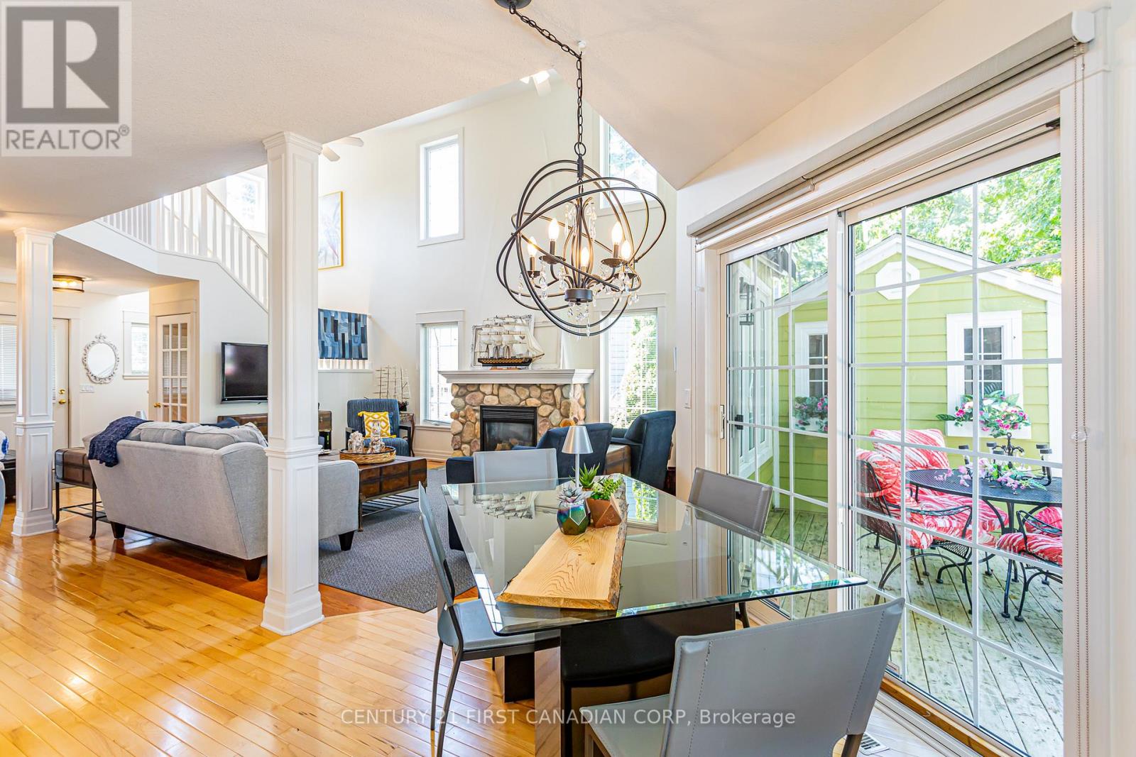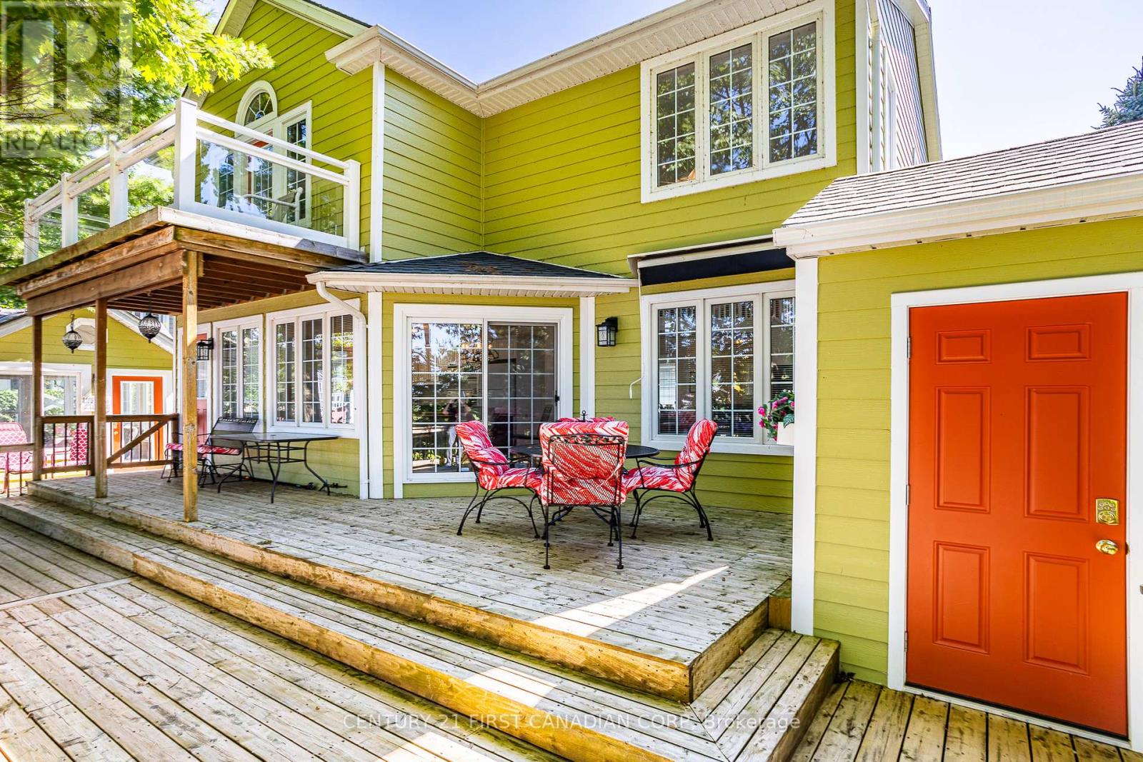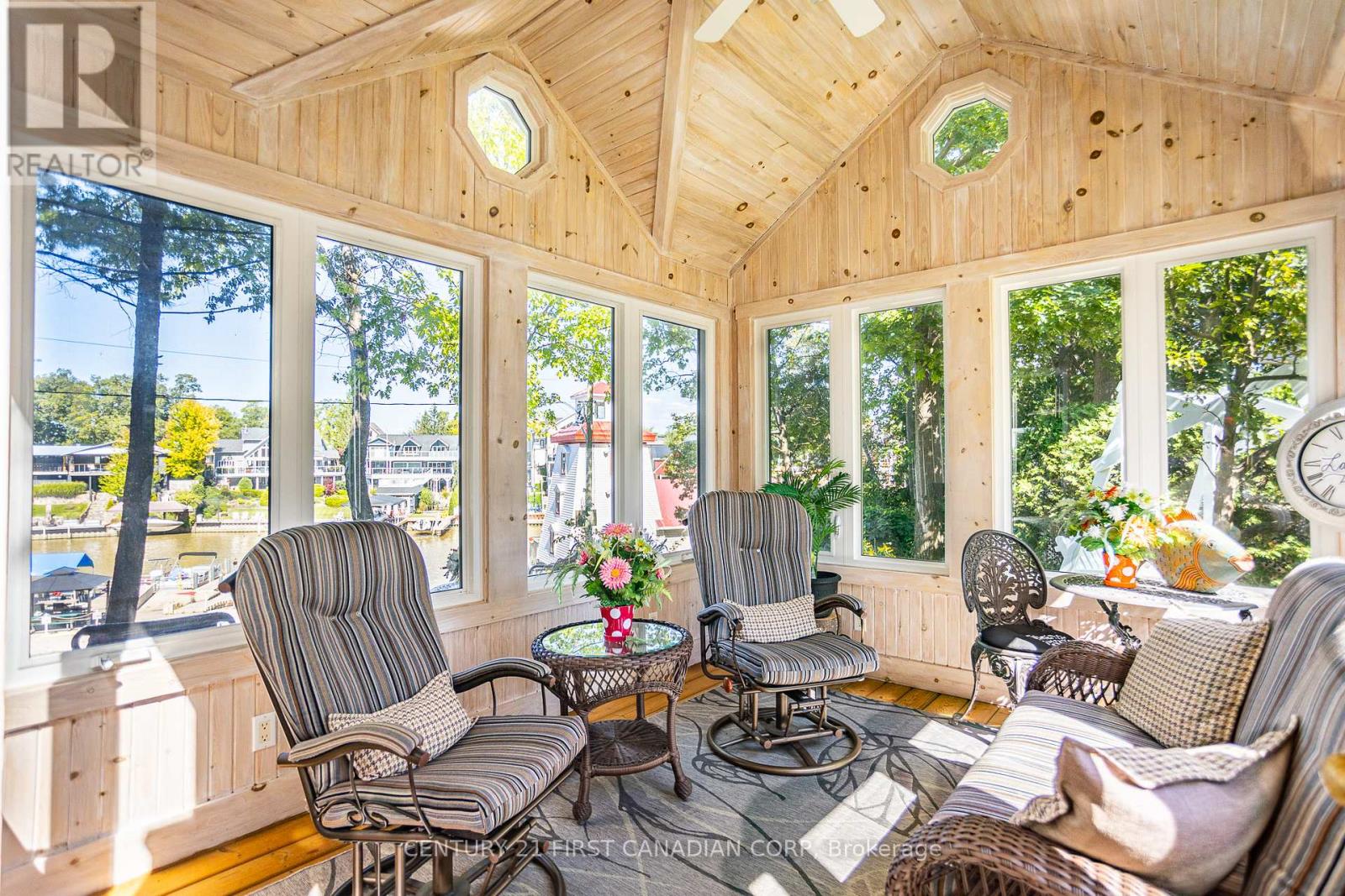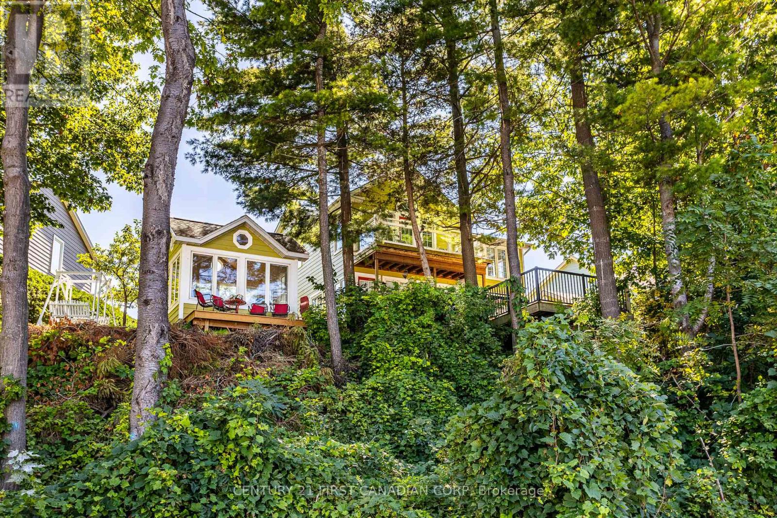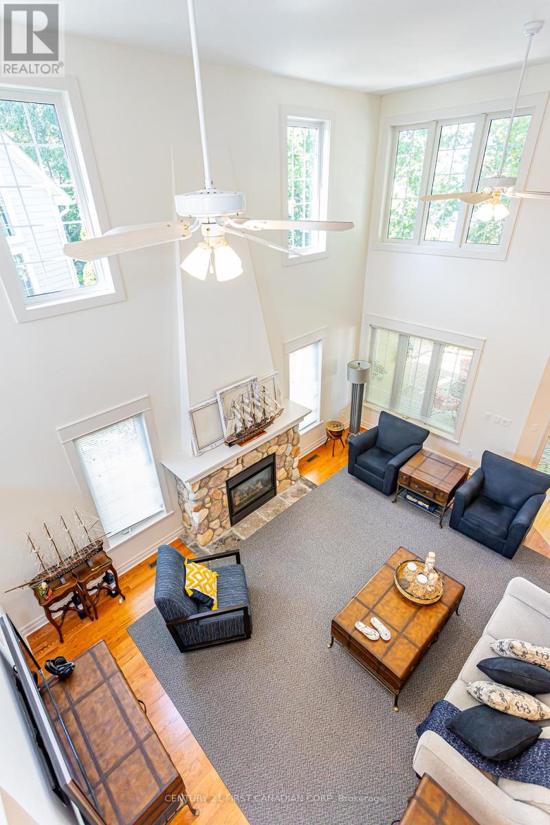 Welcome to your beach town oasis! This spectacular Johnstone built home offers the ultimate escape from the hustle and bustle of daily life. Tucked in at the back of a quiet cul de sac and nestled amongst a mature treed setting, this beach house is a sanctuary of relaxation and natural beauty. Step inside and admire the spacious and airy open-concept living areas with vaulted ceilings and large windows that frame spectacular views of the Ausable river and Lake Huron. The spacious main floor features a large living room with a stone fireplace, large kitchen, separate dining room and a master bedroom retreat including a full ensuite and walk-in closet. Open concept second level overlooks the main floor and boasts three large bedrooms with a full 4 piece bath. The bedroom at the back of the house has ensuite bathroom privileges and a private balcony with a spectacular view! From the kitchen step out to the huge private deck with breathtaking views. Follow the manicured path to the Marina or walk a few steps to the beach! On the private deck area enjoy a quiet cup of coffee or spend an evening entertaining, the choices are endless with so many outdoor options to choose from. The sunroom is more than an addition, it's an invitation to bask in natures beauty every day! Whether you seek a peaceful retreat, a space for family gatherings, or an artists haven, this sunroom offers endless possibilities Quality upgrades throughout including a kitchen makeover in 2020 (granite countertops), storage shed 2020, awning over rear deck 2021, furnace and a/c in 2022, leaf filter gutter protection 2022 are just a few. This immaculately maintained home is situated walking distance to coffee shops, restaurants, the Marina, Grand Bends world famous beaches, shopping and of course a quick bike ride to the Pinery provincial park. A very special haven where you can create lasting memories against a backdrop of sun, sand and serenity! (id:64974)