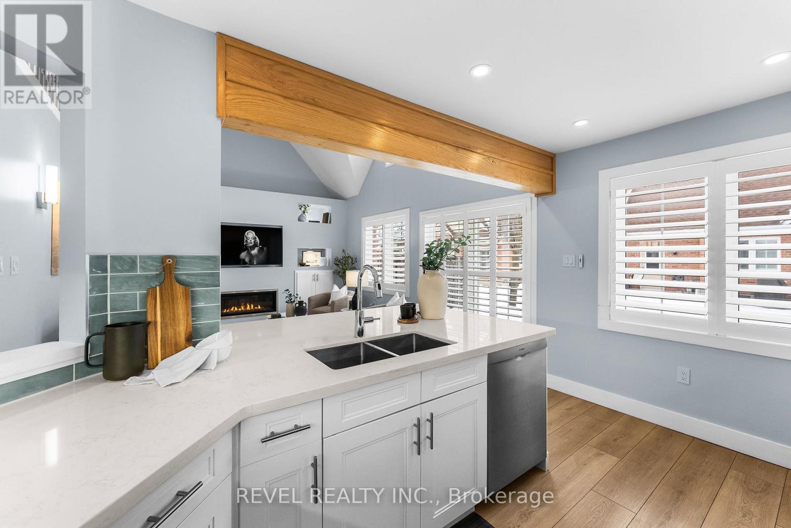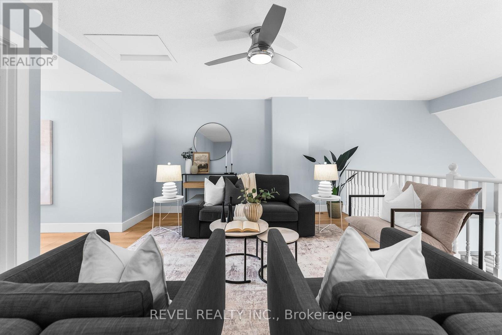 Beautifully updated home situated in the lovely gated Henderson Place retirement community in one of Ajax's most sought-after neighbourhoods. Offering comfort, convenience, and a vibrant lifestyle, this thoughtfully designed residence is perfect for those seeking low-maintenance living without compromising on space or style.This bright and inviting home features 1+1 bedrooms and four fully renovated bathrooms, along with a stair lift for added accessibility. The updated kitchen showcases elegant quartz countertops, California shutters, and built-in stainless steel appliances including a dishwasher and microwave - ideal for everyday living and entertaining.The stunning family room impresses with a cathedral ceiling, cozy gas fireplace, and walk-out access to a private backyard patio, creating the perfect setting for relaxation or hosting guests.An incredible loft level offers exceptional flexibility, complete with a large walk-in closet with custom built-ins, a 3-piece bathroom, and versatile flex space ideal for a home office ,additional family room and can also be easily converted into an additional bedroom.Convenience continues with main-floor laundry and a fully finished basement featuring a wet bar, renovated 3-piece bathroom, spacious recreation room for gatherings, and an additional office or hobby area. Highlights include two parking spaces, an attached garage with interior access, and access to the Henderson House community centre, offering social activities and events that foster a welcoming and active lifestyle. Maintenance fees provide true peace of mind and includes snow removal, lawn care, window cleaning, water, and sewer fees, allowing you to enjoy carefree living year-round.A rare opportunity to own a turnkey home in a highly desirable adult lifestyle community - Just move in and enjoy ! (id:64974)