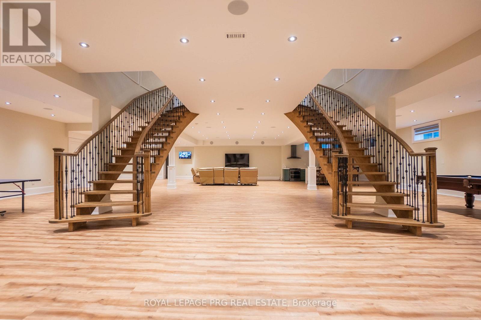 Introducing a rare opportunity to own this show-stopping custom estate offering over 12,000 sq ft of luxurious living space (8,000 sq ft above grade + 4,000 sq ft finished basement). Every inch of this home has been designed and crafted with uncompromising attention to detail and top-tier finishes throughout. Wrapped in Indiana limestone with oversized windows flooding the space with natural light, this home makes an unforgettable impression from the curb to the backyard oasis. Inside, you're welcomed by over 20 ft open-to-above ceilings in the foyer and family room, with 11 ft ceilings on the main floor and 10 ft on both the second level and basement. The heart of the home features a large custom kitchen with premium appliances, designer plumbing fixtures, and a fully functional spice kitchen - perfect for elevated entertaining. Rich hand-scraped hickory engineered floors flow throughout, adding warmth and elegance to the expansive open-concept layout. With 5 spacious bedrooms and 7.5 luxurious bathrooms, this home is designed for multi-generational living and ultimate comfort. The main floor office, oversized 3-car garage, and smart home wiring offer the practicality and tech-savvy convenience todays homeowners expect. The fully finished basement boasts a sprawling open-concept layout ready for a home theatre, gym, bar, or additional suites - endless possibilities to customize your lifestyle. This is more than just a home - it's a lifestyle of prestige, comfort, and refined living. (id:64974)