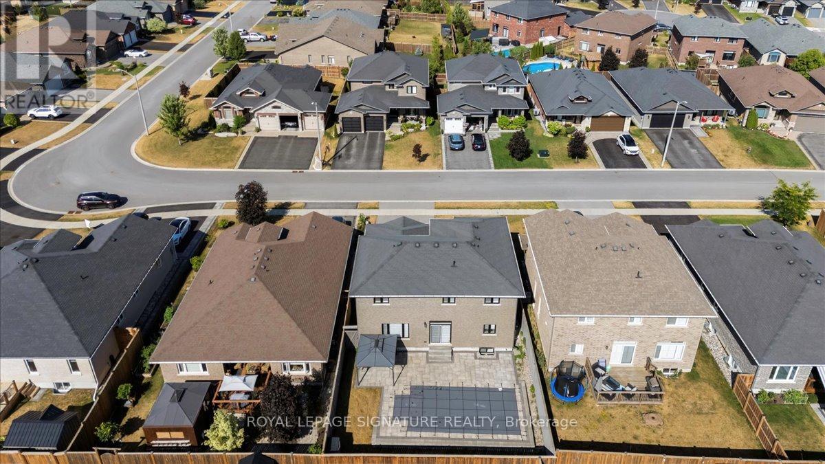 An impressive upgraded family home, with a Heated In-ground saltwater pool, over 3,500 sqft of beautifully finished living space, and an exceptional Staikos-built design make this beautifully upgraded family home in Belleville's highly desirable Thurlow Ward truly stand out. Combining upscale finishes, thoughtful design, and resort-style outdoor living, this home is ideal for modern family living.Step inside to discover hardwood flooring throughout and a layout designed for comfort and functionality. The gourmet kitchen serves as the heart of the home, featuring quartz countertops, stainless steel appliances, a gas stove, wine cooler, and an impressive walk-in pantry rarely found in homes of this calibre.The main level includes a private office that can easily function as a fifth bedroom. Upstairs you'll find four generously sized bedrooms along with the convenience of second-floor laundry. The professionally finished basement provides outstanding flexibility with an additional bedroom, full bathroom, kitchenette, and expansive living area ideal for an in-law suite, guest retreat, or home gym. The home also features a central vacuum system with convenient dust collection points in the mudroom, under the kitchen sink, and in the second-floor laundry room.The fully landscaped backyard is designed for entertaining and relaxation, complete with the heated in-ground saltwater pool, interlock patio with covered seating area, gazebo, and gas BBQ hookup. A high-ceiling garage, paved driveway, and interlock front entry enhance the home's strong curb appeal.Ideally situated just five minutes from Highway 401, within walking distance to a 5-acre park and playground, and close to the Quinte Sports & Wellness Centre, Bay View Mall, and Quinte Mall. Surrounded by highly regarded public and Catholic schools and minutes from prestigious Albert College, this location offers both convenience and community. Don't miss your chance to make it yours. (id:64974)