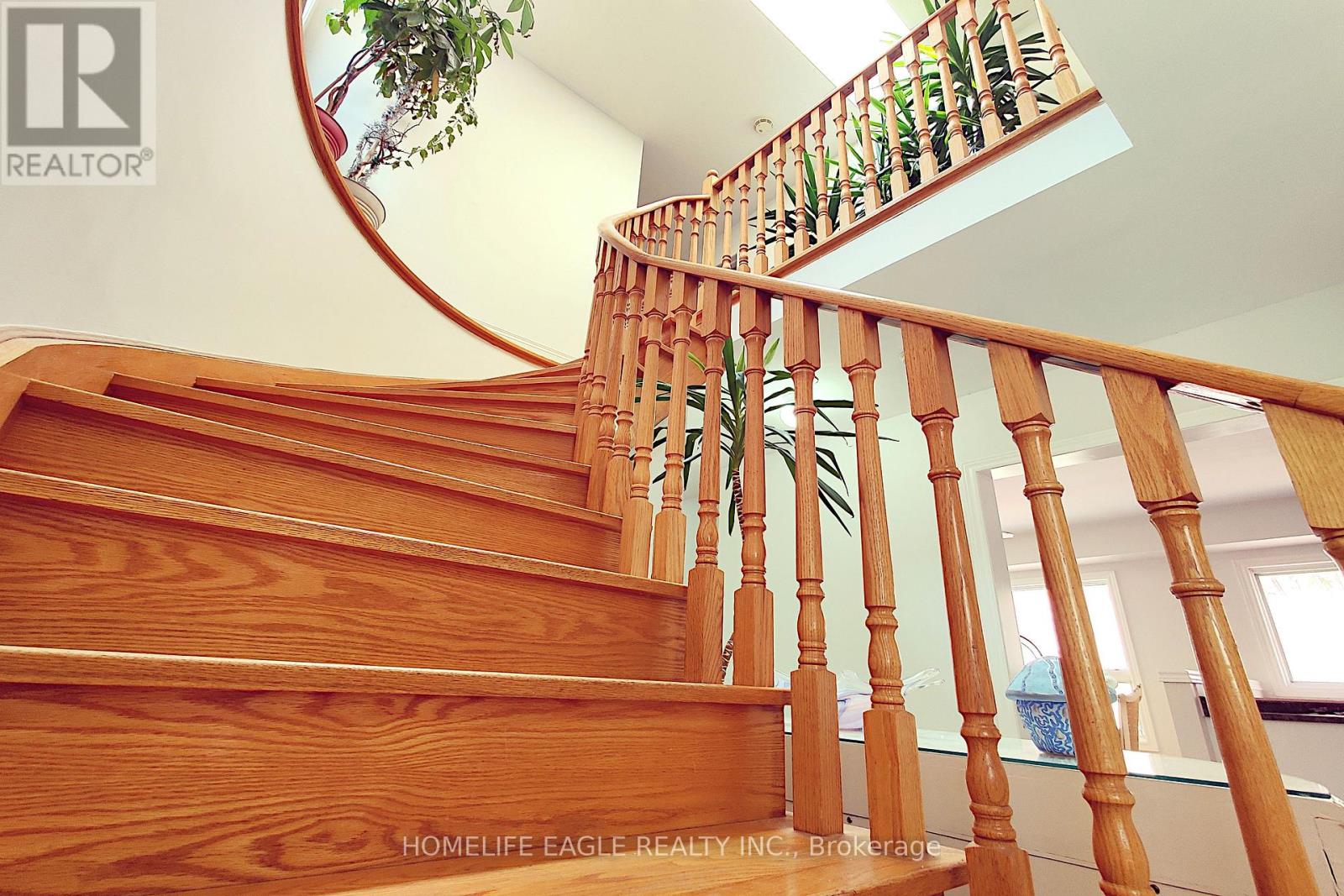 Welcome to this beautifully maintained 4-bedroom detached Greepark home, ideally situated in the prestigious Rouge Woods neighbourhood, known for its quiet, family friendly streets, abundant green spaces & safe atmosphere. Step into a spacious foyer with elegant ceramic flooring, leading to an original oak hardwood staircase illuminated by a stunning glass skylight, which floods the home with natural sunlight. The freshly painted interior offers a warm, inviting feel throughout. The main floor features a double sideded glass fireplace separating the living & dinning rooms, creating a cozy yet open layout. A gorgeous bay windowin the living room & large glass sliding door in the dining area invite ample sunlight & provide access to a fully fenced backyard. An enclosed front porch adds charm & functionality.Breakfast area offers an informal, relaxed space to dine & is seamlessly connected to the kitchen.The second floor offers four spacious bedrooms, perfect for a growing family. The primary bedroom features laminate flooring, a walk-in closet with a window, and a bright 4-piece ensuite for added privacy and comfort. Also on the second floor are three additional well-sized bedrooms all filled with natural light, each offering built-in closets. Two bedrooms are finished with laminate flooring, while the third is comfortably carpeted ideal for a childs room, guest space, or home office.The finished basement provides additional living space with endless possibilities ideal for a family room, home office, gym, or guest suite, complete with a full bathroom & plenty of storage. Updates include new roof ( 2017 ) garage door replacement (2018). Located near top rated schools like Bayview Secondary & Richmond Rose Public Schools, shopping centers, banks,walk-in clinics, public transport , Highway 404 & 407. This move-in-ready home combines comfort, character, and convenience in one of Richmond Hills most sought after neighbourhoods. Why wait? This home is ready to be yours. (id:64974)