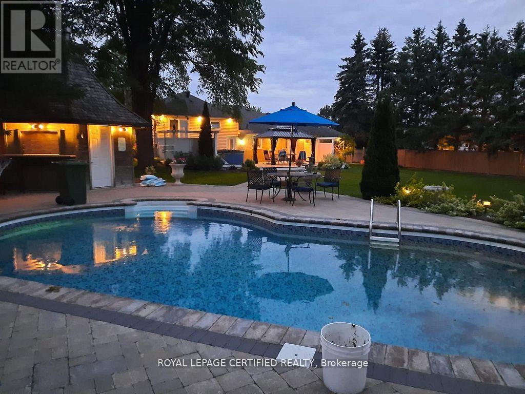 Welcome home to this Cozy 3 bedroom family gem . The upper level offers 3 spacious bedrooms, a 4-pc bath with heated floor. Primary BR with double closets. The main floor flows beautifully with ceramic tile from the entrance through the bright, updated kitchen and hardwood floors in the cozy living and dining rooms. Living Room with gas fireplace and skylight. Step outside to a brand-new 2-level deck (2025) with hot tub perfect for family fun. The private backyard oasis features a heated inground kidney-shaped pool, change house and garden shed with no homes behind. A separate entrance leads to the lower level with family room, office, gas fireplace, 3-pc bath with heated floor, and large windows. The basement adds a rec room, 5th bedroom, heated floors and laundry. The 2-car garage is converted to a 6.1 x 5.49 Metre nanny suite with gas fireplace and 3-pc bath and Kitchen (kitchen needs stove pug outlet). Interlocking stone (2020) and 200-amp service complete this wonderful home. Listing Brokerage Or Seller Does Not Warrant The Retrofit Status Of Garage Nanny Suite. (id:64974)